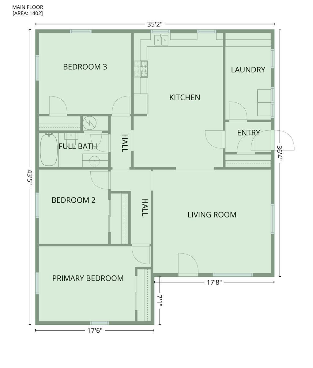 Room type Area Level Length Width Main Level 1379 Upper Level Lower Level Basement Additional Level Bedroom 1 Main 16.6 11.2 Bedroom 2 Main 10.4 11.2 Bedroom 3 Main 13.1 11.7 Living Room Main 15.5 17.1 Kitchen Main 19.6 13.4 Laundry Main 12.6 6.8 Third Floor