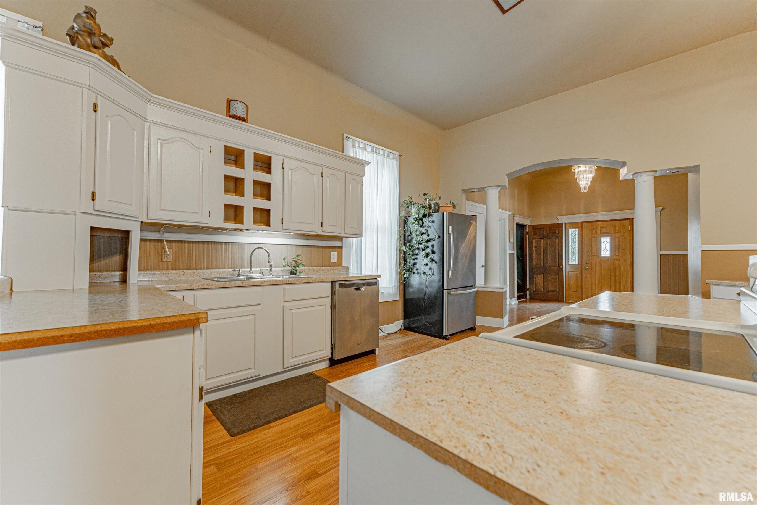 What a fascinating and unique property! This super cool residential dwelling was once a church and has SO many noteworthy features both inside as well as outside! The main floor boasts a gracious and inviting columned foyer, fabulous open equipped kitchen/dining concept with a breakfast bar, soaring ceilings, as well as great floor space, two nice sized bedrooms, convenient laundry room, and an updated full hall tiled bath. The full finished lower level offers an expansive living room, third bedroom, renovated full bath, mechanicals, and great storage/work space. Upstairs, you will find a neat den/office -- or use as an additional bedroom if needed! Outside, you will find a fantastic covered porch, vinyl replacement windows, newer exterior vinyl siding, oversized detached garage with an attached rec room, and a fenced yard with a gorgeous inground pool and storage shed. The pool has a newer pump, filter, and liner -- all within the past six years. Need appliances? They will all remain here for new owner(s) including washer and dryer. This small-town Tazewell County property situated just a short stroll from the local school is certainly not your everyday home and deserves all of the attention that it is sure to yield swiftly -- especially given it has been smartly priced at $150,000! Do not sleep on this one!