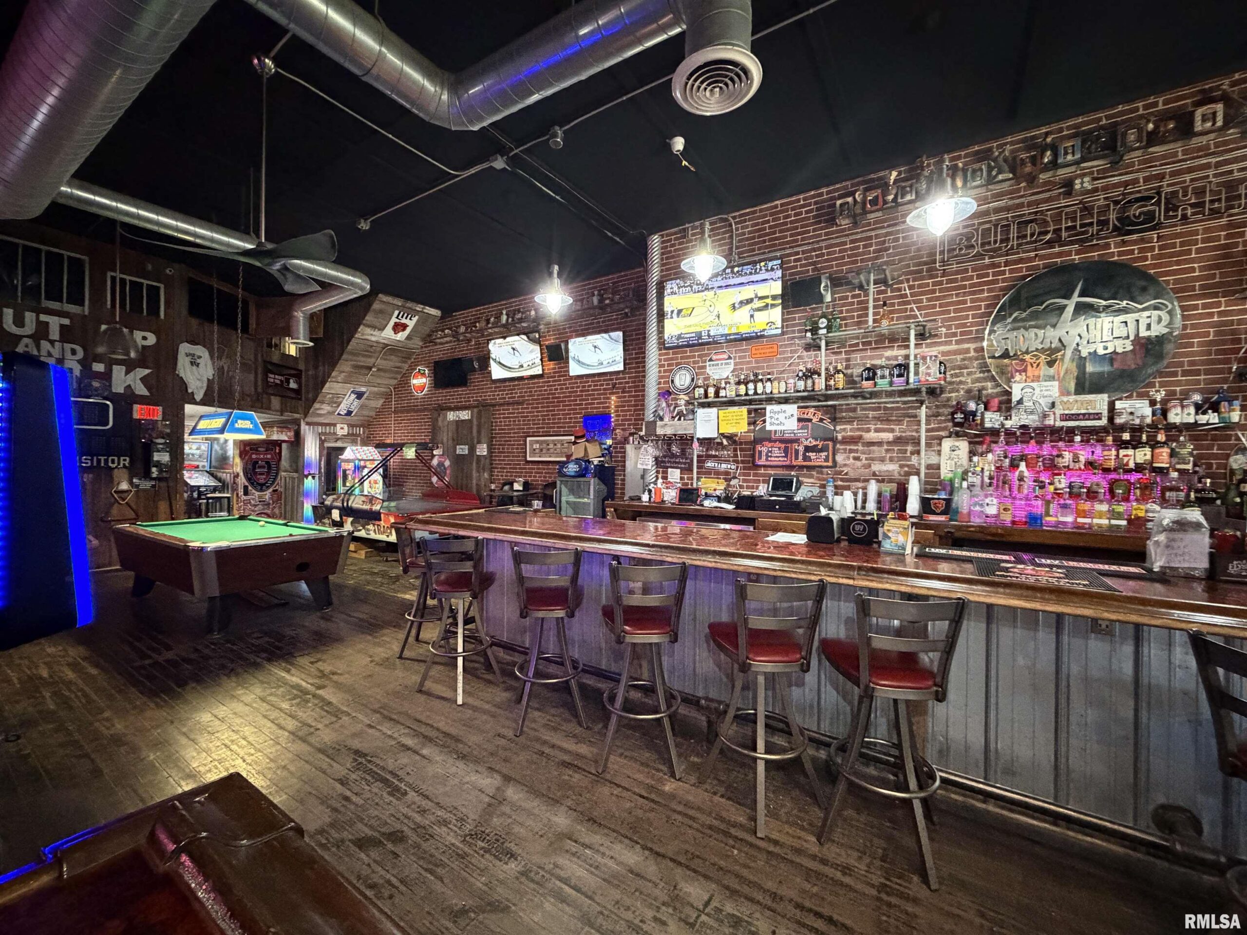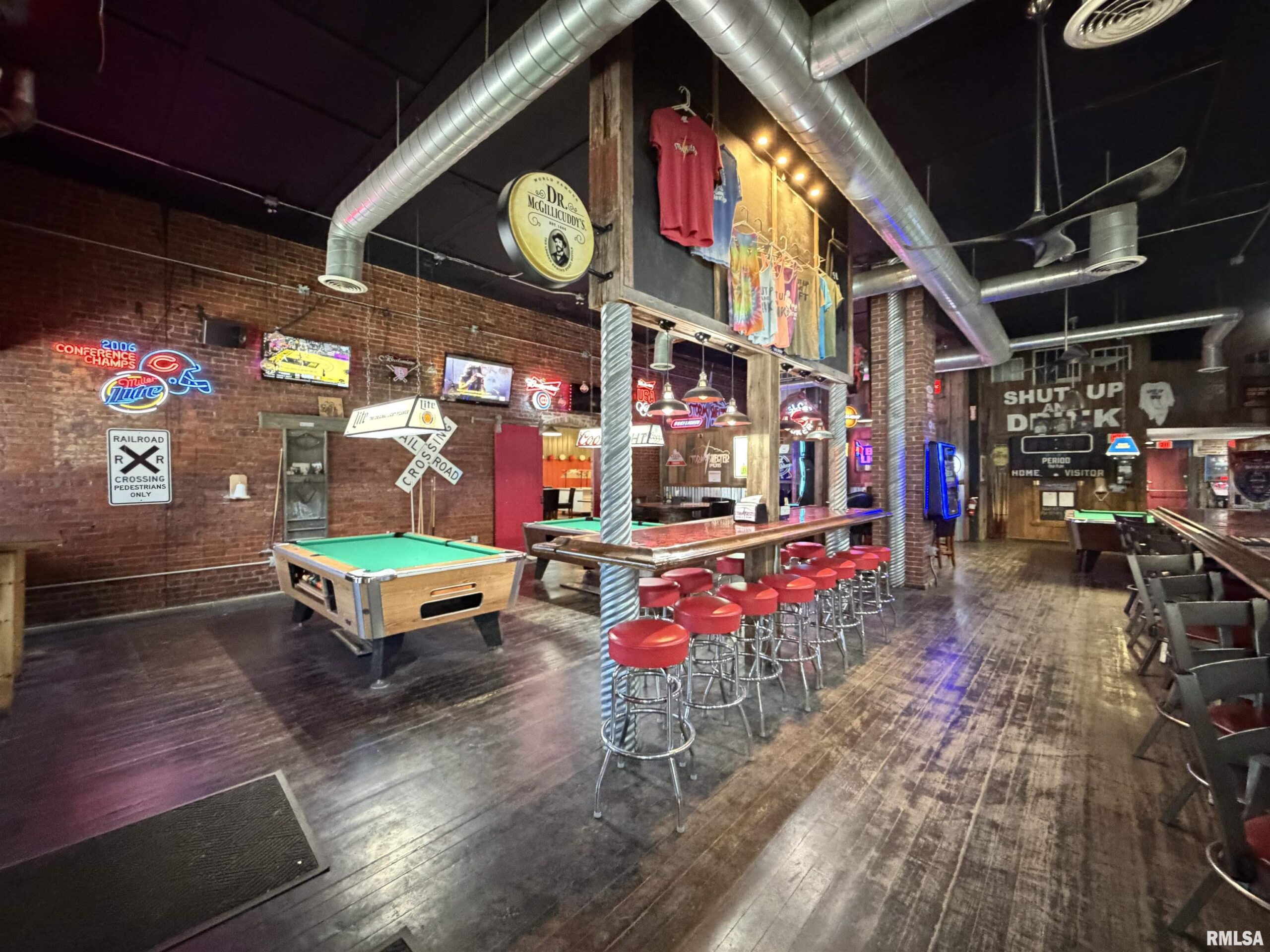 An incredible opportunity awaits in the heart of downtown Avon! This one of a kind, turn key commercial property offers multiple income streams and endless entertainment possibilities under one roof. The main venue features two fully operational bars with gaming, plus an additional side room ideal for private parties, overflow seating, or special events. Two kitchens provide flexibility for expanded menus, catering, or high-volume service, while a mezzanine office overlooks the action perfect for streamlined management. Entertainment options set this property apart, including axe throwing lanes, a golf simulator, and a private movie theater, creating a true destination experience that keeps customers coming back. The adjacent space expands the investment potential even further with a fully furnished 24-hour fitness facility with an established membership base. Above, you’ll find two apartments, offering additional rental income or on site living options. A detached two car garage adds convenience and extra storage. Strategically located downtown, this dynamic property is built for profitability and growth. Whether you're an experienced operator or an investor seeking a diversified, income producing asset, this established, fully equipped business delivers immediate cash flow potential in a prime location.
