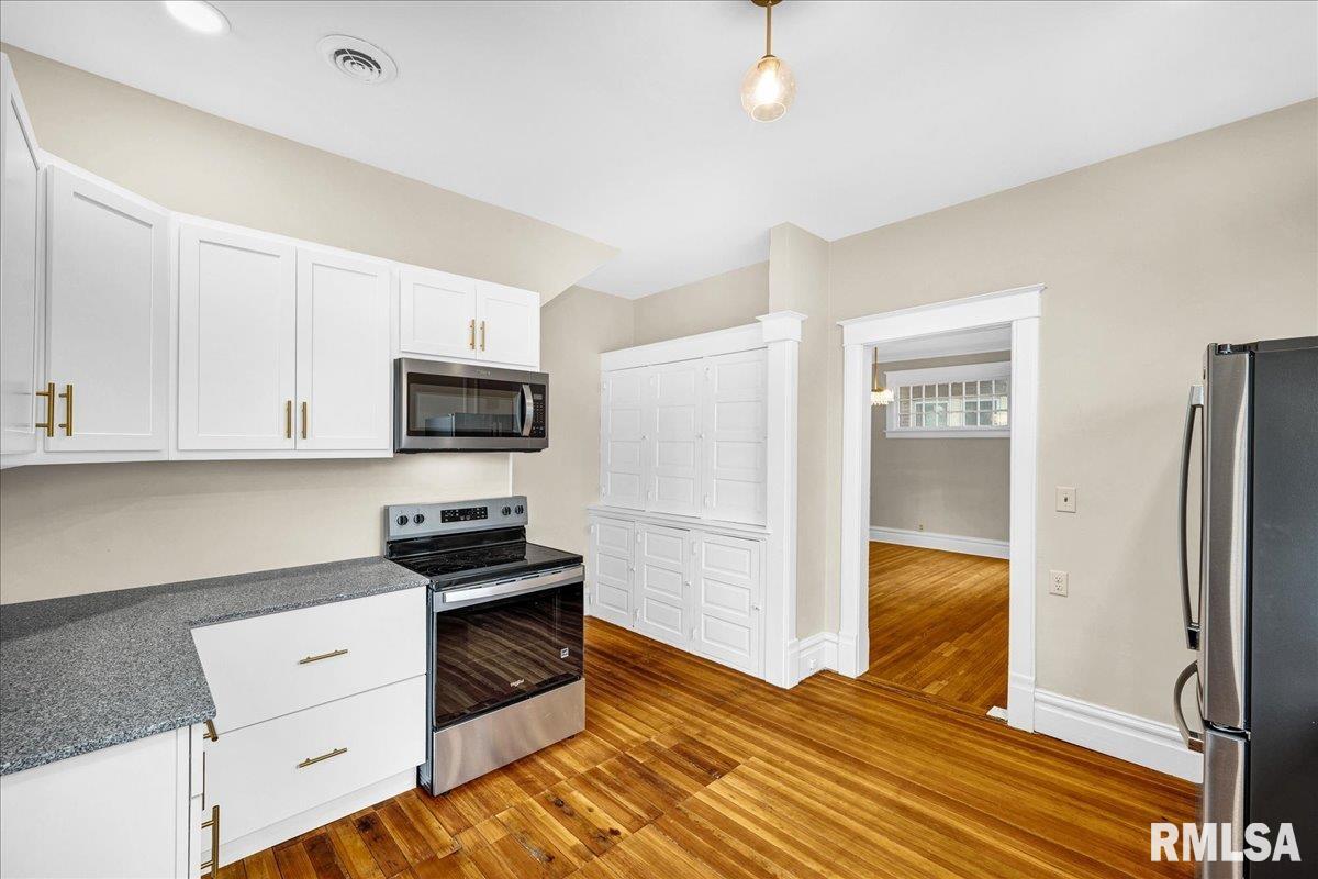 Timeless craftsmanship meets modern-day comfort starting with a large front porch, great for relaxing and enjoying the neighborhood. Step inside and you’re welcomed by a light-filled interior with fresh neutral paint, new windows, 9' ceilings, refinished hardwood floors, crown molding, and wide baseboards. The spacious foyer offers flexibility beyond a simple entry. The living room features a gas fireplace (never used by current owner, as-is) and pocket doors that open to the dining room with a charming built-in cabinet, making entertaining feel both elegant and easy. A brand-new kitchen with white cabinetry, granite countertops, and stainless steel appliances is ready for a quiet morning coffee or holiday gatherings, while the tiled mudroom and convenient half bath add everyday functionality. Upstairs, four bedrooms with new carpet, and a beautifully updated full bath with new tile flooring, subway tile tub surround, vanity, and fixtures, plus a built-in linen cabinet. The finished walk-up attic offers incredible bonus space perfect for a family room, rec room, guest suite, or fifth bedroom. The basement provides additional room for laundry, storage, or even a home office. Major improvements include a new heat pump, water heater, electric service & breaker box, plumbing updates, lighting, drywall and plaster repair, flooring, and more. With a shed for storage and space to build a future garage, this home blends character, flexibility, and modern updates. Love Where You Live!