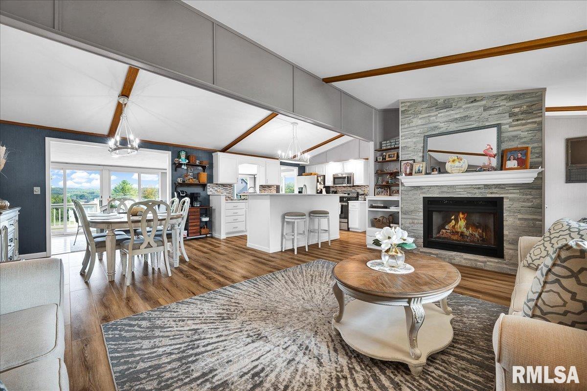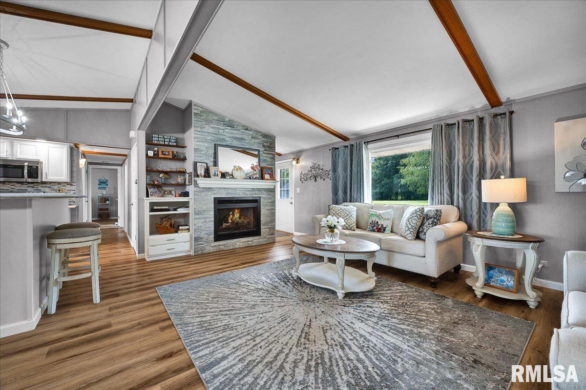 Discover your dream retreat in this breathtaking 4-bedroom, 2-bathroom ranch home, perfectly perched to showcase mesmerizing views of Oak Run Lake. This beautifully updated property blends modern elegance with serene lakeside living, offering an open floor plan that radiates warmth and sophistication. Step into the heart of the home, where light and bright colors illuminate the spacious living areas, creating an inviting ambiance. The expansive Florida Room, a versatile 4-season haven, features five sliders that seamlessly connect to the large deck spanning the entire back of the house—perfect for savoring morning coffee or evening sunsets with unobstructed lake views. With numerous updates throughout, this home combines style and functionality, making it ideal for both relaxation and entertaining. Don’t miss the chance to own this exquisite lakeview gem that effortlessly blends indoor comfort with outdoor splendor. NEW in 2025: Master Bath remodel, water heater, microwave, dishwasher. NEW in 2023: AC & Furnace, Luxury plank flooring, interior doors, gutter guards, fireplace, stove/oven. You've gotta see it to appreciate it!