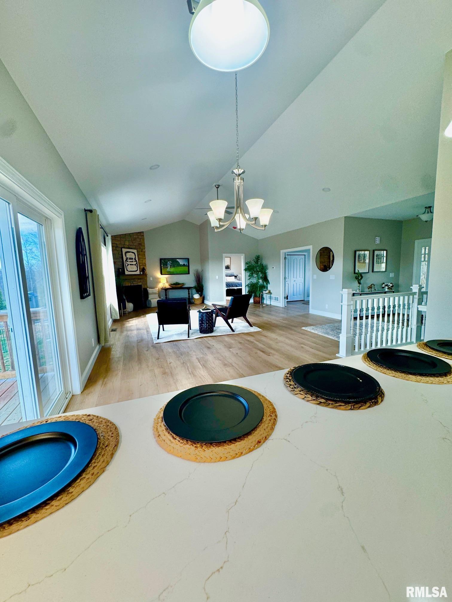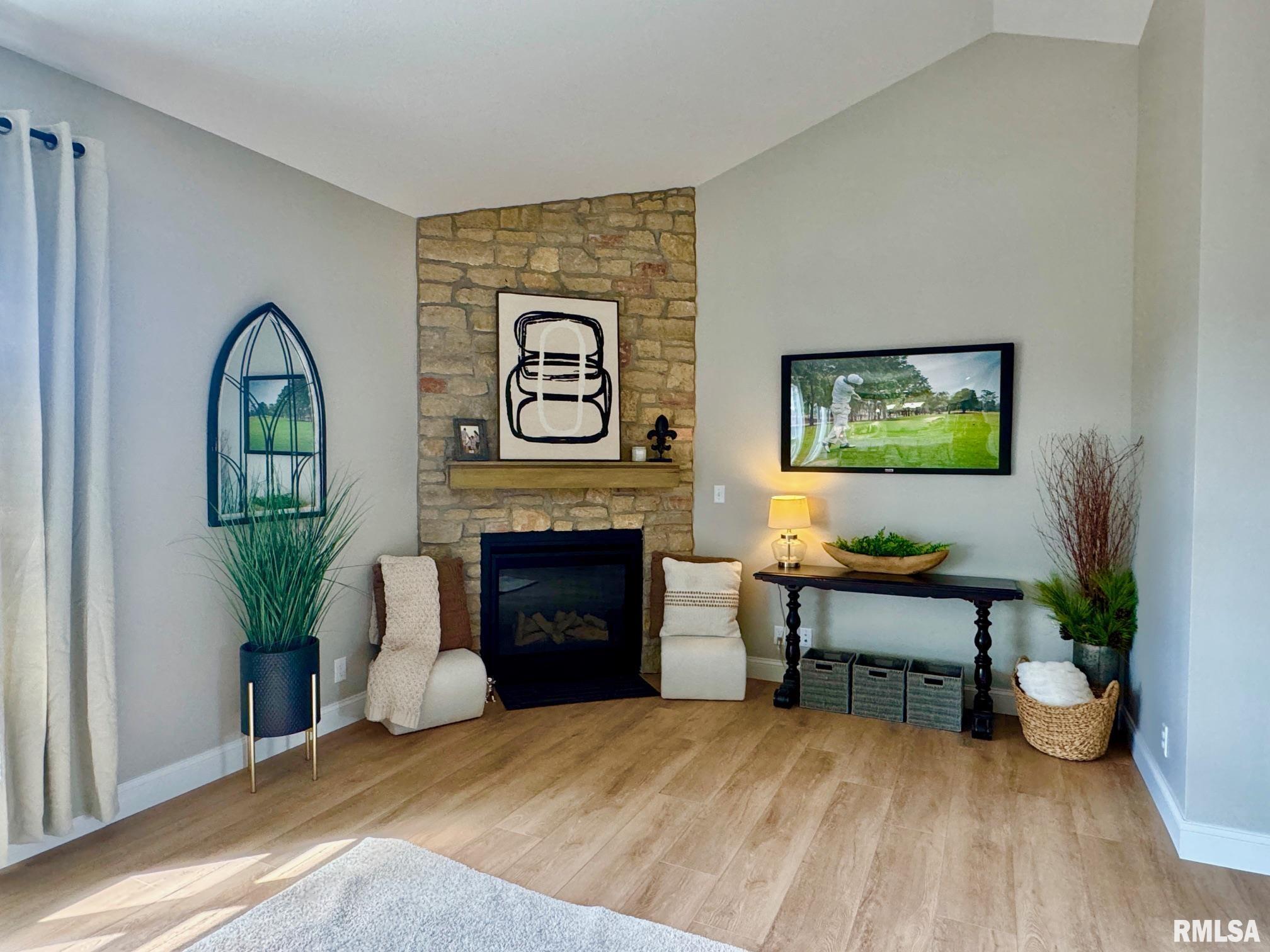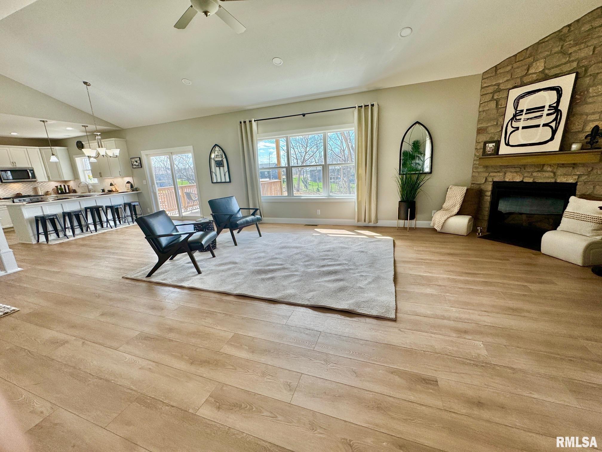 This gorgeous five-bedroom, three-bath ranch style home has a stunning all stone front face and is located in the popular Cypress Ridge subdivision! Open great room concept with stone surround corner gas log fireplace. Beautiful and durable luxury vinyl flooring throughout the main floor living space! Generous size main floor laundry/mud room complete with coats hooks, built in bench, cabinetry, and utility sink. Formal dining or office off the great room featuring French doors and additional closet space. You will find Quartz countertops, custom white cabinetry, stainless appliances, huge pantry cabinet, and breakfast bar in the stylish kitchen. Desirable split bedroom floor plan. Lots of storage space including coat, utility and linen closets. Generous size primary suite with tray ceilings and large walk-in closet. Dual sinks, linen cabinets and all tiled shower in the primary bath. Lots of space to entertain inside and out! Upper-level covered deck off the kitchen makes grilling easy! Full, finished walkout basement with a huge rec room featuring a gas log fireplace. All your guests will love the stunning wet bar with custom cabinetry, quartz countertops, stylish backsplash, and stainless appliances. You will also find a full bath and two additional bedrooms in the 9ft finished basement. Step outside from the basement to the covered patio and enjoy the serene, wooded park-like backyard.