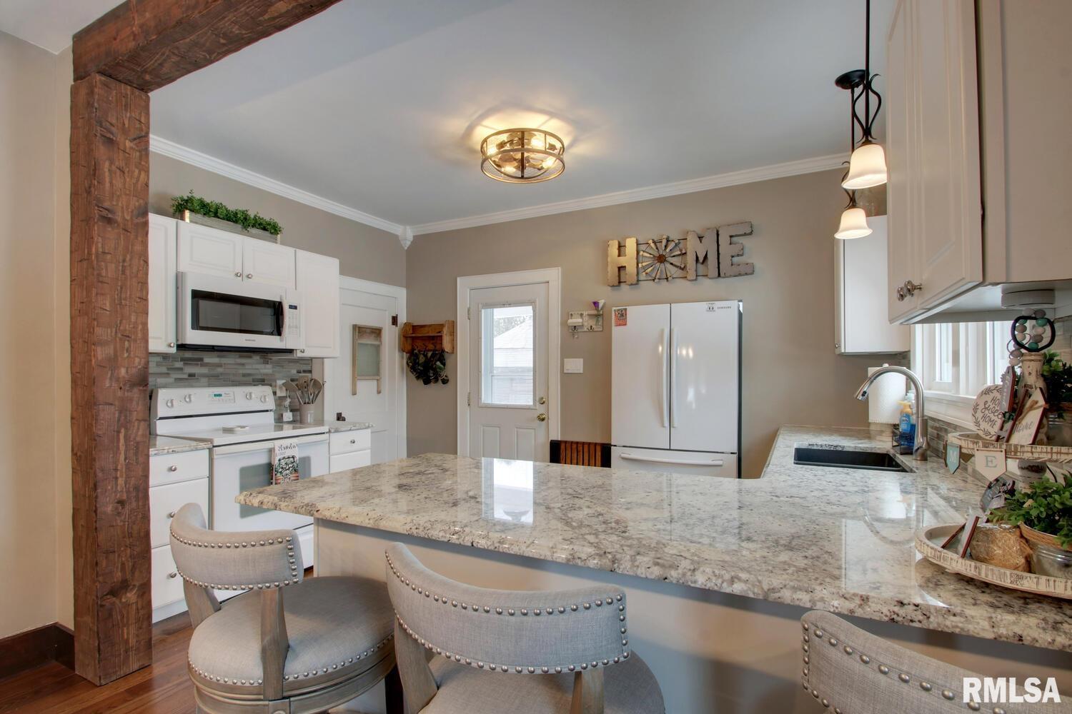 Charming bungalow on a spacious 2/3-acre lot offering the perfect blend of character and modern updates. Inside, you’ll find warm woodwork, hardwood floors, and an inviting layout featuring a bright living area, updated kitchen with granite countertops and island seating, and stylish dining space. The upper level provides additional flexible living space and storage. Step outside to enjoy the oversized 2-car garage, expansive yard, and unique gazebo area—perfect for relaxing or entertaining. With timeless charm, thoughtful updates, and room to spread out, this property offers comfort, functionality, and tranquility just blocks from the center of town.