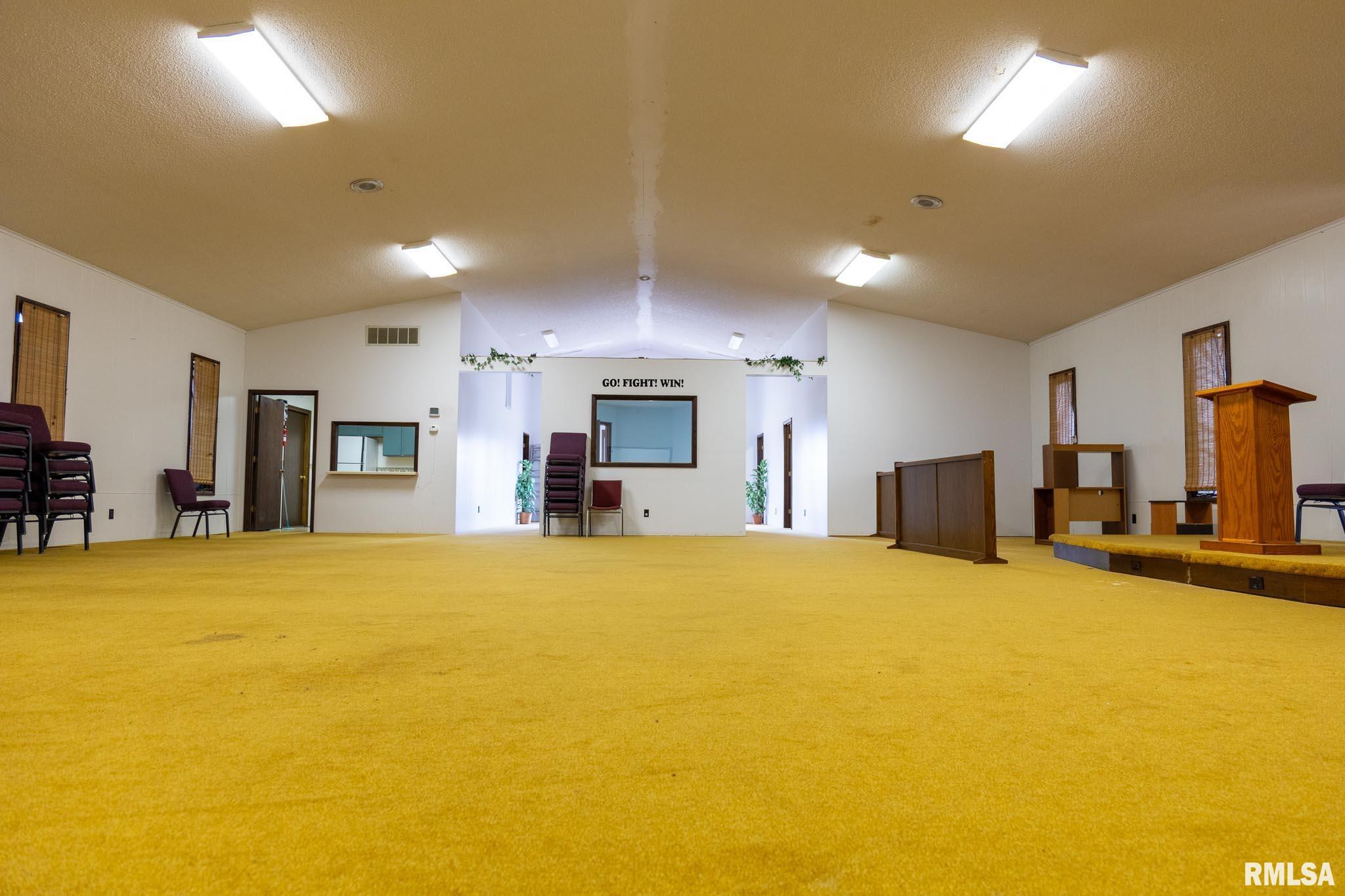 Church facility on 5 acres located 1.5 miles south of Rt 13 near Carbondale, IL. Building features a 39'x37 ft gathering room seating approx. 85-125 people, five offices/classrooms kitchen, two restrooms, and a soundproof room with window to gathering area. Additional 12x16 ft storage shed included. Ample parking front and back of building. Property offers flexible use for outdoor events, recreation, or future development.