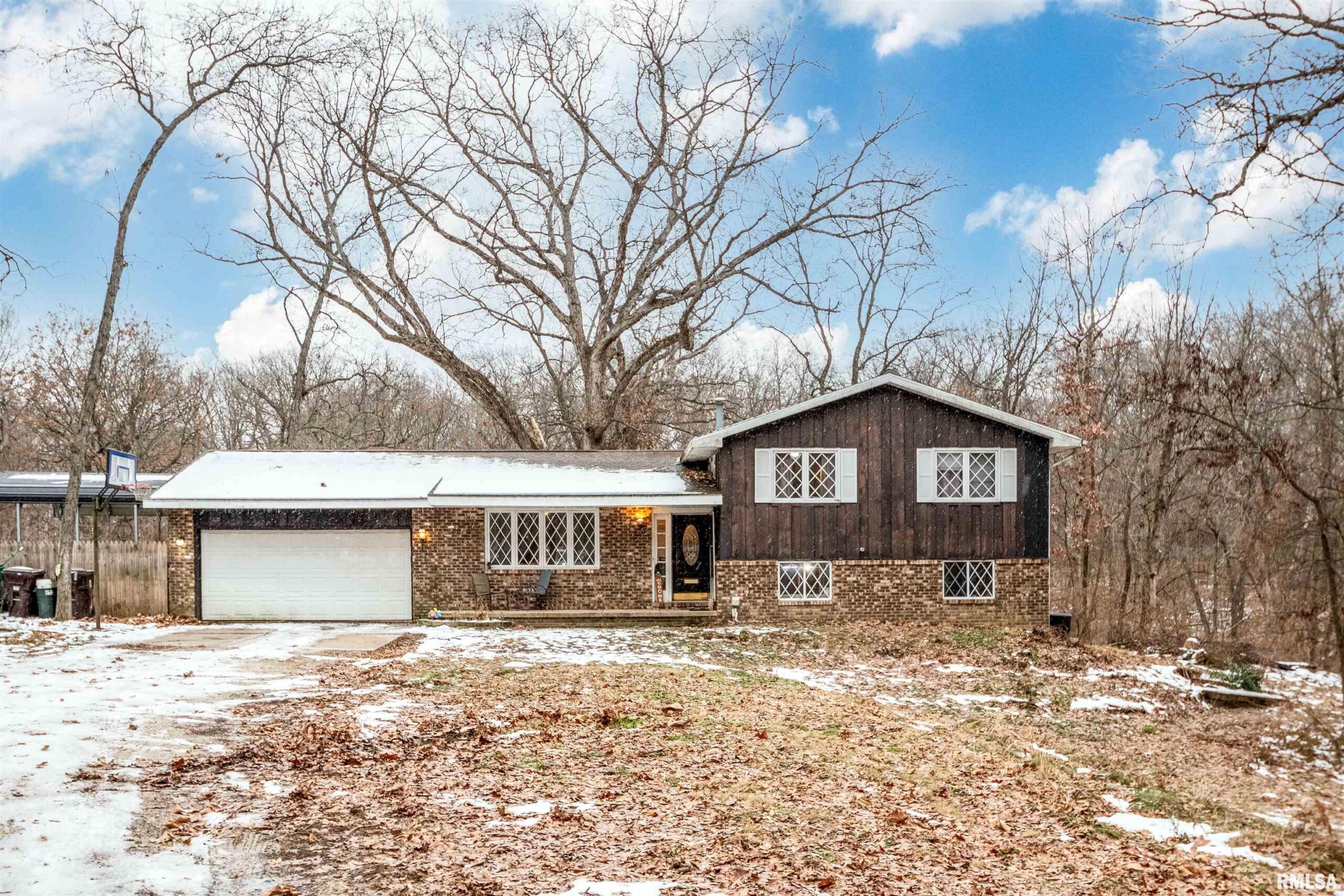 Tucked away in a peaceful rural setting yet just minutes from city conveniences, this tri-level home offers the best of both worlds. Located only 2 miles off I-74 west of Peoria in the desirable Kickapoo/Edwards area, the property sits within popular local attractions. Set back on a quiet street, the home is nestled on 1.68 scenic acres with mature trees, a creek, and picturesque wooded views—creating a private, nature-filled retreat. The main and upper levels feature three bedrooms, a full bathroom, a comfortable living room, and an updated kitchen and dining area. Walk-out lower level offers a large family room with providing great potential for additional living space. Your primary suite is a standout, offering a walk-in closet, a second spacious closet, and private slider access to the sunroom—perfect for relaxing, watching wildlife, or enjoying winter snowfall views. Recent updates include a new roof (2020), new 90% efficiency furnace (2023), new AC, & new hot water heater. Complete main-floor remodel with a refreshed kitchen, wood-look tile flooring in the living and dining areas, a remodeled main bathroom, and French doors leading to a secluded, expansive deck. All appliances stay. Move-in ready with room to personalize, this home offers a rare private retreat close to everything Peoria has to offer.