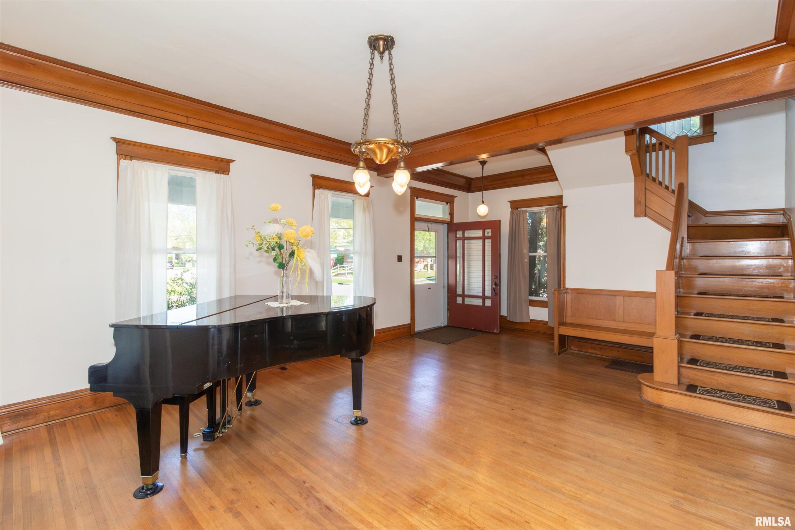 Step into timeless charm with this stunning 1893 two-story home located just steps from the square in Washington. Rich in character and craftsmanship, this home showcases all the original woodwork, beautiful hardwood floors, elegant glass French doors, intricate crown molding, and a built-in window seat that perfectly captures its historic appeal. 4 Bedroom, 1.5 bath home the main floor blends old-world charm with modern convenience, featuring an updated kitchen and main floor laundry. A grand staircase makes a striking first impression and leads to the second level, where you’ll find spacious bedrooms filled with natural light. The full bathroom is a true nod to the home’s history, complete with a classic clawfoot tub—perfect for relaxing at the end of the day. If you’ve been looking for a home with character, warmth, and a prime location, this one is a must-see! Other updates include Generator, Vinyl Windows-23, HVAC-21,Roof-2008, Blown in Insulation and Incapacitation of Crawl Space-19