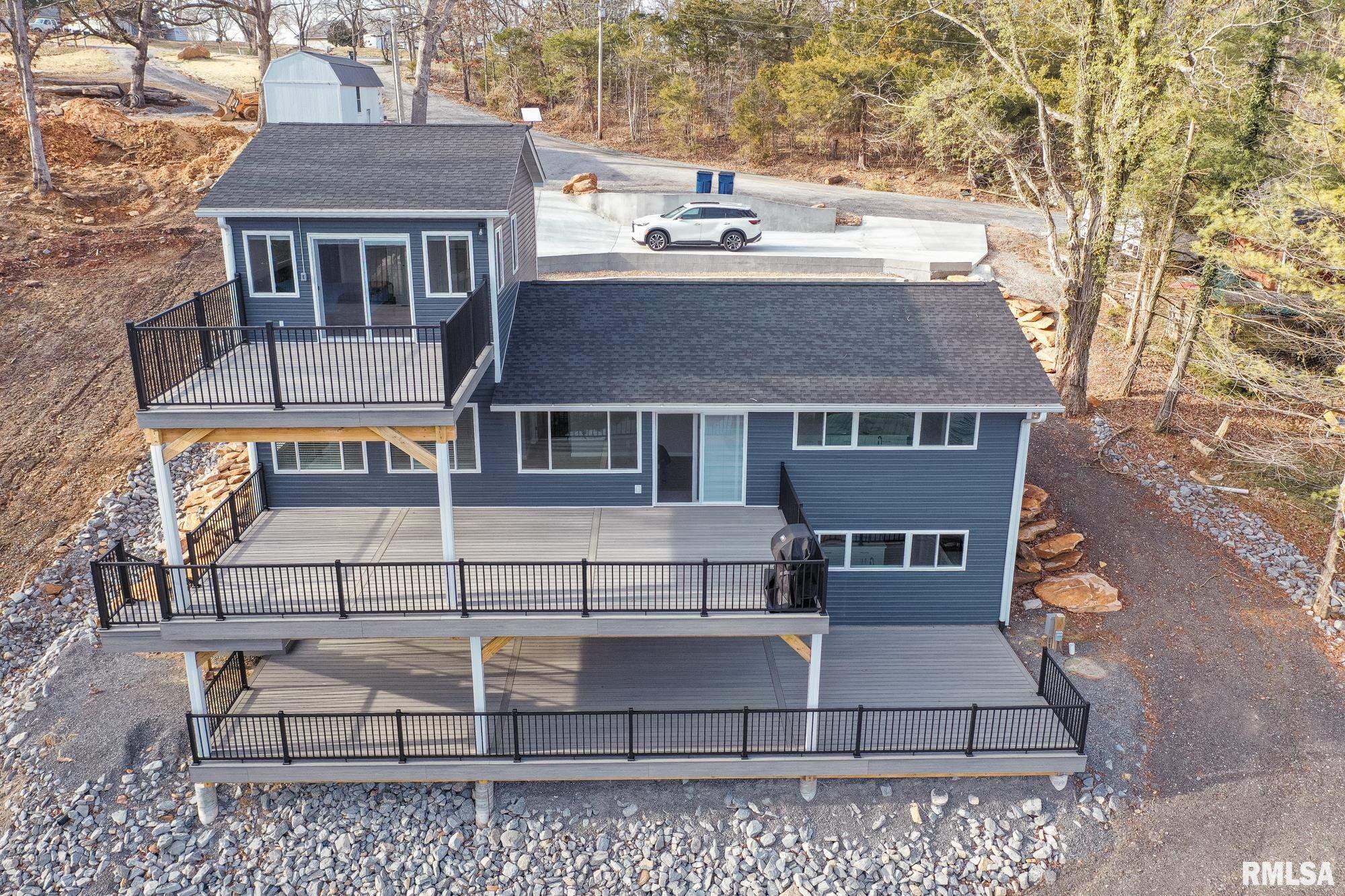 This completely renovated 2,958 SF waterfront home on Lake of Egypt offers 4 bedrooms and 4.5 baths with stunning lake views from all three levels. Each bedroom features its own private bath, and the home includes two full eat-in kitchens. One on the main level and one in the walkout basement. Both with new solid wood white shaker cabinets, soft-close doors and drawers, quartz countertops, large islands, farmhouse sinks, and new stainless steel appliances. The main level includes a spacious living room, dining area, and two en-suite bedrooms. The upper level is a private en-suite retreat with its own secluded composite deck overlooking the lake. The walkout basement features a full kitchen, dining area, living room, half bath, laundry, and an oversized master suite with en-suite bath. Ideal for guests or entertaining. Major upgrades include new flooring, drywall, paint, kitchens, baths, windows, doors, trim, lighting, electrical, plumbing, HVAC, siding, and roof. The lot features over $200,000 in improvements, including landscaping, retaining walls, driveways, a walkway to the water, and a double dock with one boat lift. Three large composite decks provide exceptional outdoor living. Located less than 5 miles from I-57 in an area allowing short-term rentals, this home offers the perfect lakefront lifestyle or investment opportunity.