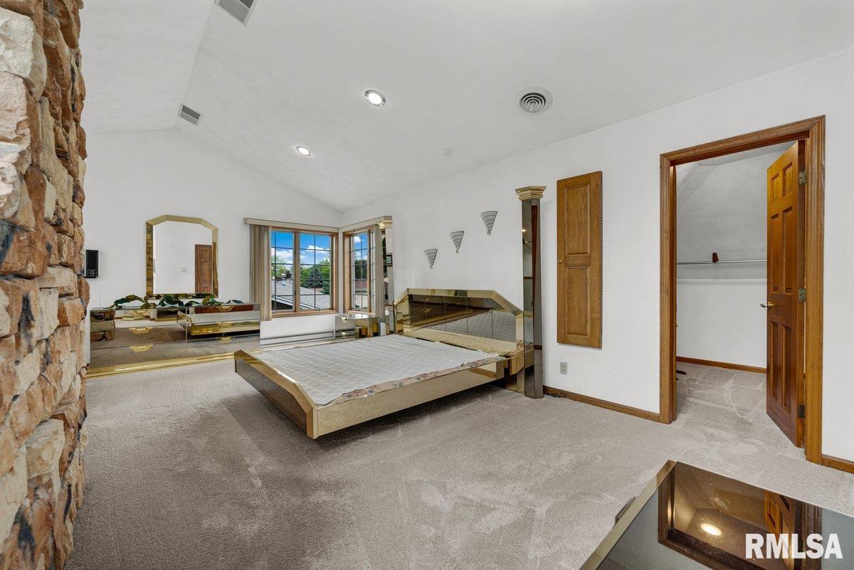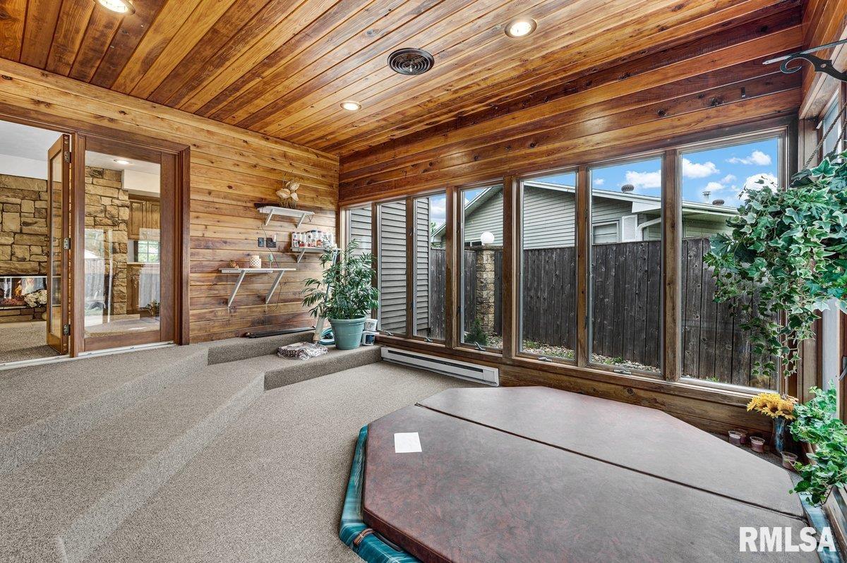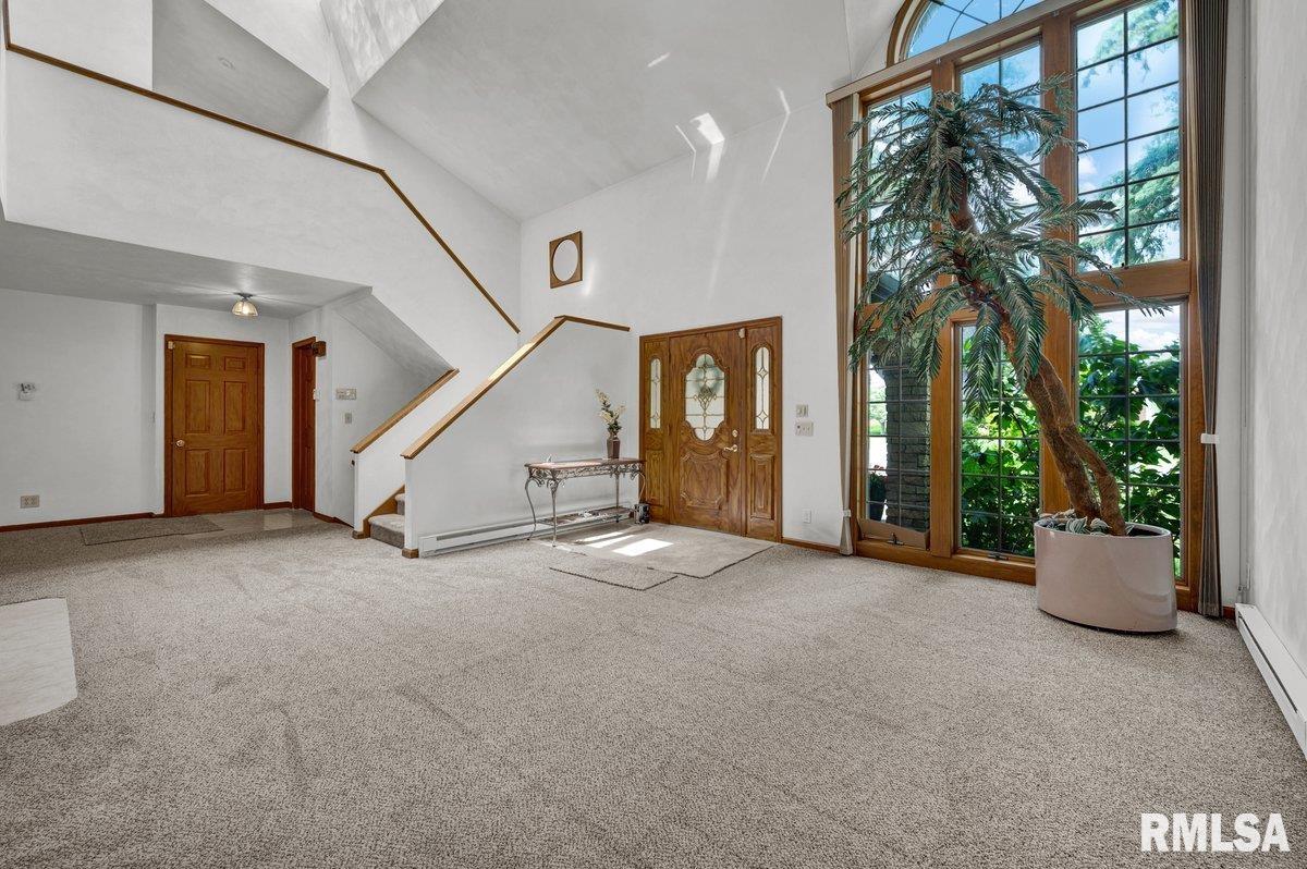 Inviting, One of a Kind, Home! The huge Koi Pond, and Waterfall in the Rear Yard lends for Tranquility and Peace! Three Finished Levels of Living! Upper loft with a private suite, walk in closets, a large office area and bathroom! Floor to Ceiling Lodge Style Stone Two Sided Fireplace, skylights, and Sunken Hot tub room Accents the Main Floor! Third finished lower level with brand new beautiful epoxy floor with regular sized windows bringing in the sunshine. HEATED 4 Car Garage with electric car charger with an excellent workshop space.