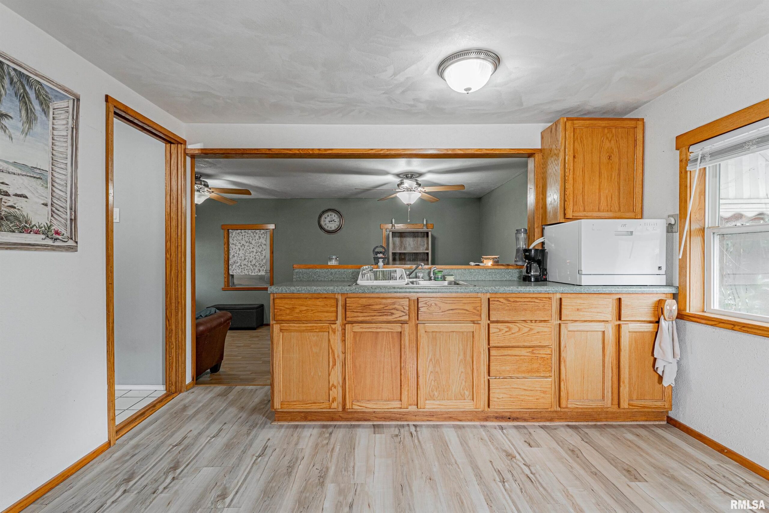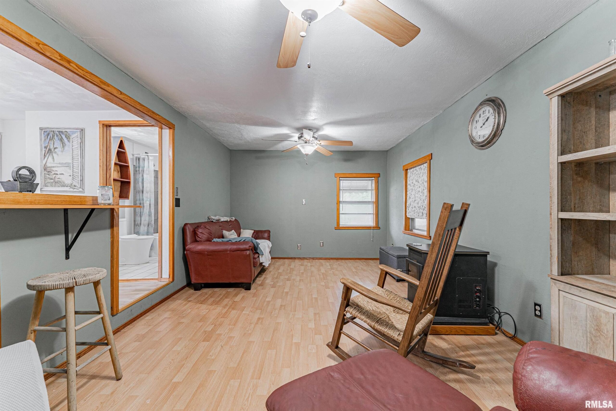 Enjoy the laid back lifestyle of Spring Lake living with this cozy and efficient one bedroom single story home! The interior boasts a sunken living room with great floor space, laminate flooring, and a pellet stove, equipped eat-in kitchen with a breakfast bar, ample room for a large table and chairs, and an exterior access point, cozy bedroom, and an updated full hall bath. Property also features a neat covered attached patio area, metal roof (2024), newer exterior vinyl siding, mini split which provides great heating and cooling, storage shed, and gravel off-street parking for two vehicles. Private well/septic system on premises. Low taxes paired with an affordable list price -- make your escape to the outskirts of Tazewell County with this practical dwelling!