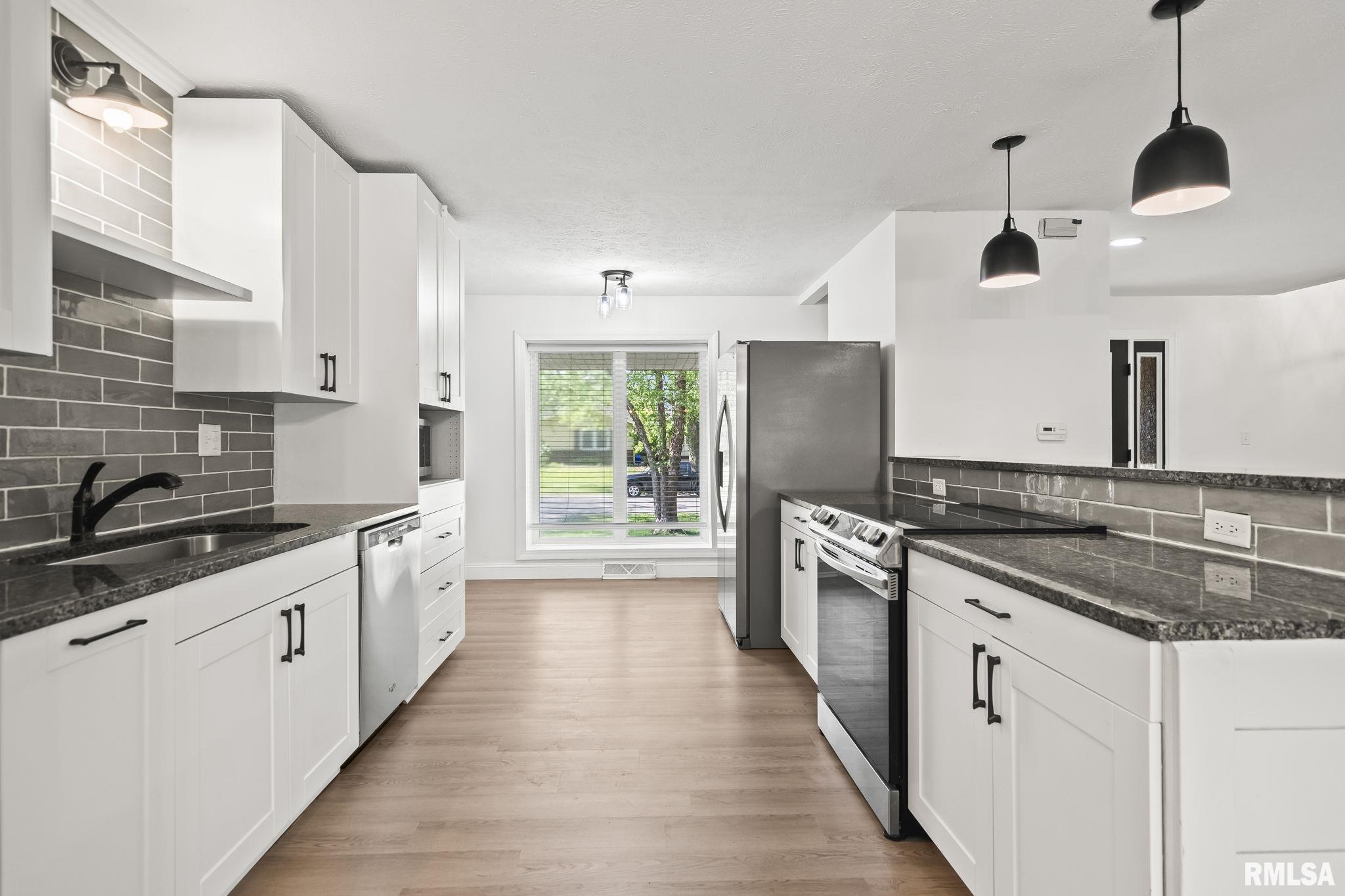 Tremendous Tri-Level!!! Top to bottom, this home has been three times refreshed! Colors and textures... Floors to ceilings... Light fixtures to faucets... Granite counters to back splashes... Black framed windows to grey shingles... A classic among the maples. With a fenced back yard for pets! The brand new flooring throughout really pulls it all together. A unique opportunity for a VA loan buyer - a transferable 2.xx% mortgage Prepare to be impressed by this fully renovated stunner in Country Club Estates, standing firm on a quiet, tree lined street, with sidewalks for strolling... The classy lines and finishes of this 4 bedroom, 2.5 bath home offers a perfect blend of sophisticated updates and Modernist charm. Step inside to discover gorgeous new flooring, newer doors and windows that flood the space with natural light. Bathrooms all updated with luxe finishes, fixtures and modern tile. Lower level has egress windows, a Family room/bonus room, Laundry in a nook, and a 4th Bedroom. Fenced backyard ready for outdoor fun or future expansion. Clean as can be with quality everywhere you look, this home is move in ready! Don’t miss this rare opportunity! Home has been pre-inspected and is being sold as reported. Schedule your showing today! Damaged window is ordered for replacement. We will consult with a contractor for a few notes in the inspection otherwise selling as reported! Water line to refrigerator is currently disconnected to correct a small leak.