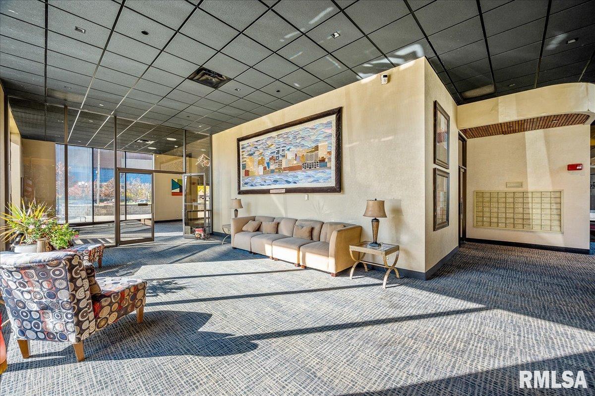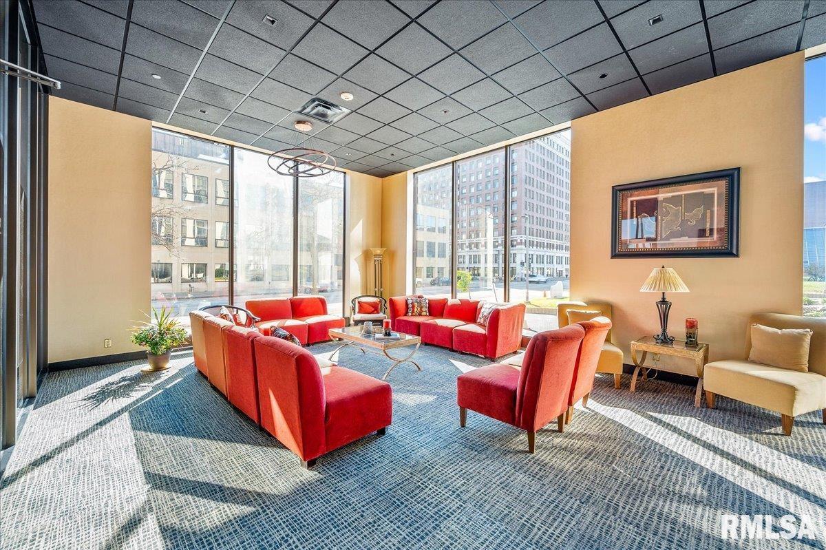 Fully updates spacious 3 bed (Possible 4)/2 bath unit with great views of Downtown, Peoria Civic Center and Historic Peoria City Hall. Every detail has been done from lightening, to flooring, to kitchen and baths. This unit is an impressive must see and move right in for no maintenance living. Office off the Livingroom with a closet could be a 4th bedroom or entertaining space. Twin Towers has an entertaining room and outdoor patio with seating and grills. Parking in the parking deck attached. Additional storage available for rent. HOA covers water, sewer, and trash.