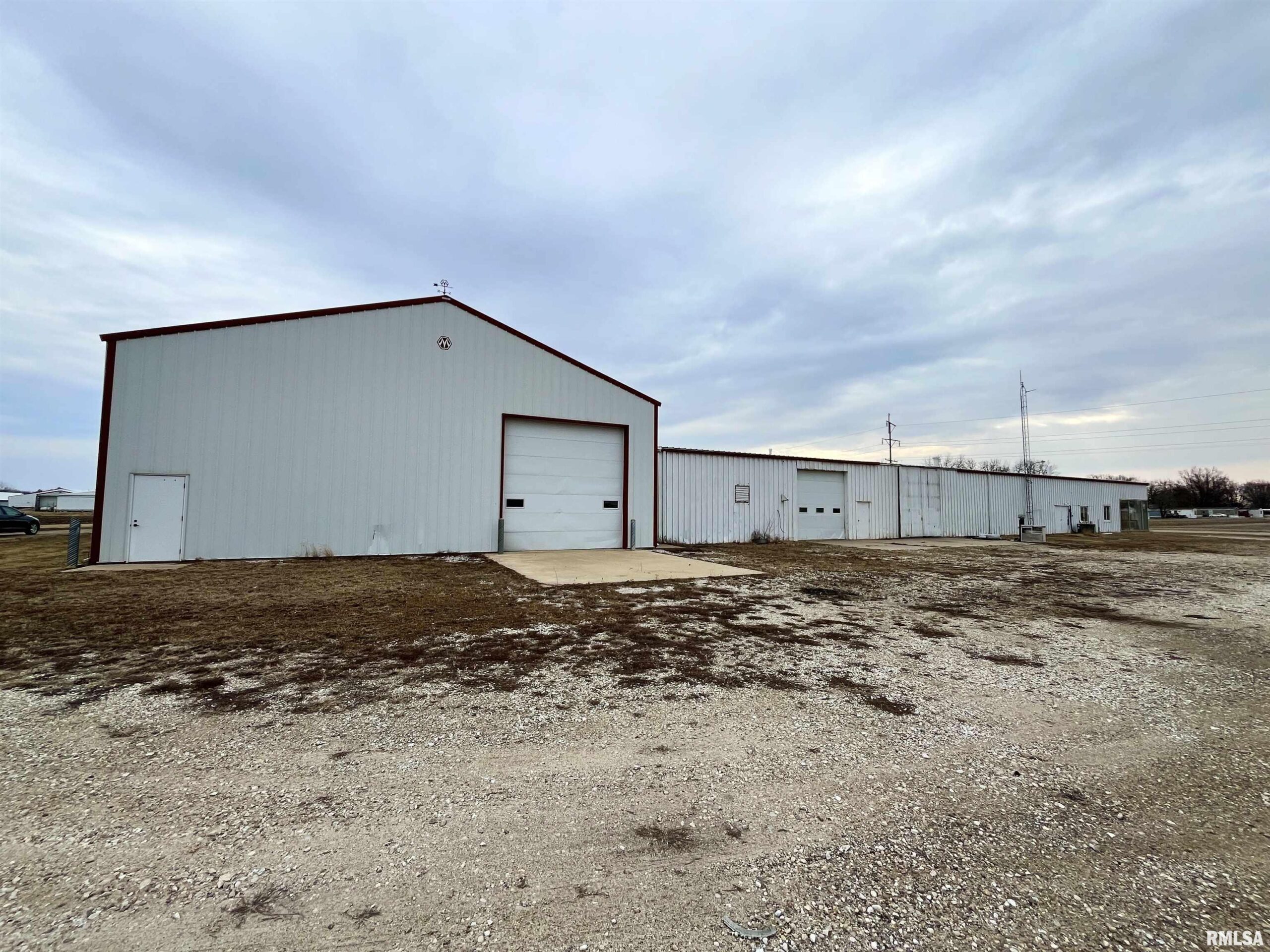 This large commercial property was formerly Lane Transport and is located in Farmington, IL on Rte. 116. There are many potential uses with the facility and land as it's located in the Farmington Commercial TIF district and qualifies for many redevelopment incentives. The building is also available for lease at $6 psf gross + utilities. The sale includes two connected buildings on 2.2 acres - the first building is a steel frame 11,534 Sq. Ft. with 1225 of office space, mostly open warehouse space and a heated shop area with internal and external overhead doors. The second building is a 3552 Sq. Ft. pole barn added in 2014 that features two large overhead doors and 8" concrete floors. The buildings are connected through a large walkway. There is 3 phase 480 electric in the large building and a small sub panel in the pole building. The office space features 3-4 offices, 2 restrooms, updated AC and furnace, and the warehouse space has an additional restroom. The roof was painted and sealed in 2019. Clearspan height in the warehouse is approximately 14'5". The main building includes 9 level dock doors. There are contiguous parcels of commercial land that could be purchased additionally, not included in the sale price.