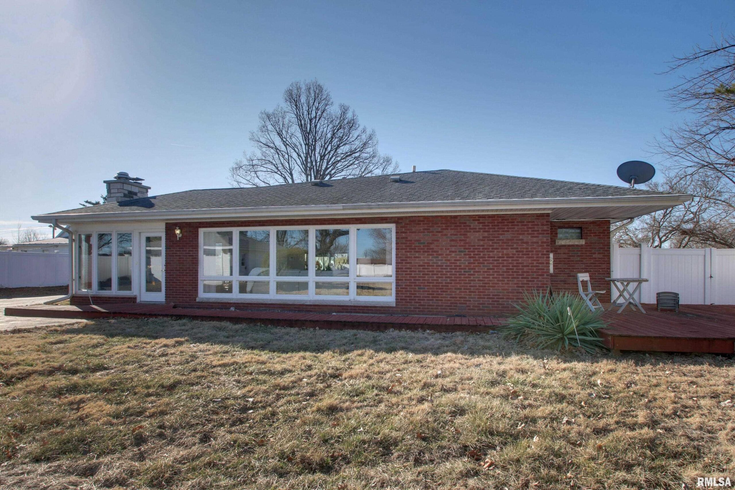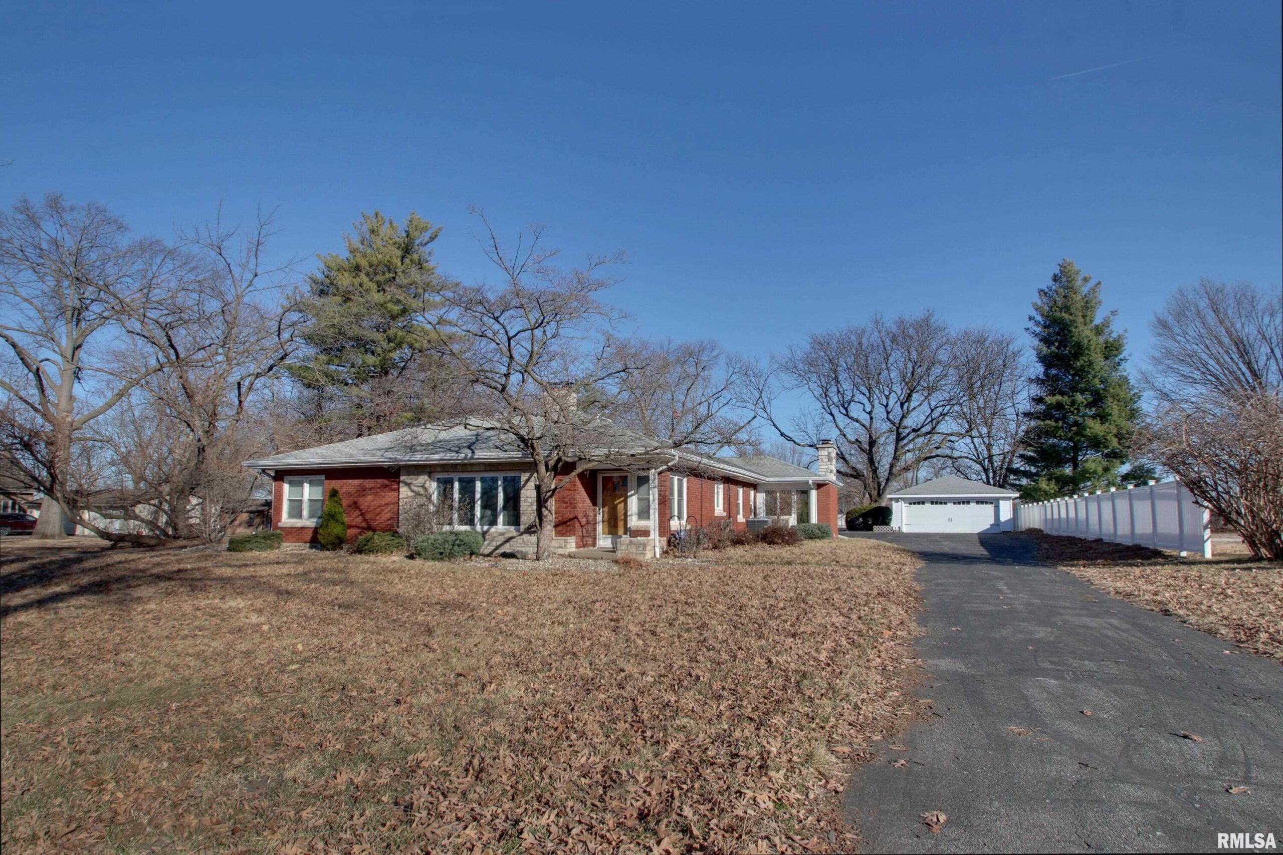 Welcome home to this true mid century style ranch 4-bedroom, 2-bathroom home featuring a large family room overlooking a beautiful flat lot of .88 acres. The property is fenced with white vinyl fencing, installed in 2022 on three sides. Inside, you'll find 2534 sq ft of living space with plenty of storage, including a drop-down attic step and a partial basement with a poured foundation that now serves as a laundry room. The basement is waterproofed and equipped with a water-powered sump pump. The house also has 2 wood-burning fireplaces, replacement windows throughout (except for the family room windows), a heated primary bedroom bathroom floor, a cedar-lined walk-in closet, a secondary closet, 2 HVAC systems, a 200 amp home, city water, and sewer. The garage is oversized (26 x 22) and offers an attached workshop (21 x 13). The kitchen features a reverse osmosis system, while the property has an ADT security system (subscription needed), a radon mitigation system, 200 amp electric service, and an owned water softener. The driveway was sealed in 2022. Water heater 2018. This home is loaded with features and updates—making it everything you have been looking for!! Some pictures are staged from previous listing or seasonal pictures. Current owner has not lived in the property. New HVAC unit in 2025,updated electrical.