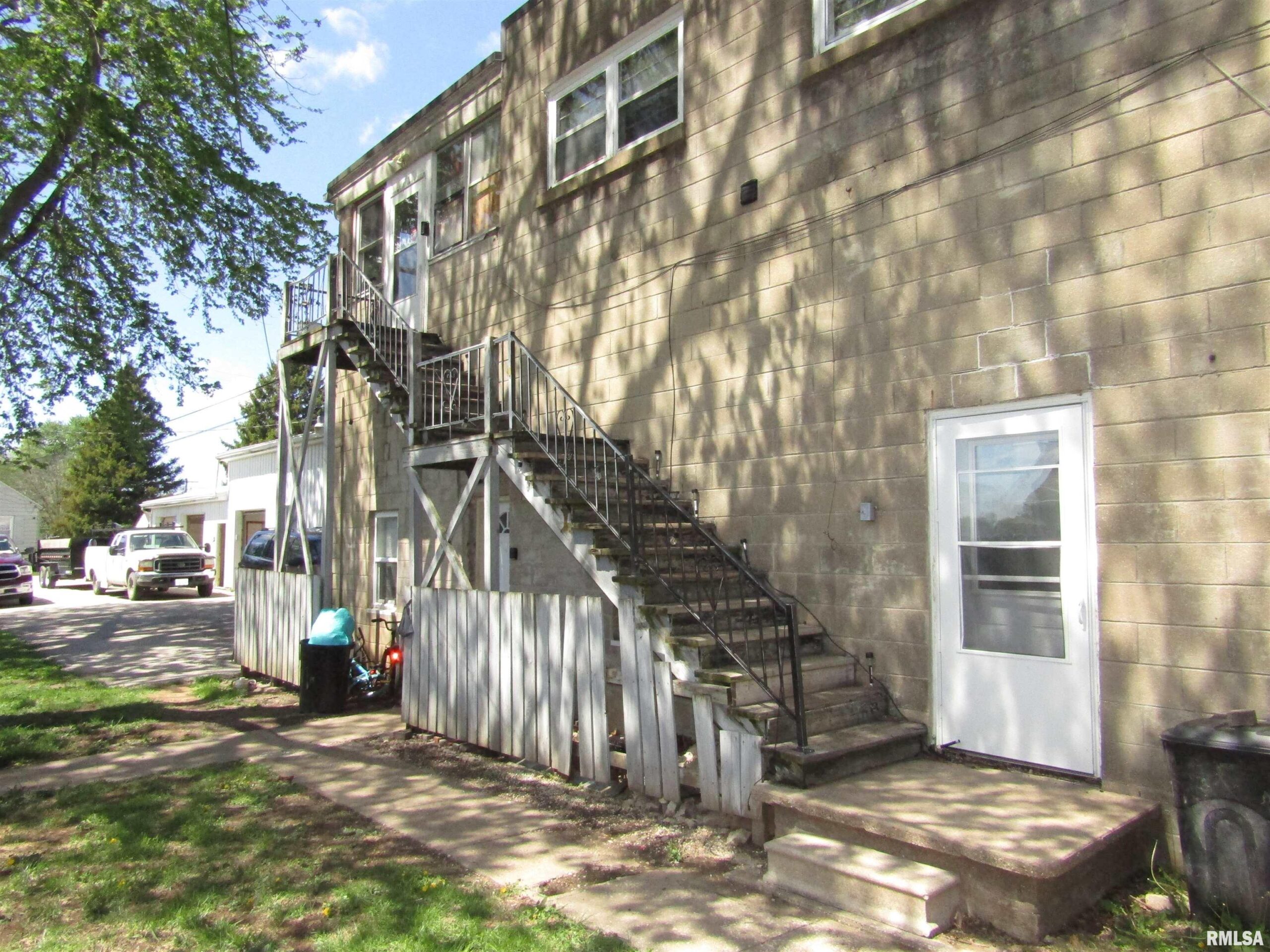 3 unit apartment building - 4,800 square feet. Two of the units are 2 bedroom, 1 bath and the third unit has 3 bedrooms and 1 1/2 baths. All appliances stay. Each unit has it's own laundry as well. All are in excellent shape. Commercially zoned. Alley access to a 60'x25' shop/garage which has a 1/2 bath, kitchen, loft, furnace, tall ceilings and tall garage doors. Property is all blacktopped.