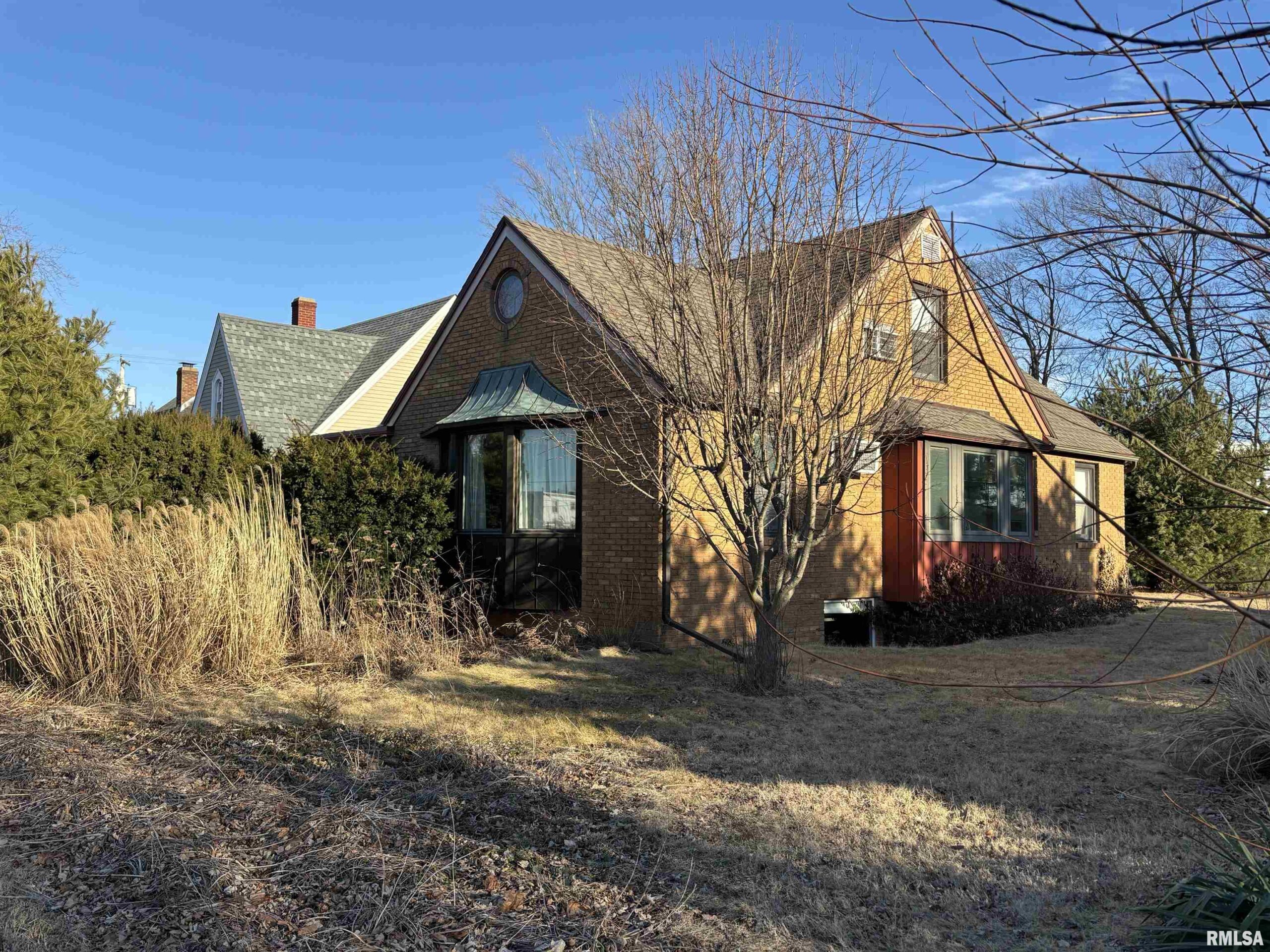 A Rare Opportunity! Owned by the original family since 1949, this well-built all-brick home is filled with character and endless potential. Situated on a double lot, it offers an excellent opportunity for restoration or renovation. Property is being sold AS IS. The upper level was designed as a private apartment for added income and includes a bedroom, living room, kitchen, bath, and small office or flex room. Built-in closets under the eaves provide generous storage. (Separate exterior entrance will need to be rebuilt.) The partially finished basement features a classic 1950s-style rumpus room with a stone gas fireplace, shuffleboard-style floor, daylight windows, and walk-out stairs from the laundry/utility area. There is also a cold canning room and small crawl space under the front porch. Custom louvered doors crafted by the original builder add charm throughout the main level. The covered front corner porch offers timeless appeal. The kitchen includes abundant cabinetry. In-floor hot water heat serves the main and upper levels, with baseboard heat in the basement. A spacious detached garage with attic storage and alley access completes the property. Do not access upper decking off kitchenette. It is unsafe. Square footage is not warranted; buyers to verify to their satisfaction. Appliances not warranted. Electrical is 60 amp, boiler pump replaced in '25, water heater replaced in '20. A/C in Lvrm doesn't work, roof replaced in '07 or '08, Pella windows in early 00's.