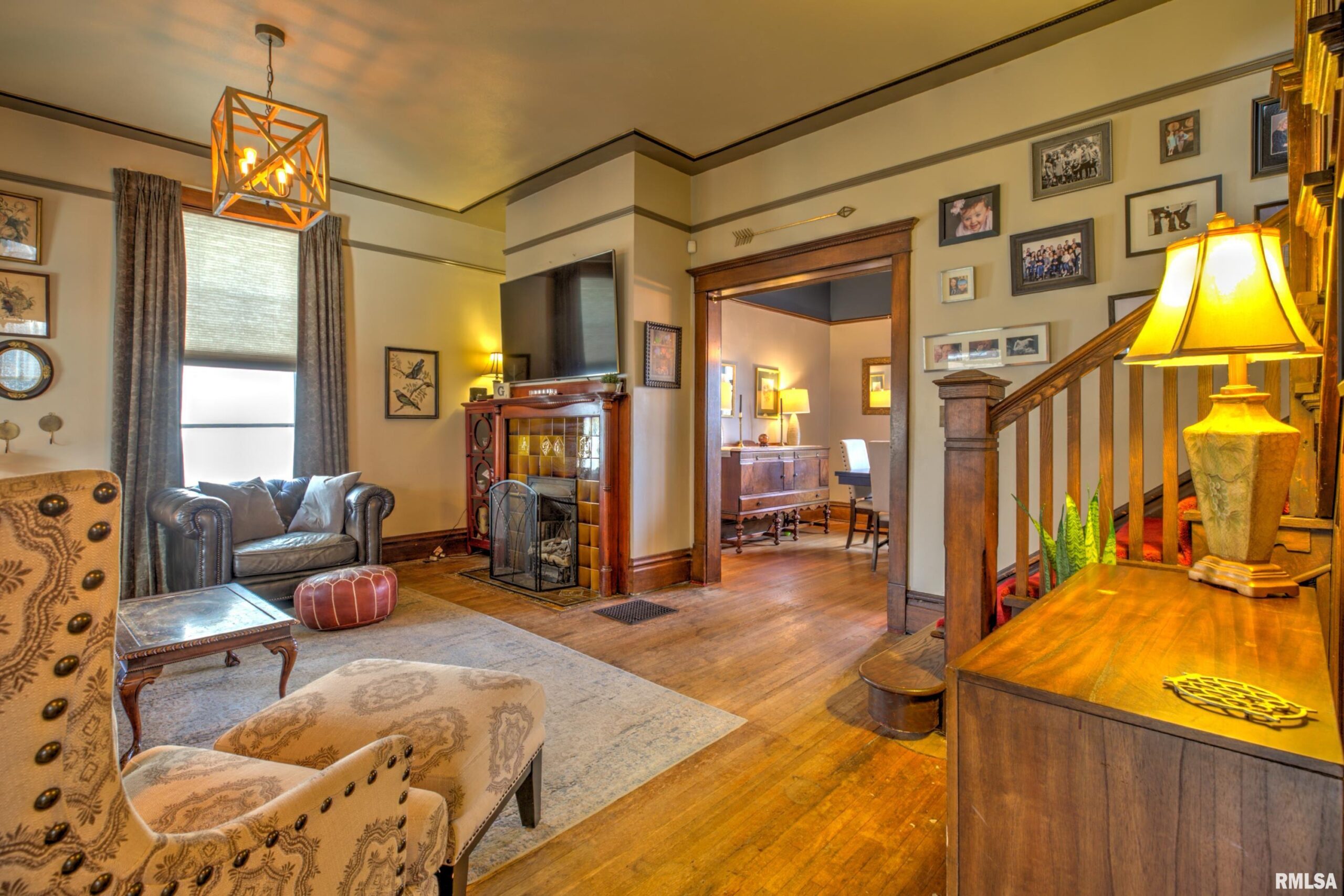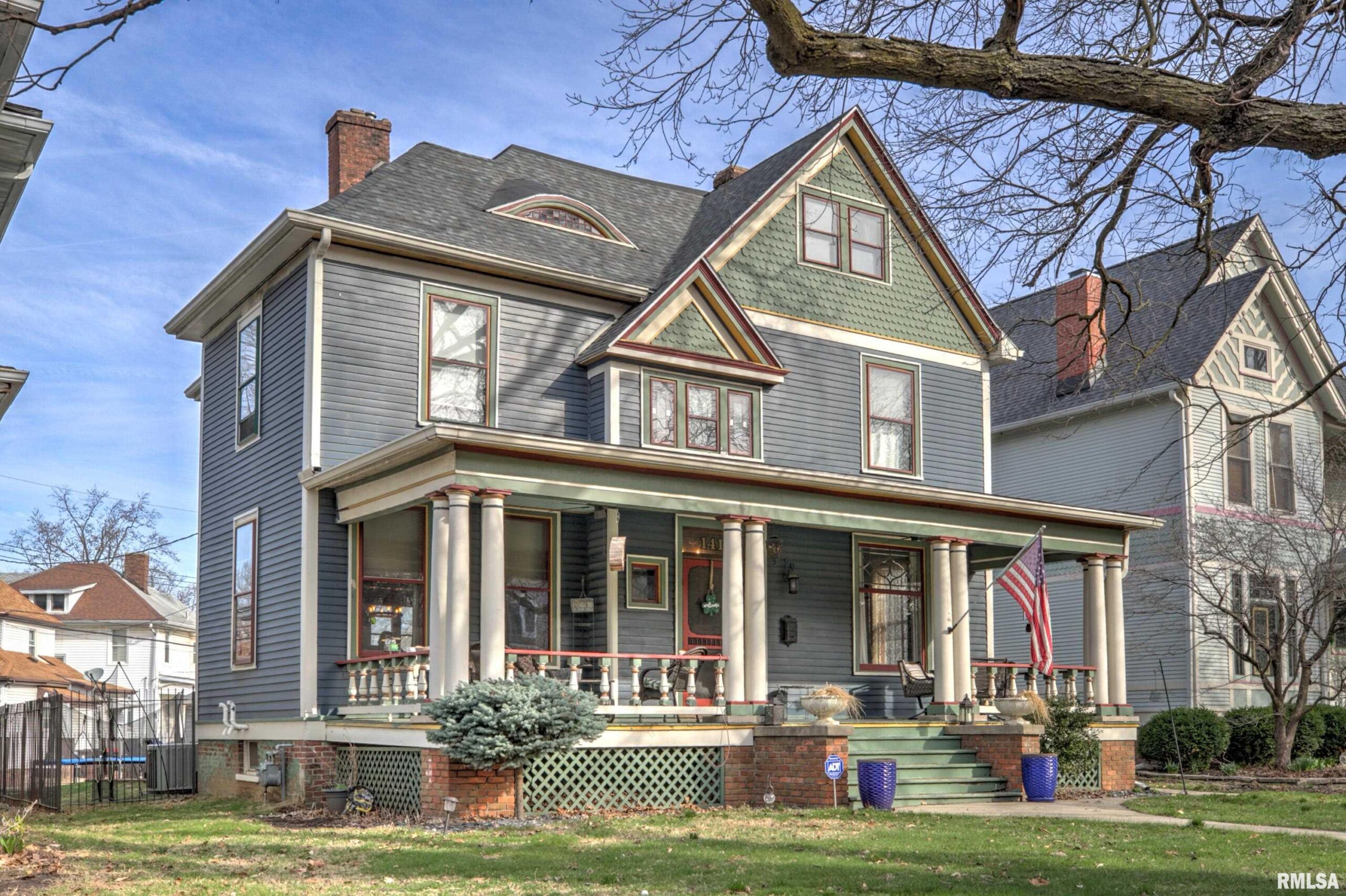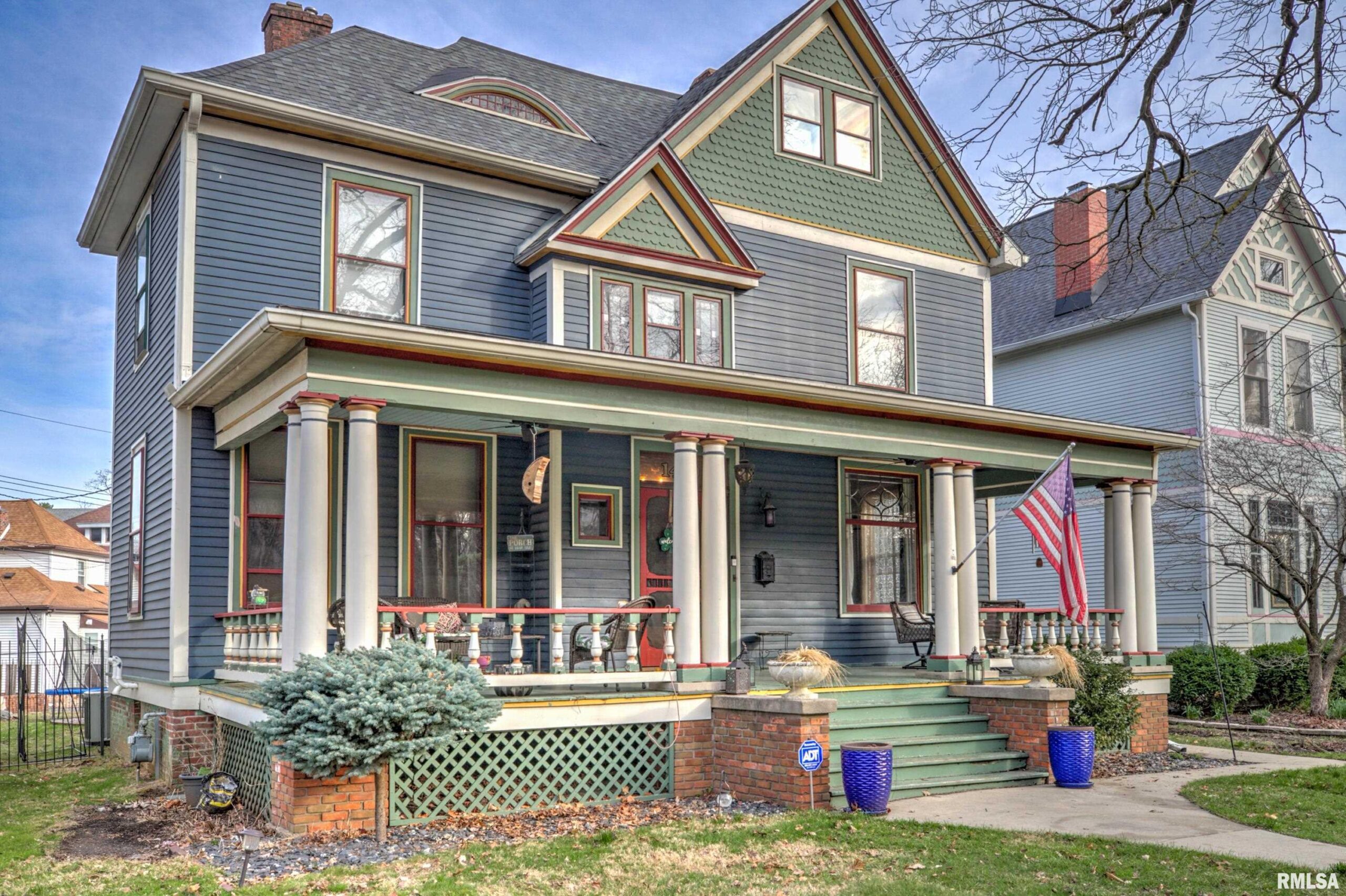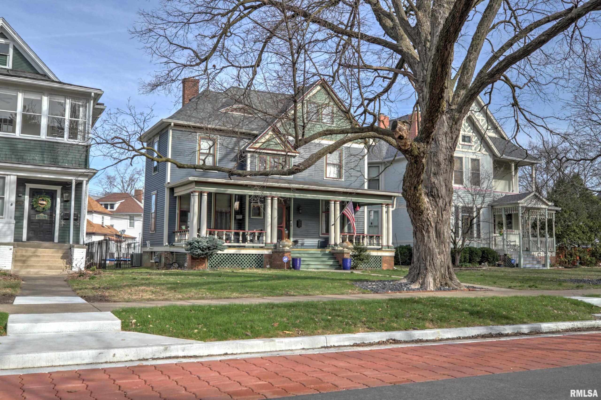 Step into timeless elegance on historic Moss Avenue! This stunning Victorian-style, turn-of-the-century home offers a rare opportunity to own a piece of history on one of the area’s most premier blocks. Rich in preserved character and intricate craftsmanship, this home beautifully blends old-world charm with everyday livability. An inviting oversized front porch sets the tone—perfect for relaxing and enjoying spring and summer evenings. Inside, the cozy living room welcomes you with original hardwood floors, oversized windows, and a gas log fireplace. The formal dining room impresses with a built-in buffet/bar and views of the private backyard, creating the perfect space for entertaining. The fully applianced kitchen offers ample cabinetry, while the show-stopping main floor parlor is truly one of a kind—featuring an ornate chandelier, decorative fireplace, leaded glass windows, and stunning Bradbury & Bradbury handprinted wallpaper. Gorgeous millwork and stained glass throughout highlights the home’s exceptional craftsmanship. Upstairs, you’ll find four bedrooms, each entry accented with striking stained glass and transom details. The fourth bedroom includes access to a walk-up attic, offering incredible potential for future expansion. Enjoy the outdoors in the fully fenced backyard complete with a double patio—ideal for gathering Don't miss your chance to make this amazing Moss Avenue home your own! Fireplace in parlor and primary bedroom are non functioning and ornamental.
