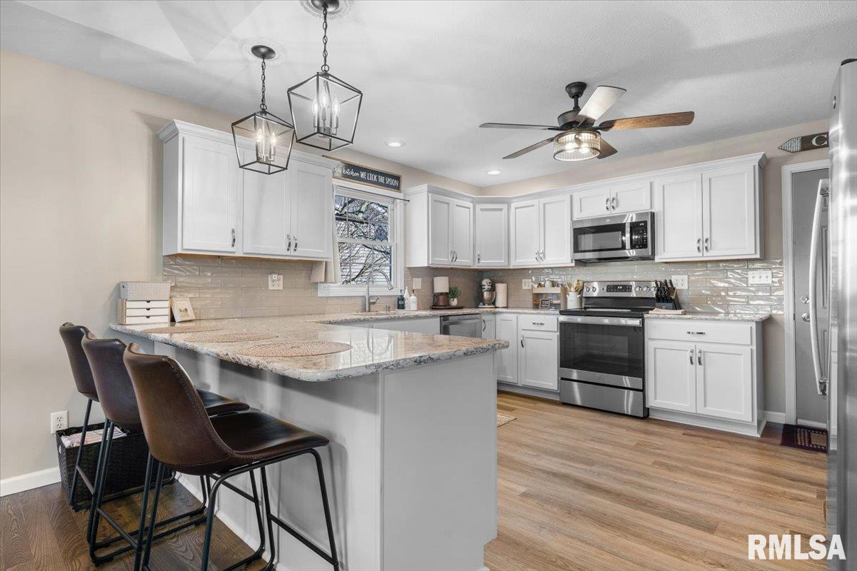 Sitting on a half acre lot, in a great location just across from Chatham's South Park, this incredible ranch home with a finished basement is ready for a lucky new owner to move right in. This place is overflowing with updates! Step onto the refinished hardwood in the living room with gas fireplace, flanked by windows that allow the natural light to pour in. Stare from your dining space out into your huge back yard through the sliding glass door. You'll love preparing meals in this beautiful kitchen complete with quartz counter tops, plus new cabinets, backsplash, flooring, and stainless steal appliances. Down the hall you'll find a generously sized primary bedroom, complete with walk-in closet, plus full bath with double vanity with new top. Additional full hall bath with new vanity top as well. Two additional wonderfully sized bedrooms, along with all new fans and light fixtures round out the main level. The finished basement provides an extra abundance of living space, with an awesome family/rec room, tons of storage, a useful half bath, plus enough space for additional bedrooms. No neighbors to the rear, so you'll have all of the peace you want while relaxing on your low maintenance composite deck. All new interior paint. The home you've been telling your Realtor to watch for is finally here! Showings start 3/8
