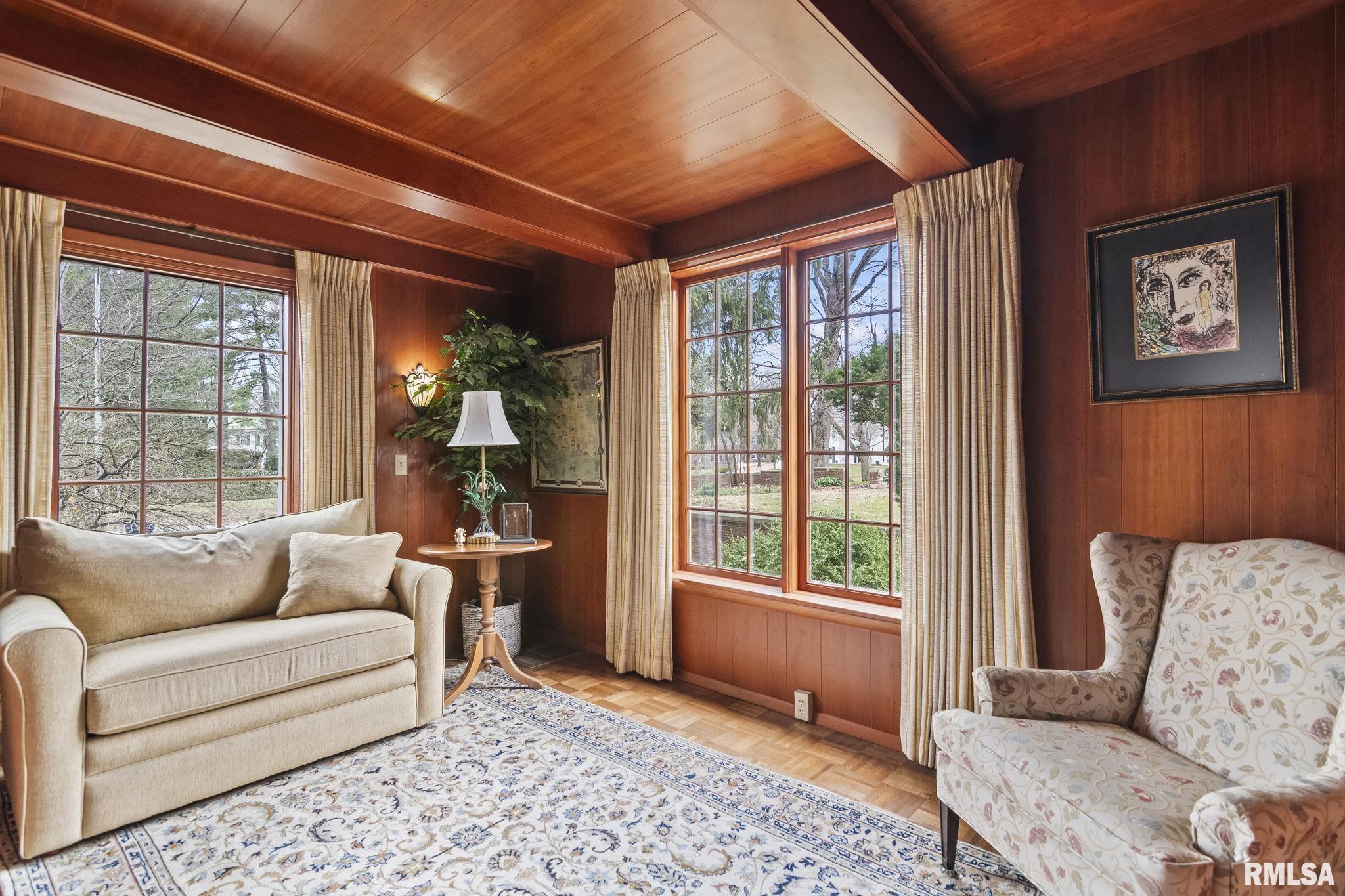 Stately and timeless, this distinguished residence is ideally located in one of Springfield’s most prestigious neighborhoods, just blocks from Washington Park and Illini Country Club. Blending classic elegance with thoughtful updates, the home showcases exceptional craftsmanship and pride of ownership throughout. From the rich walnut-paneled den to the imported hand-painted Italian tile in the kitchen, every detail reflects quality and character. The inviting floor plan offers multiple living spaces, including a dramatic two-story living room, a cozy den with a two-sided fireplace, an enclosed sunroom featuring unique tile flooring, a breakfast room, and a formal dining room—perfect for both everyday living and entertaining. The spacious primary suite provides a comfortable retreat, while two additional bedrooms are connected by a Jack and Jill bath. Additional highlights include a walk-in pantry, new whole-house generator (2024), beautiful hardwood flooring, large windows filling the rooms with generous natural sunlight, custom blinds, composite decking for outdoor enjoyment. The home’s stately exterior offers excellent curb appeal with mature trees, clean architectural lines, and low-maintenance landscaping. A welcoming entryway and thoughtfully designed façade set the tone for what awaits inside. The backyard provides a private setting with ample space for outdoor living—previously home to an in-ground pool. Secluded alley access to the garage adds convenience and privacy.