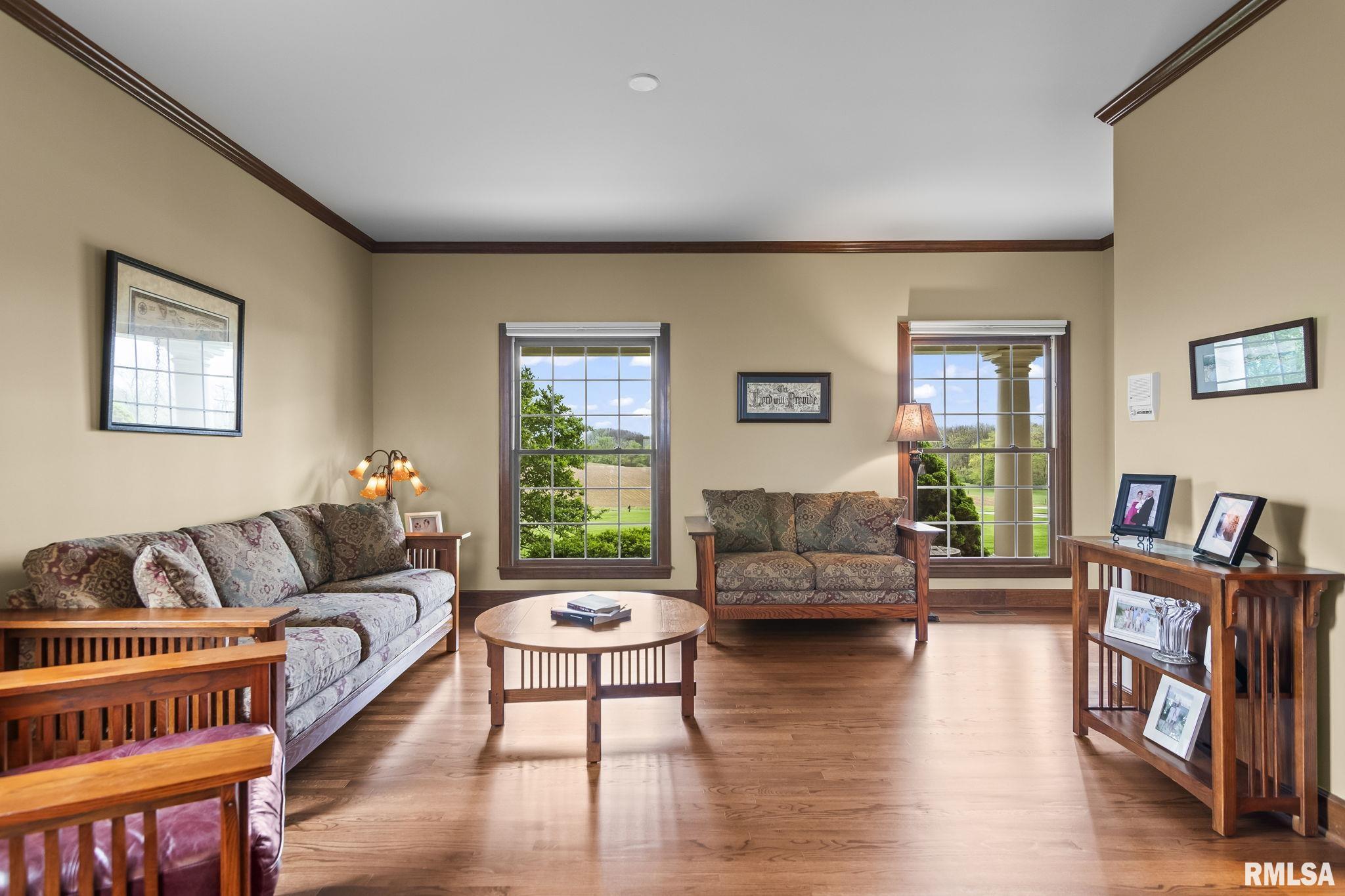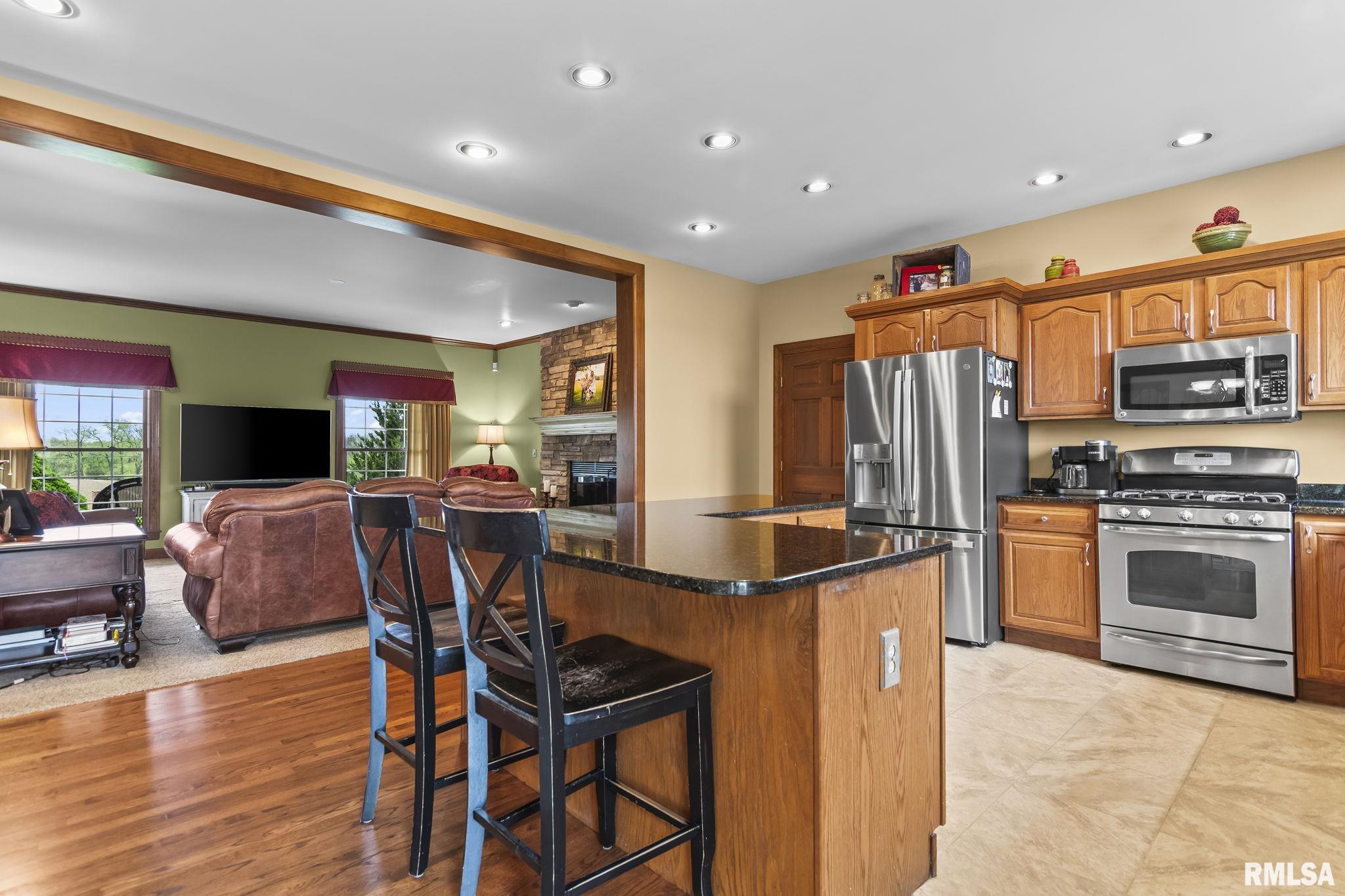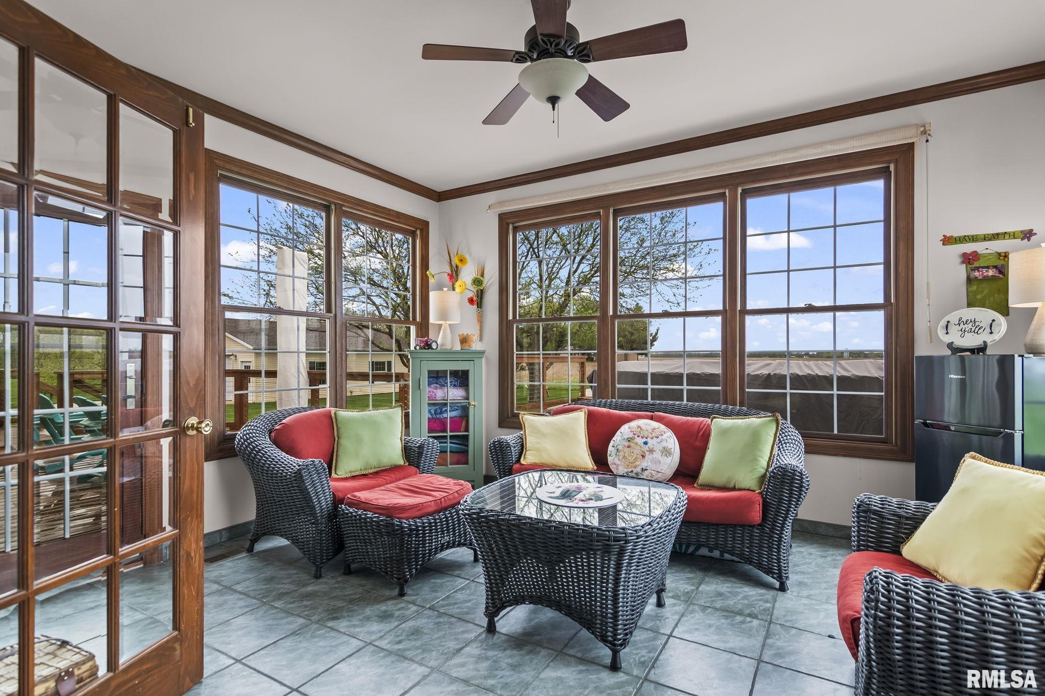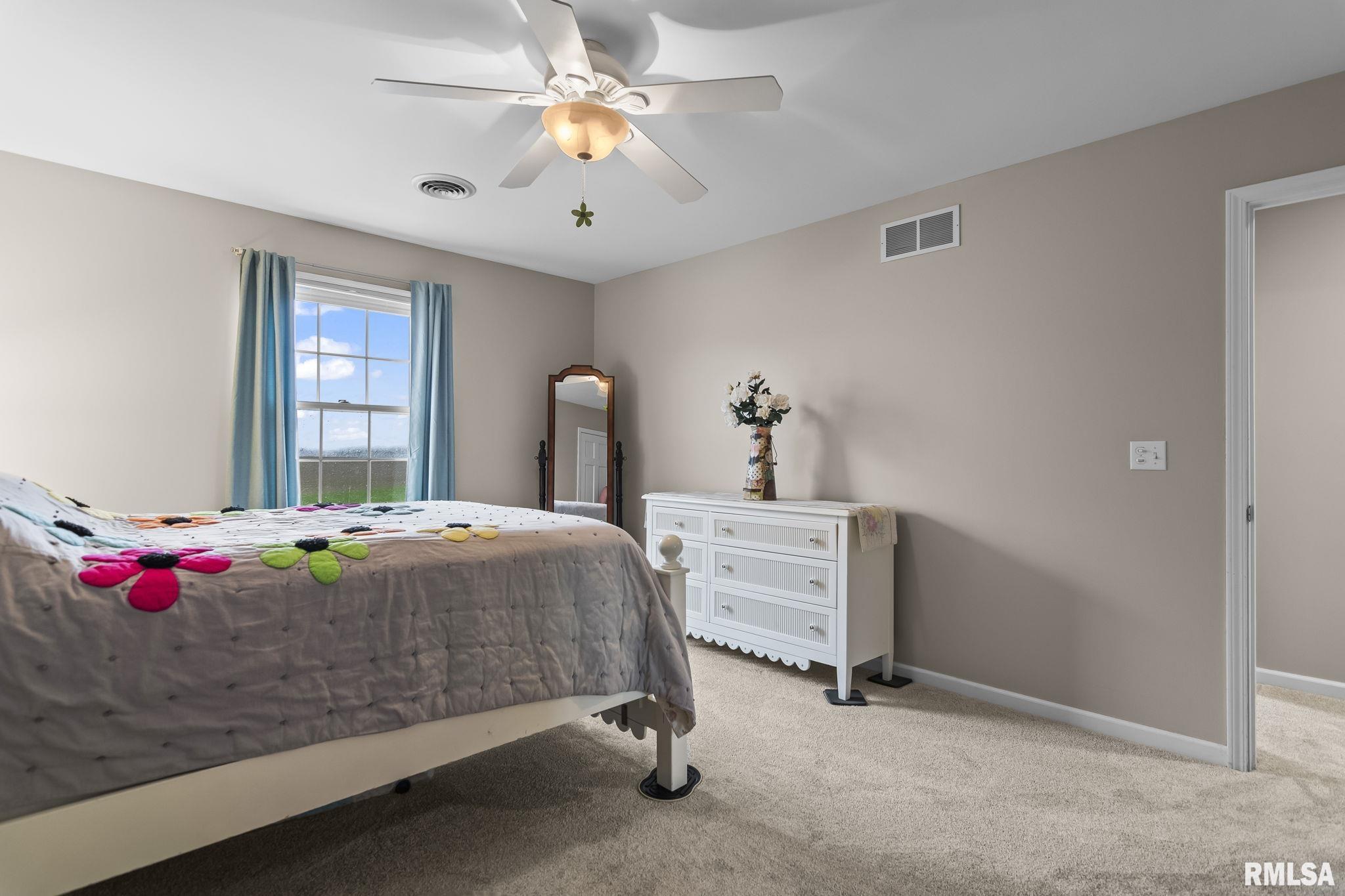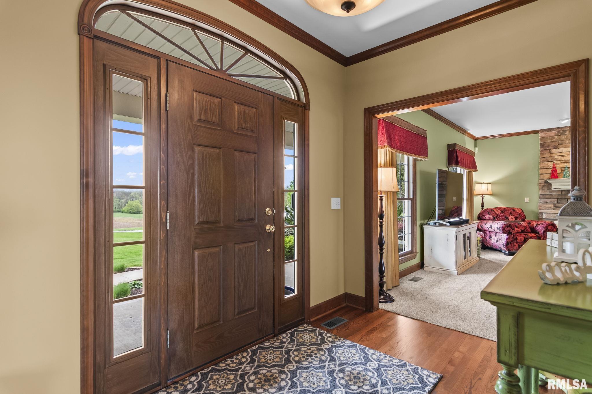 Rare find! This stunning plantation-style home sits atop a hill with breathtaking sunrises and sunsets in a peaceful, private setting. Enjoy the inviting front porch before entering a spacious main level featuring a formal living room (perfect for an office), formal dining room, and a cozy family room with gas assist wood burning fireplace open to the kitchen. Also on the main level: half bath, laundry, walk-in pantry, and a beautiful sunroom ideal for relaxing and taking in the views. Upstairs offers 5 bedrooms, including a large primary suite with fresh paint and new carpet, plus the convenience of a second washer and dryer. The finished lower level adds incredible flexibility with a 6th bedroom, full bath, kitchenette, theater area, and rec space. Situated on 5 acres with 4 acres tillable ground, this property includes a 2 car attached garage, 4 car detached garage, and a long asphalt driveway. Located in the desirable New Berlin School District, just minutes from Springfield’s west side and the Sangamon Valley Trail. Extensive updates include new roof and gutters(2025) HVAC (2021), garage door openers (2023), appliances (2023), granite in baths, updated flooring, fresh paint, refinished hardwoods, cedar deck (2020), and a 30’ above-ground pool (2020). City water, security system, and invisible fence included, perfect for those seeking peaceful country living with room for animals, just minutes from city amenities.