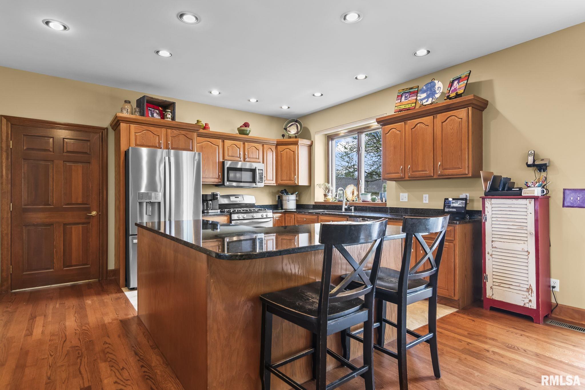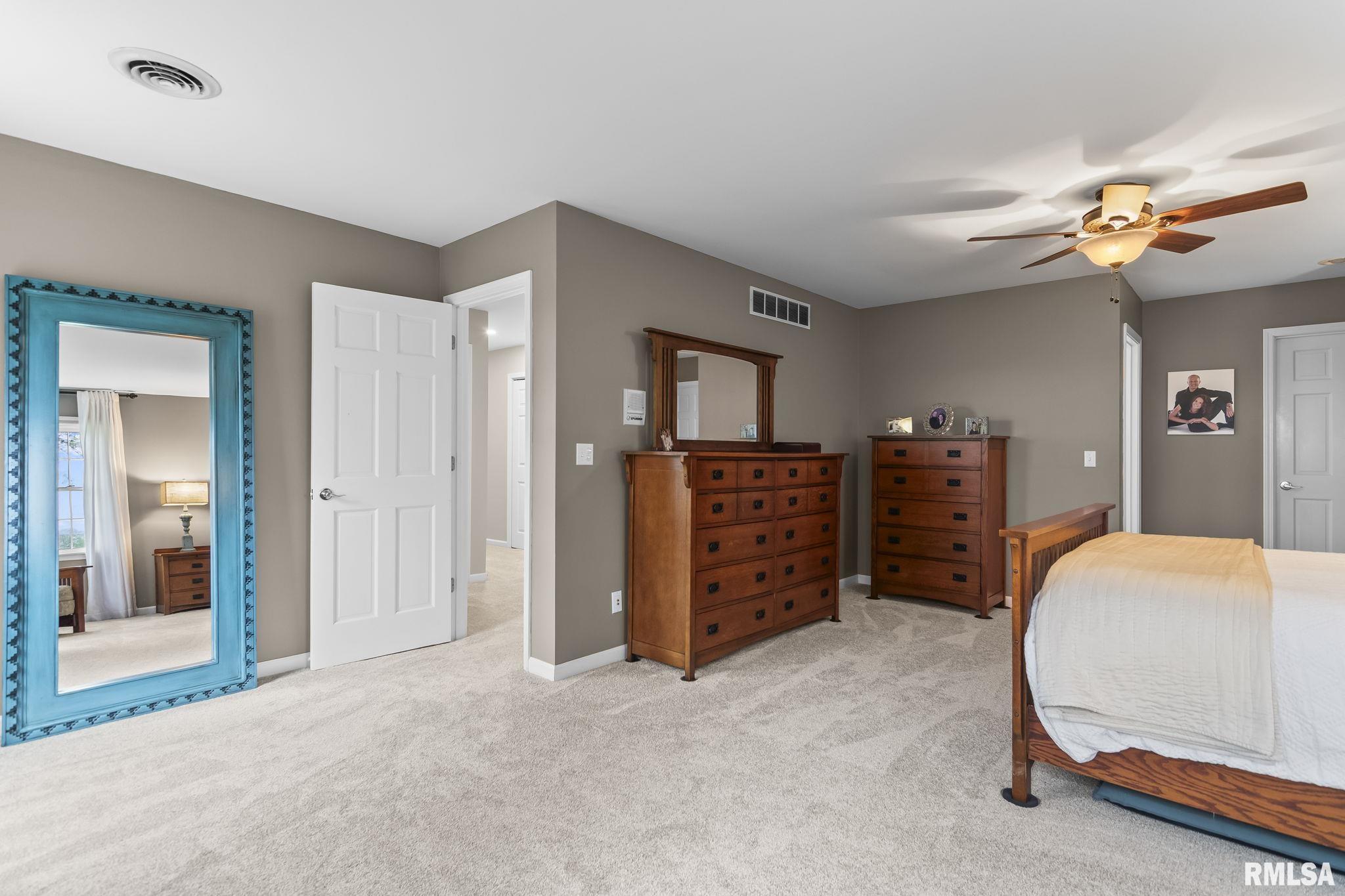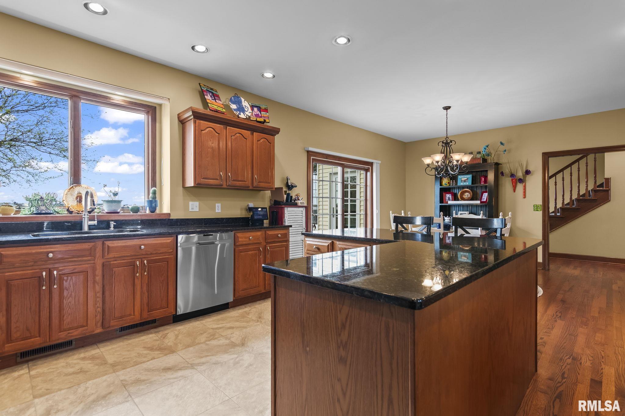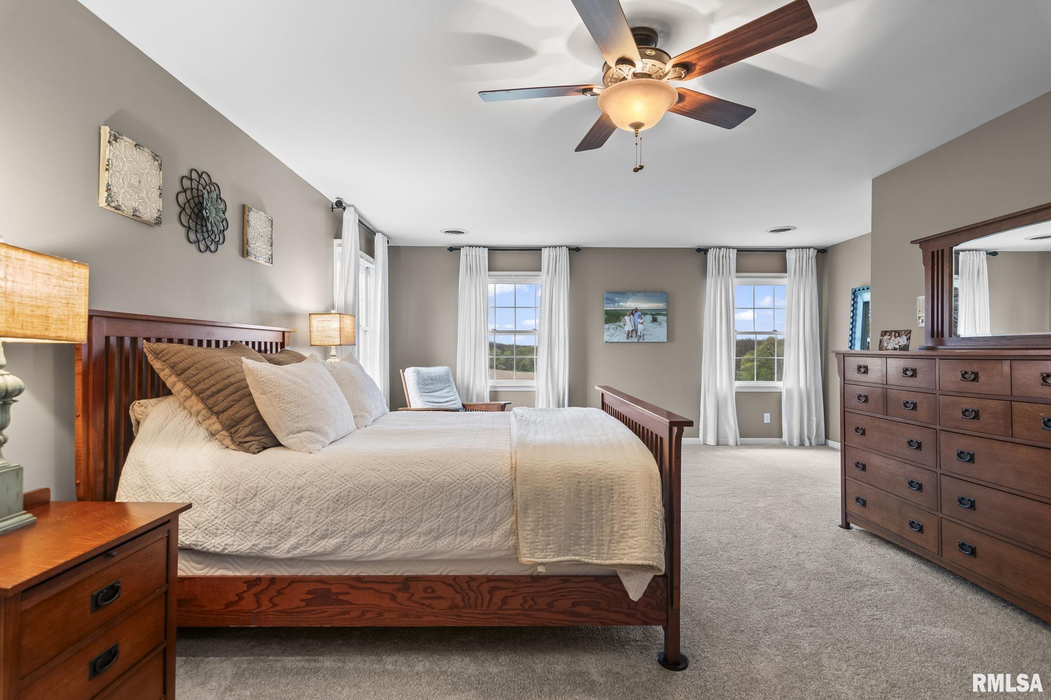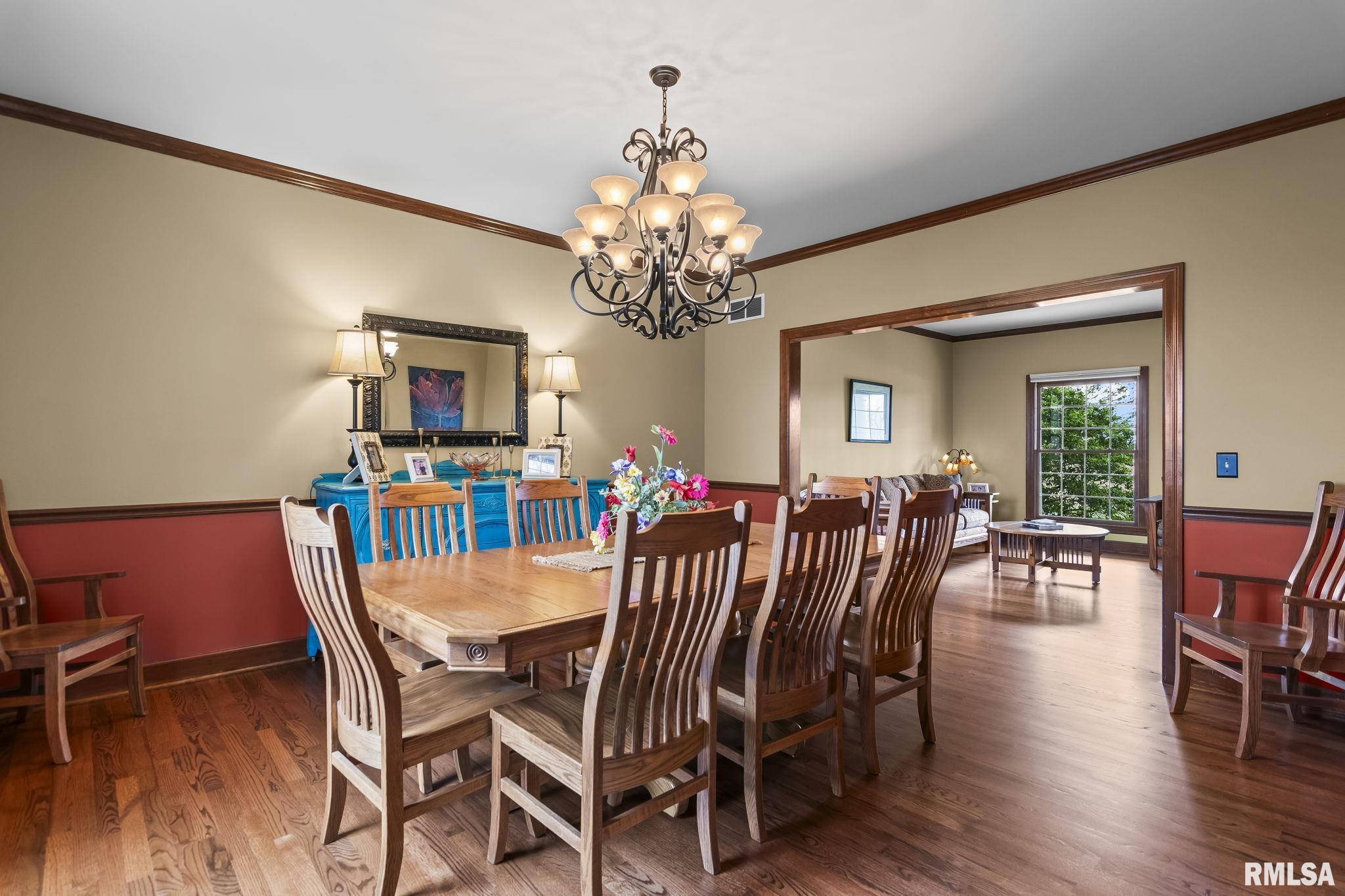 Rare find! This stunning plantation-style home sits atop a hill with breathtaking sunrises and sunsets in a peaceful, private setting. Enjoy the inviting front porch before entering a spacious main level featuring a formal living room (perfect for an office), formal dining room, and a cozy family room with gas assist wood burning fireplace open to the kitchen. Also on the main level: half bath, laundry, walk-in pantry, and a beautiful sunroom ideal for relaxing and taking in the views. Upstairs offers 5 bedrooms, including a large primary suite with fresh paint and new carpet, plus the convenience of a second washer and dryer. The finished lower level adds incredible flexibility with a 6th bedroom, full bath, kitchenette, theater area, and rec space. Situated on 5 acres with 4 acres tillable ground, this property includes a 2 car attached garage, 4 car detached garage, and a long asphalt driveway. Located in the desirable New Berlin School District, just minutes from Springfield’s west side and the Sangamon Valley Trail. Extensive updates include new roof and gutters(2025) HVAC (2021), garage door openers (2023), appliances (2023), granite in baths, updated flooring, fresh paint, refinished hardwoods, cedar deck (2020), and a 30’ above-ground pool (2020). City water, security system, and invisible fence included, perfect for those seeking peaceful country living with room for animals, just minutes from city amenities.