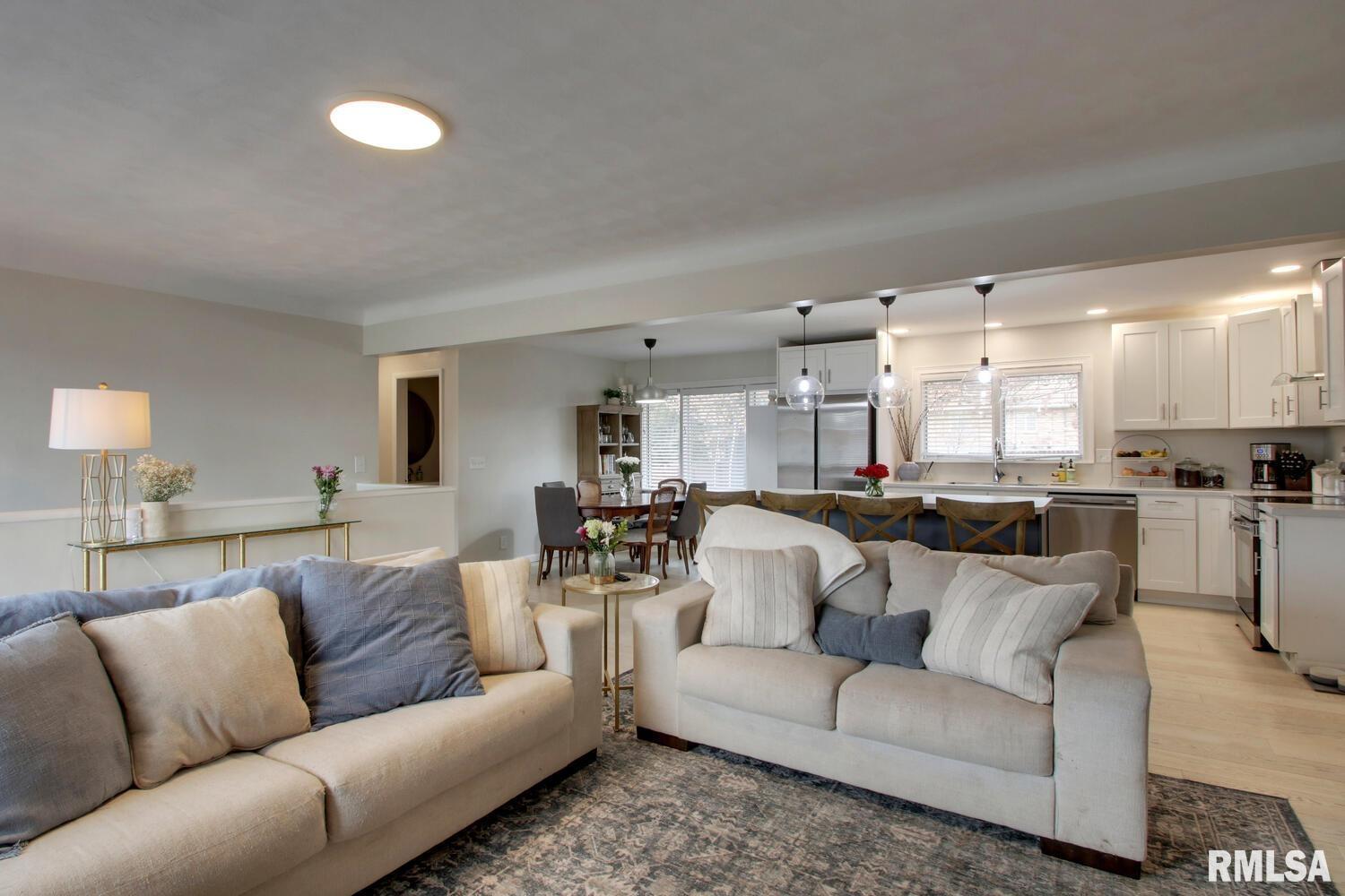 Beautifully updated 3 bed, 3 bath ranch offering 1,374 sq ft of comfortable living space! The bright, open layout features a stylish kitchen with white cabinetry, stainless appliances, large island seating, and dining area that flows into the inviting living room with fireplace and picture window. The primary suite includes a private full bath, while the lower level adds a spacious family room, office/workout space, and full bath—perfect for guests or entertaining. Enjoy the fenced backyard with mature trees and room to play. Convenient mudroom entry and attached 1-car garage complete the package. The furnace and hot water heater were replaced in 2025 and the roof is estimated to be around 8 years old. Move-in ready and located in a desirable neighborhood close to schools and amenities!