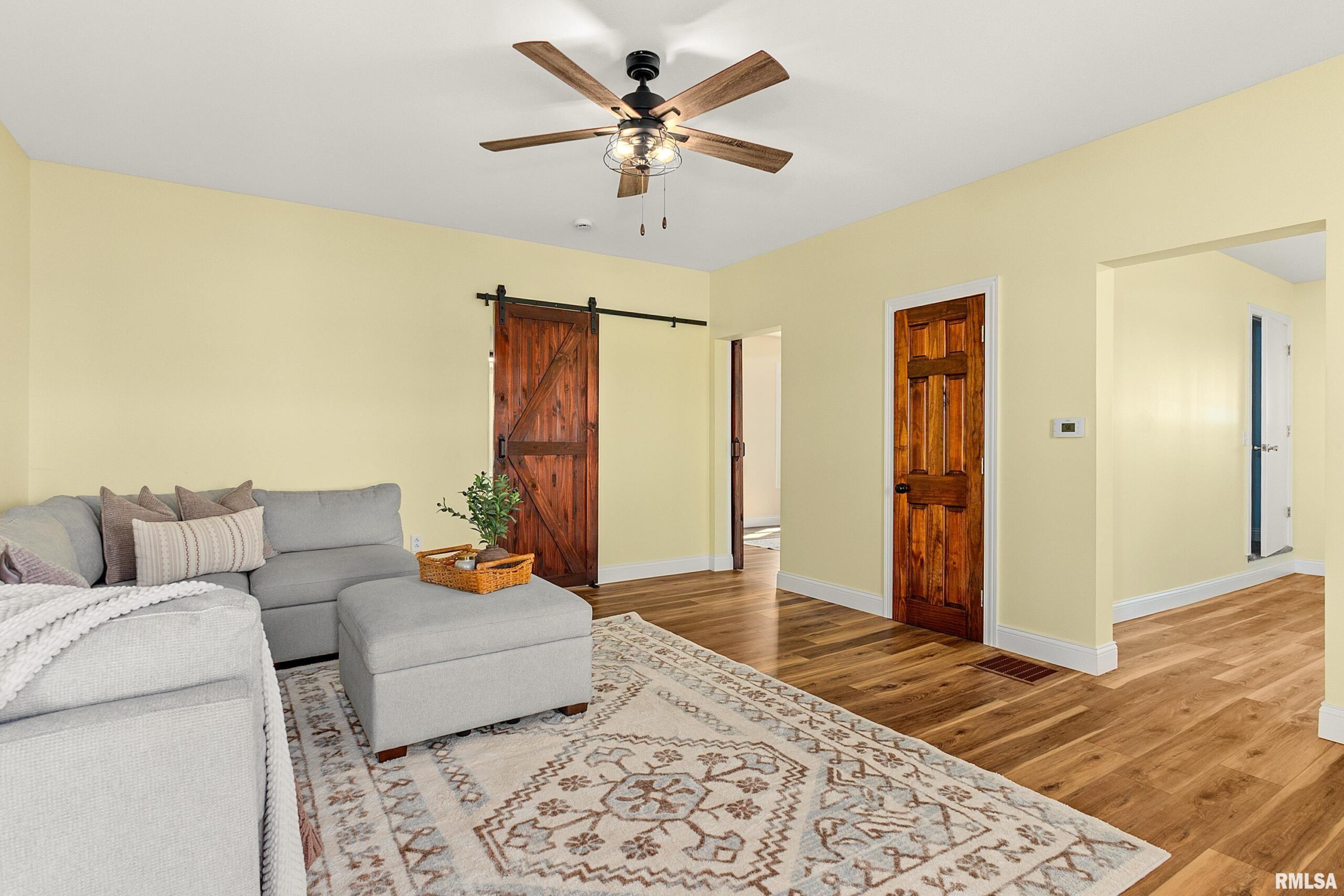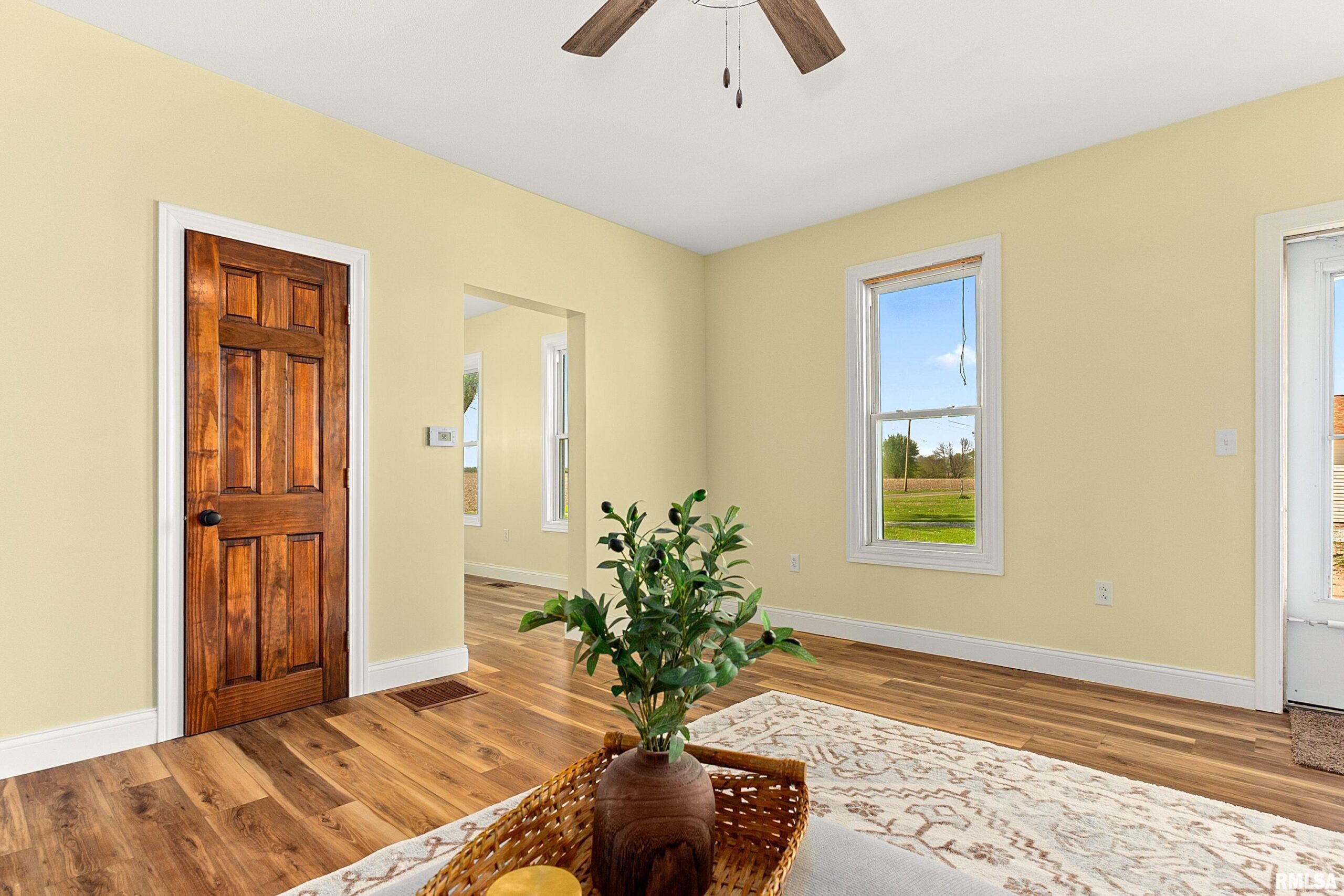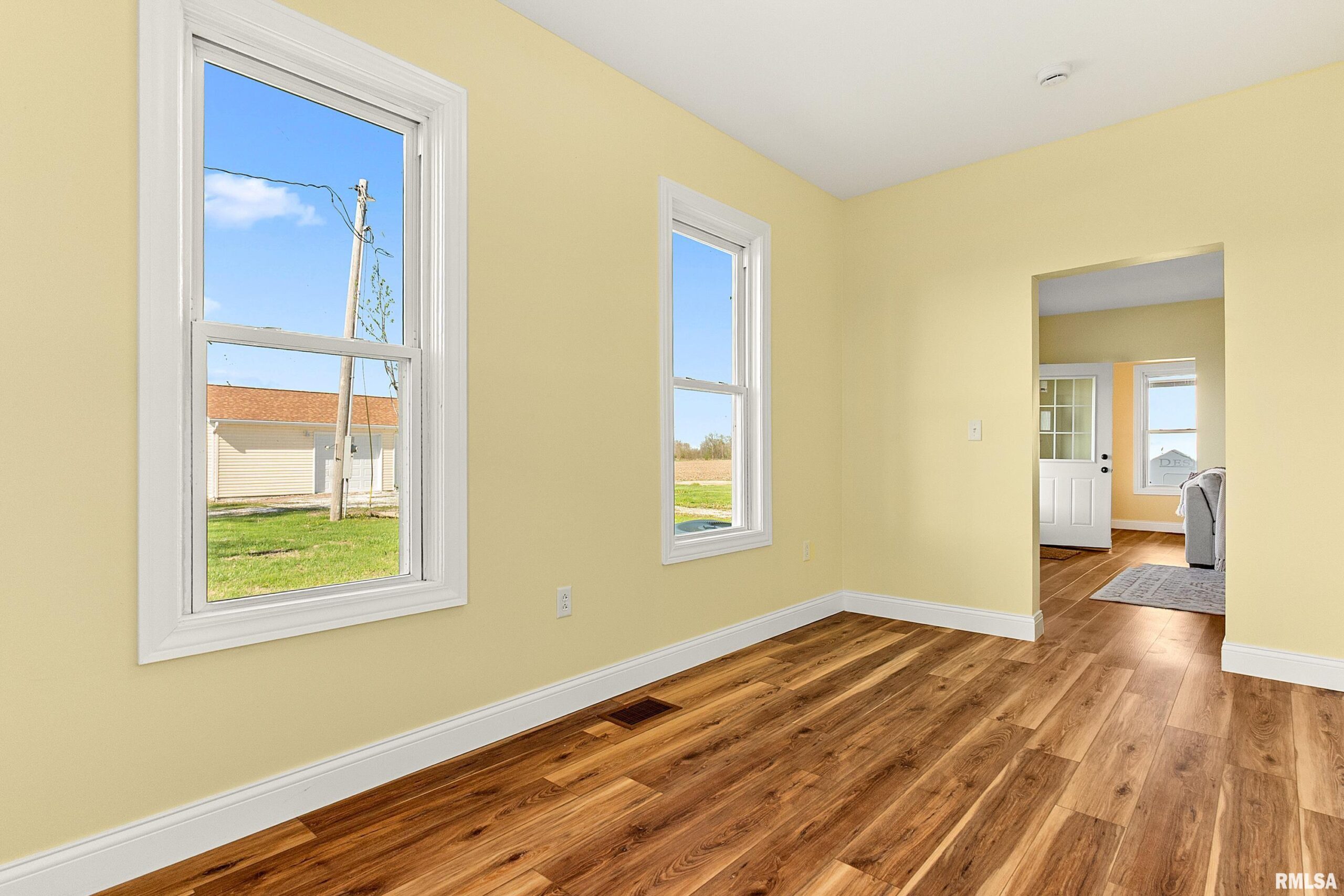 Beautifully restored 3-bedroom, 1-bath home on 10.02 scenic acres with a pond—perfect for hunting, wildlife watching, or peaceful country living. Complete renovation includes new electrical, plumbing, insulation, walls (including studs), roof, siding, and most windows. Modern kitchen with new cabinets and quartz countertops. Bathroom features original tub with new vanity and toilet. New vinyl plank flooring throughout, barn doors on bath and one bedroom, plus updated lighting and ceiling fans. Brand-new 3-car garage, new front and side entry doors, and screened doors (including laundry room). Pressure tank and well pump are 3 years old. Full basement remains from original structure, providing extra storage space. Excellent deer hunting potential (3+ per year). Paved roads in every direction make access easy. A rare turnkey rural property offering modern amenities, acreage, and natural beauty—ready for you to move in and enjoy country living at its best!