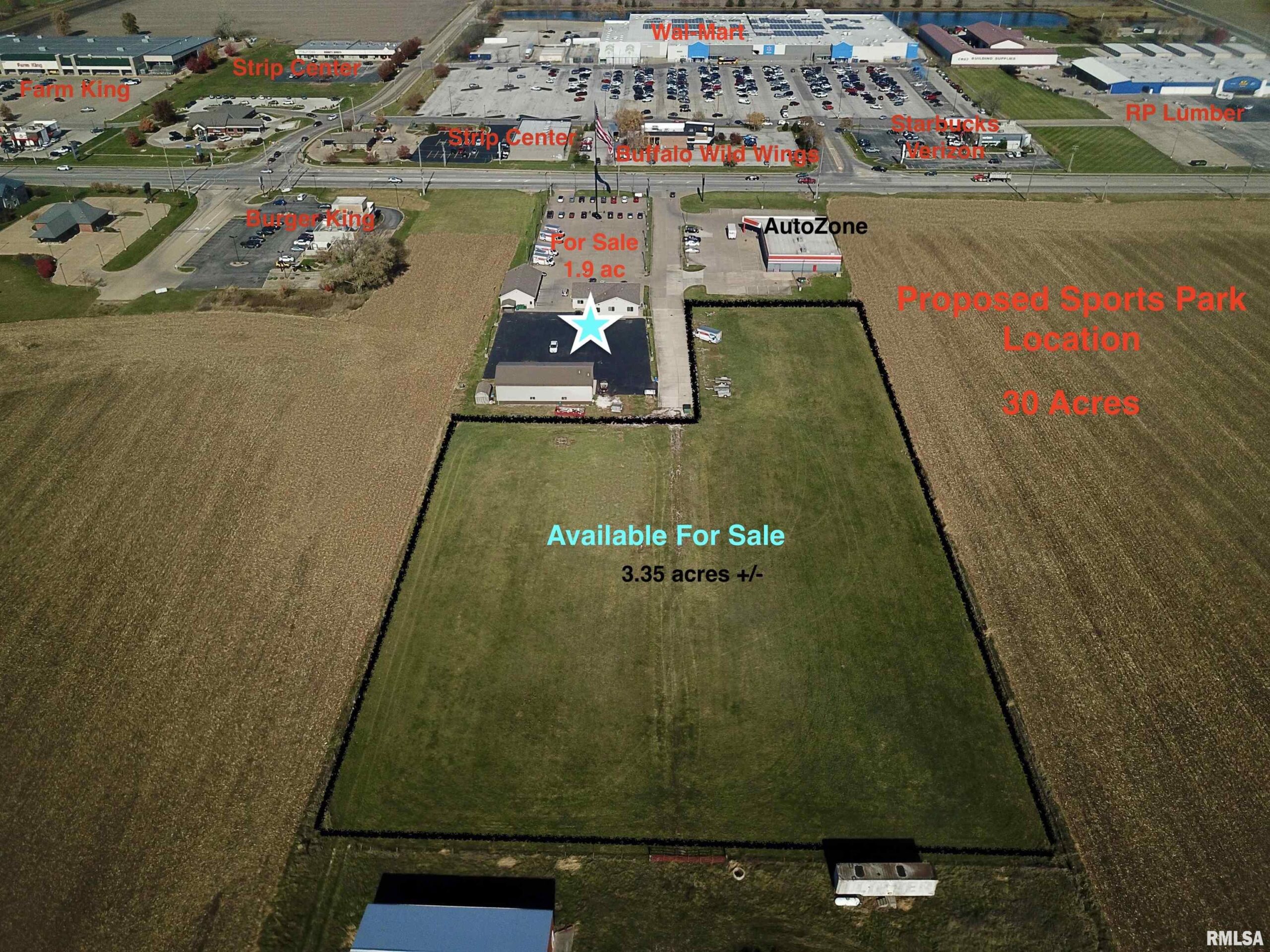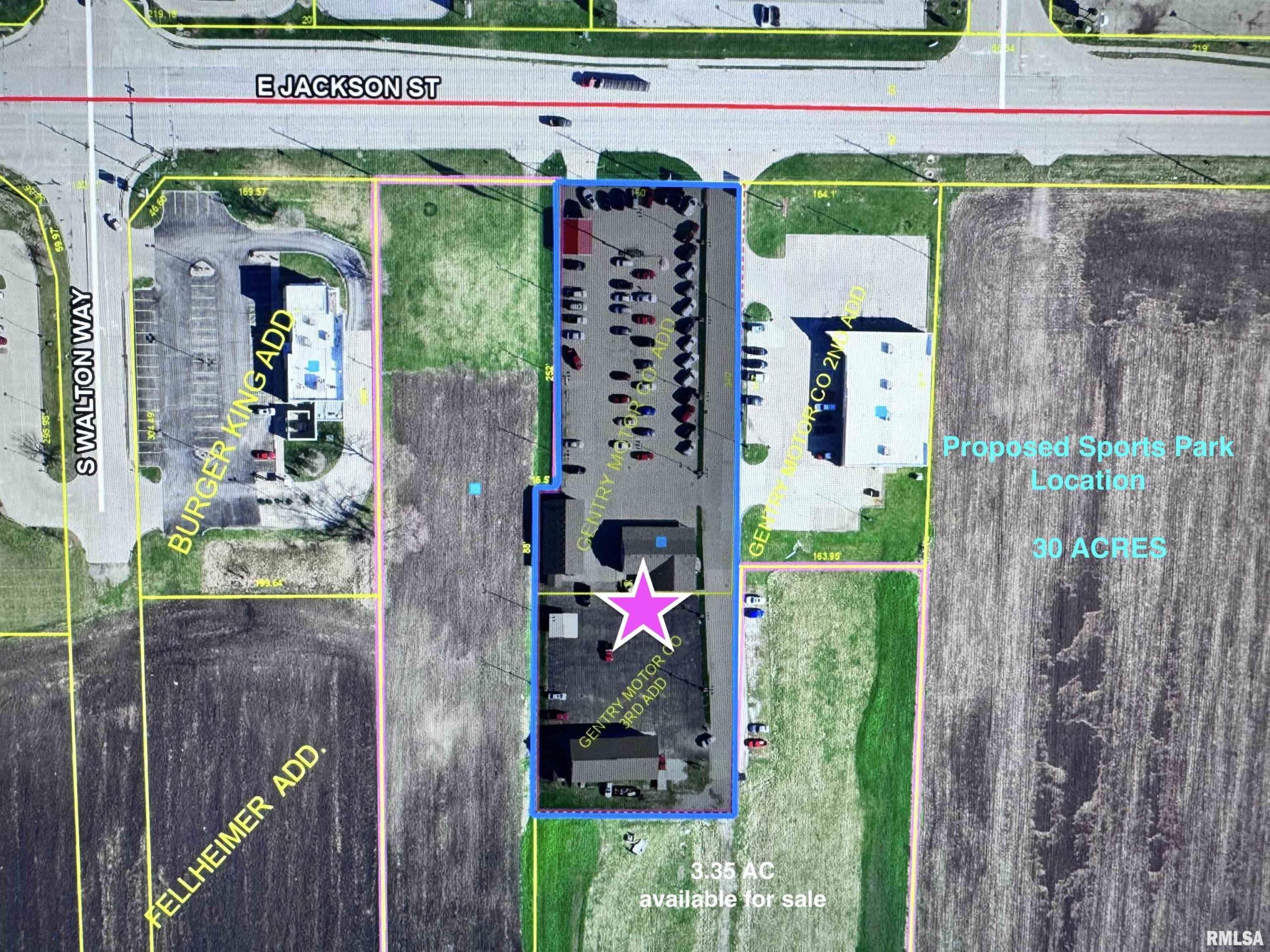 Location, Location, Location. This commercial property, located just across from Walmart and other major retail stores, is next to the proposed new SPORTS COMPLEX on 30 acres just east of this location. Once used as a car dealership, with 124’ of frontage along HWY 136/67, and 1.96 total acres. This property has lots of business potential. On the property are three buildings, one of which is an office/retail building with 2,280 sq ft, built in 1995. It currently has four office spaces, a showroom, 2 half baths, and a break room. Another building offers 1,800 sq ft and has been used as a detail shop; it features three 8x10 overhead doors, a 49x29 shop area, an office, a half bath, and 10’ ceilings. On the back side of the lot is a Morton-type building. It has 2592 sq ft, with four overhead doors, one 12x14 and the other three 12x12, a shop area that is 61x34, an office area, a half bath, and a loft area for storage. The front part of the property has a 257x115 concrete parking lot, and a blacktop parking lot on the back side. Additional acreage is also available if needed: 3.35 acres total, located behind this property and for sale, and is right west of what could be the SPORTS COMPLEX. Seller is willing to divide the property or lease part with acceptable offers.