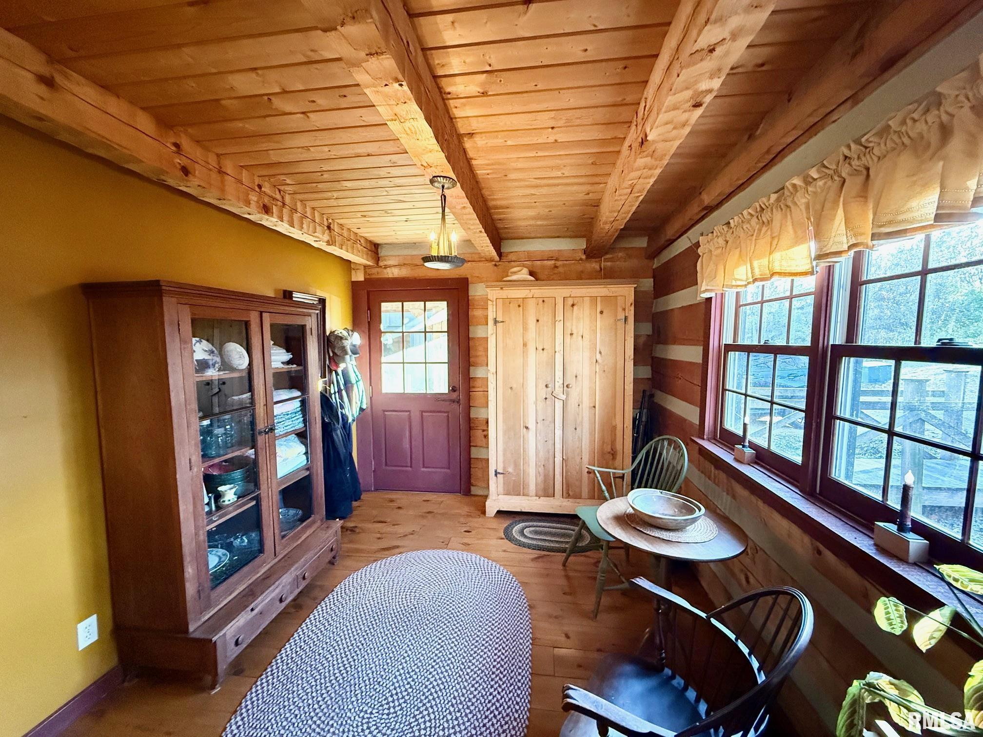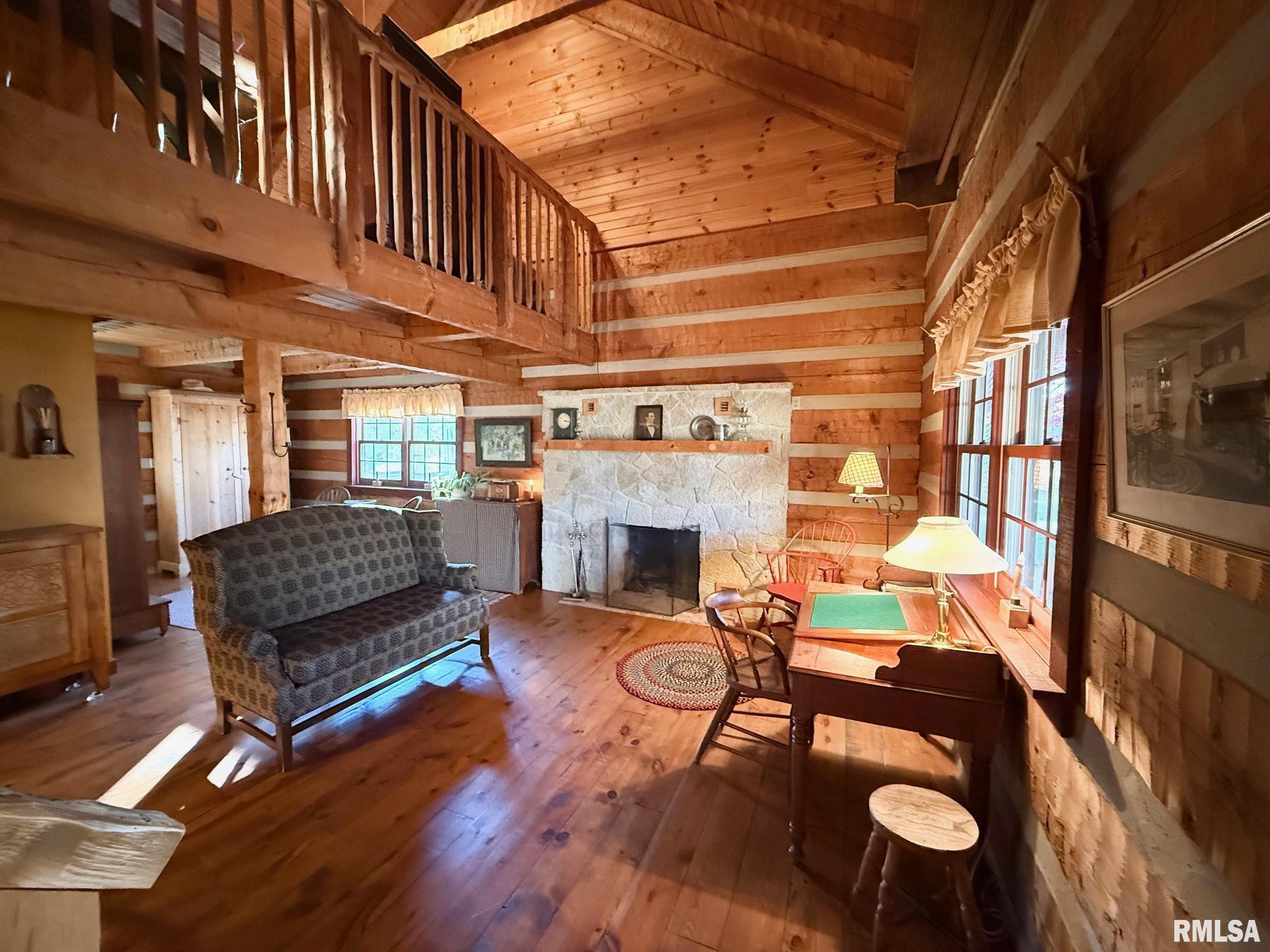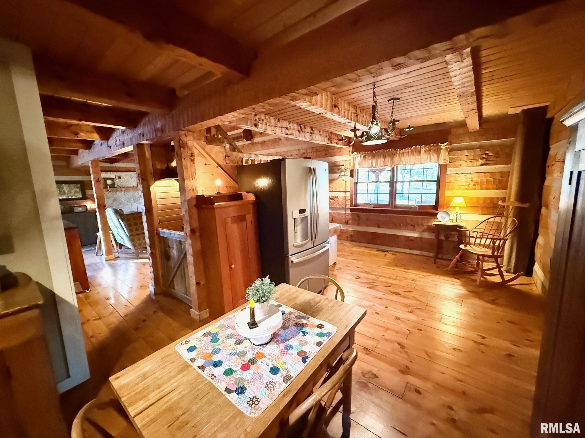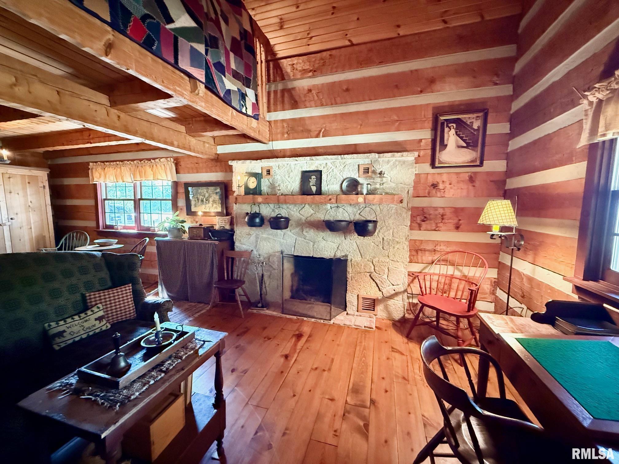 Stunning 3 bed/2.5 bath Hearthstone Log Home nestled in 2.25 Ac of mature trees! One in a million setting opportunity!! Exterior boasts natural logs w chinking, cedar shake roof, 2 covered porches & nature out your door! Inside has impeccable woodwork, solid doors & real hand carved beams. The Kitchen has cherry custom built cabinetry from Stott mill. The cypress countertops are durable & one of a kind! Liv Rm is cozy w vaulted ceilings, wood beams, focal staircase & stone FP. Upstairs is the master suite w/ newly remodeled master bath in 2019! Custom cherry vanity & mirror, Travertine flooring & walk in shower. PLUS, custom walk in closet. Bedroom 2 could be a neat upper office or nursery! Such upgraded detail throughout and it overlooks the Living Rm. At the other end, sits the Family Rm, Dining Rm & Sunroom that gives more family space! Tons of windows let the natural light in & makes for a great gathering place! The sunroom is both heated and cooled for year round enjoyment & have Amazing views, access to covered porch & cool barn scenery! The LL walk out was remodeled in 2021~new full bath, Rec room & Den space , PLUS a HUGE Bedroom 3.Property includes 3 car garage 2 up/1 down & Storage, a 20 x 38 shed w concrete floor, 26 x 36 heated / insulated shed w/concrete floor/lean to and handmade touches of barn doors, lanterns & weathervane. Such custom finishes and much love went into this stunning home w/ one of a kind setting ~ see it TODAY!!