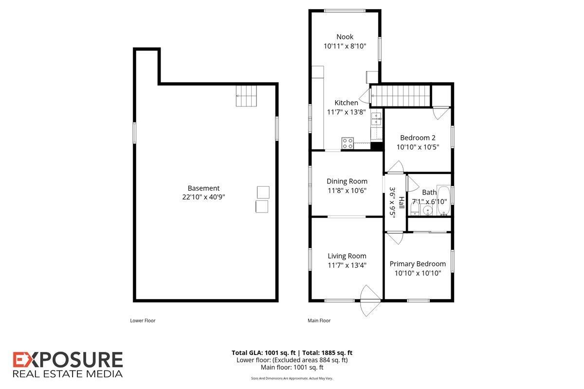 Room type Area Level Length Width Main Level 1001 Upper Level Lower Level Basement Additional Level Bedroom 1 Main 10.1 10.1 Bedroom 2 Main 10.1 10.5 Living Room Main 11.7 13.4 Dining Room Main 11.8 10.6 Dining Room Main 10.11 8.1 Kitchen Main 11.7 13.8 Third Floor
