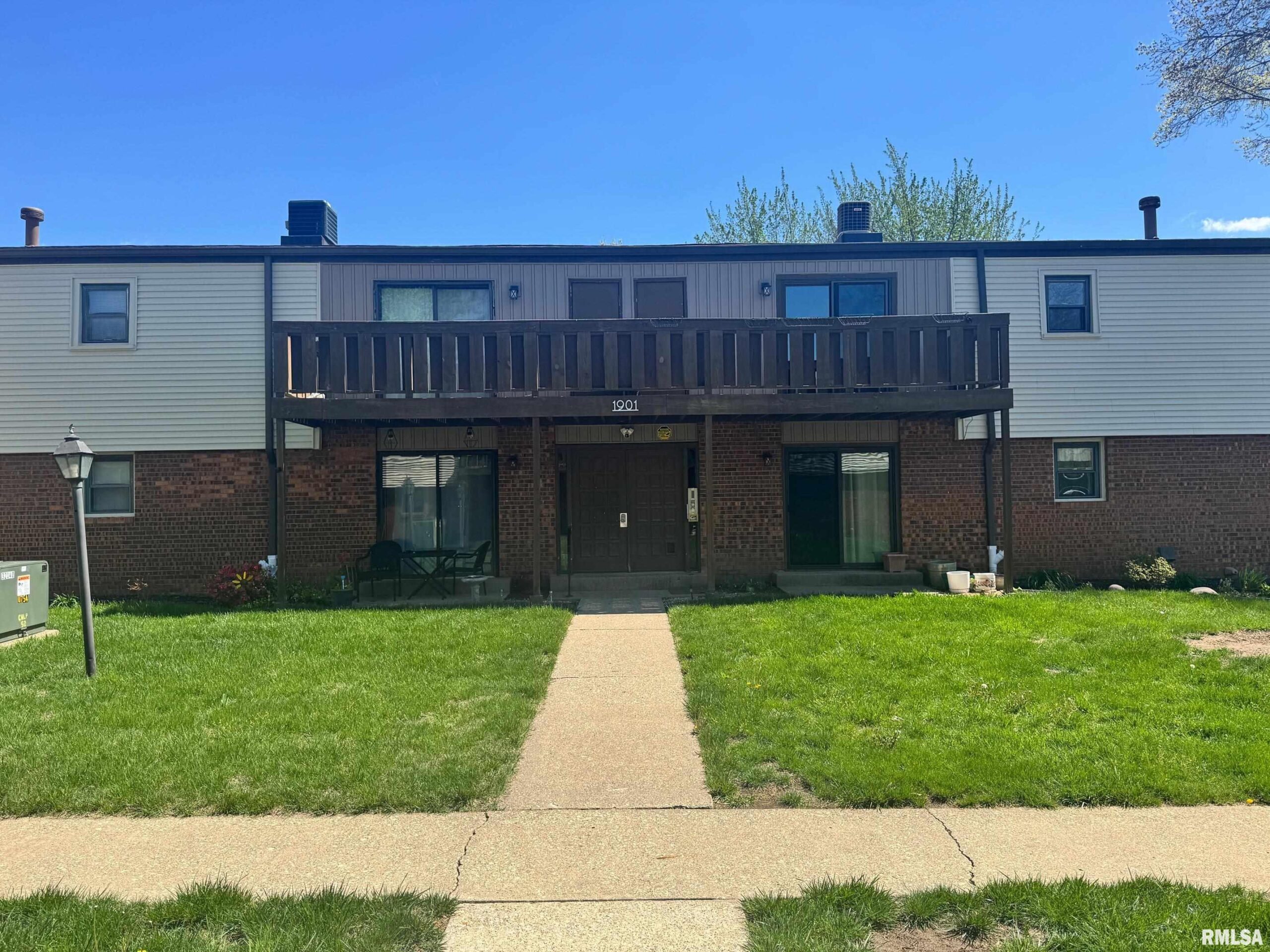 Enjoy life and not yard maintenance in this spacious 2 bed/2 bath condo. Recent updates inside the condo include: all new laminate flooring throughout, freshly painted a neutral color and plumbing, vanity and toilets in bathroom. Lots of cabinet space with eat in area in kitchen. Kitchen has cherry hardwood floors. Sliding glass doors to deck overlooking commons area with storage shed. Building updates include: new roof, siding, hot water heater, washer and dryers in laundry room ($10/mo for unlimited use), building supports, drainage system, landscaping and security system. Condo includes 1 parking space in garage and a storage unit. Average utilities $77/CWLP and $62/Ameren. This is a must see!