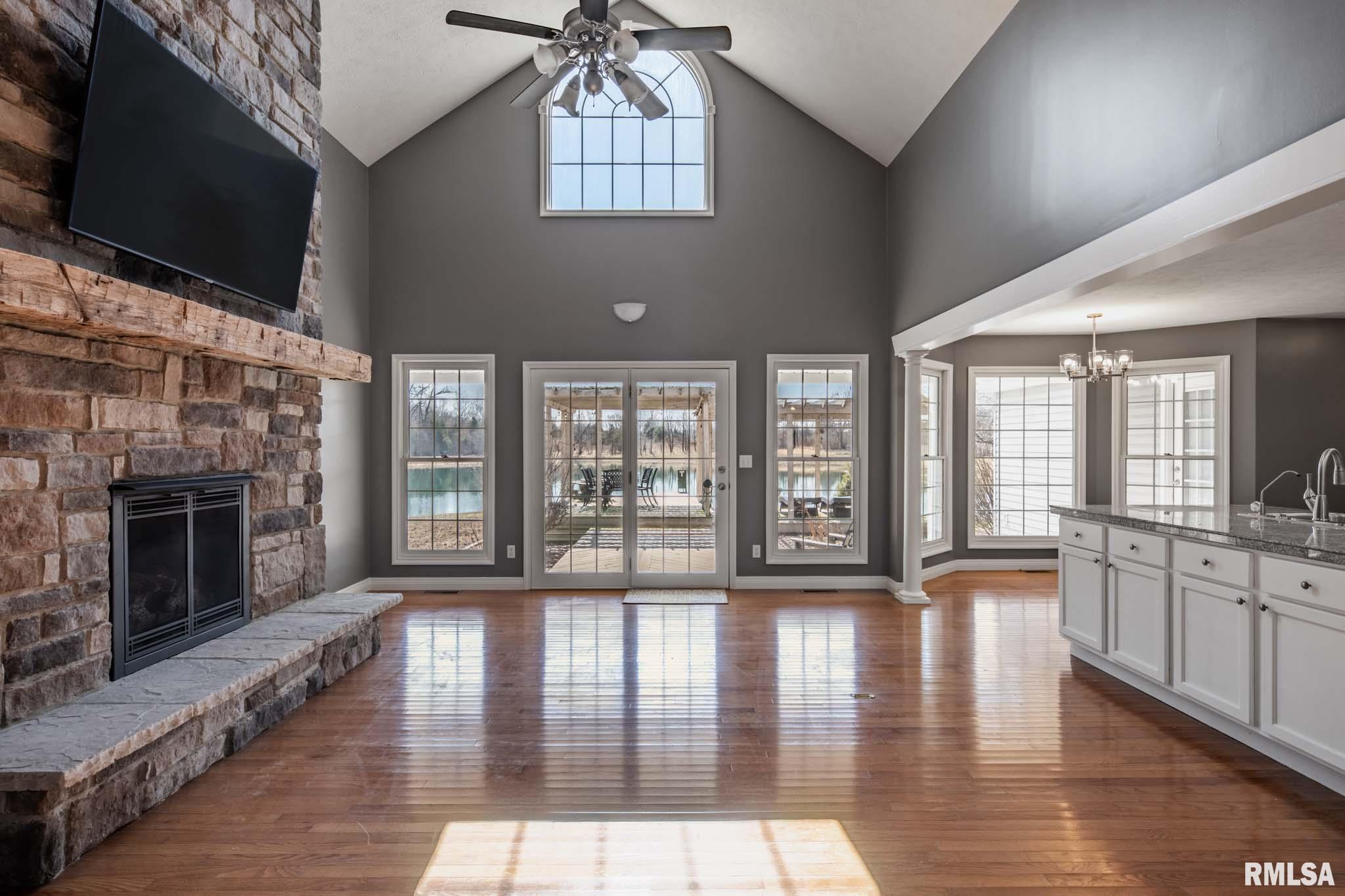 Experience peaceful country living on 11+ acres in Crab Orchard. This spacious home located on a quiet road offers an open-concept layout with a split-bedroom design, including 3 bedrooms and 2 full bathrooms. The living room and foyer feature impressive cathedral ceilings and a cozy gas fireplace. The kitchen is equipped with stainless steel appliances and granite countertops, perfect for everyday living or entertaining. The primary suite includes a custom closet, vanity/makeup area. Solid oak hardwood floors run through most of the home (excluding bathrooms). Lots of natural lighting and a formal dining room. Enjoy the outdoors from the covered front porch, covered patio, or the multi-level deck with pergola, ideal for gatherings and relaxation. The property also includes a two-car attached garage. The land is just as impressive, highlighted by a 3-acre stocked pond filled with crappie, bluegill, bass, and catfish, complete with a dock and walkway. Two acres are wooded, offering additional privacy and natural beauty. A 30x50 pole barn adds valuable space for storage or projects, featuring a concrete floor, insulated ceiling, electricity, water, a two-barrel wood heater, and a 10x10 half bath.