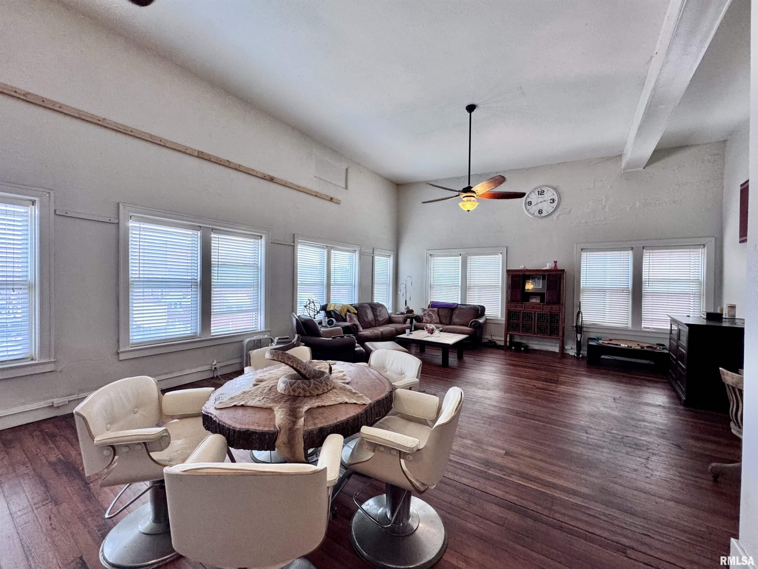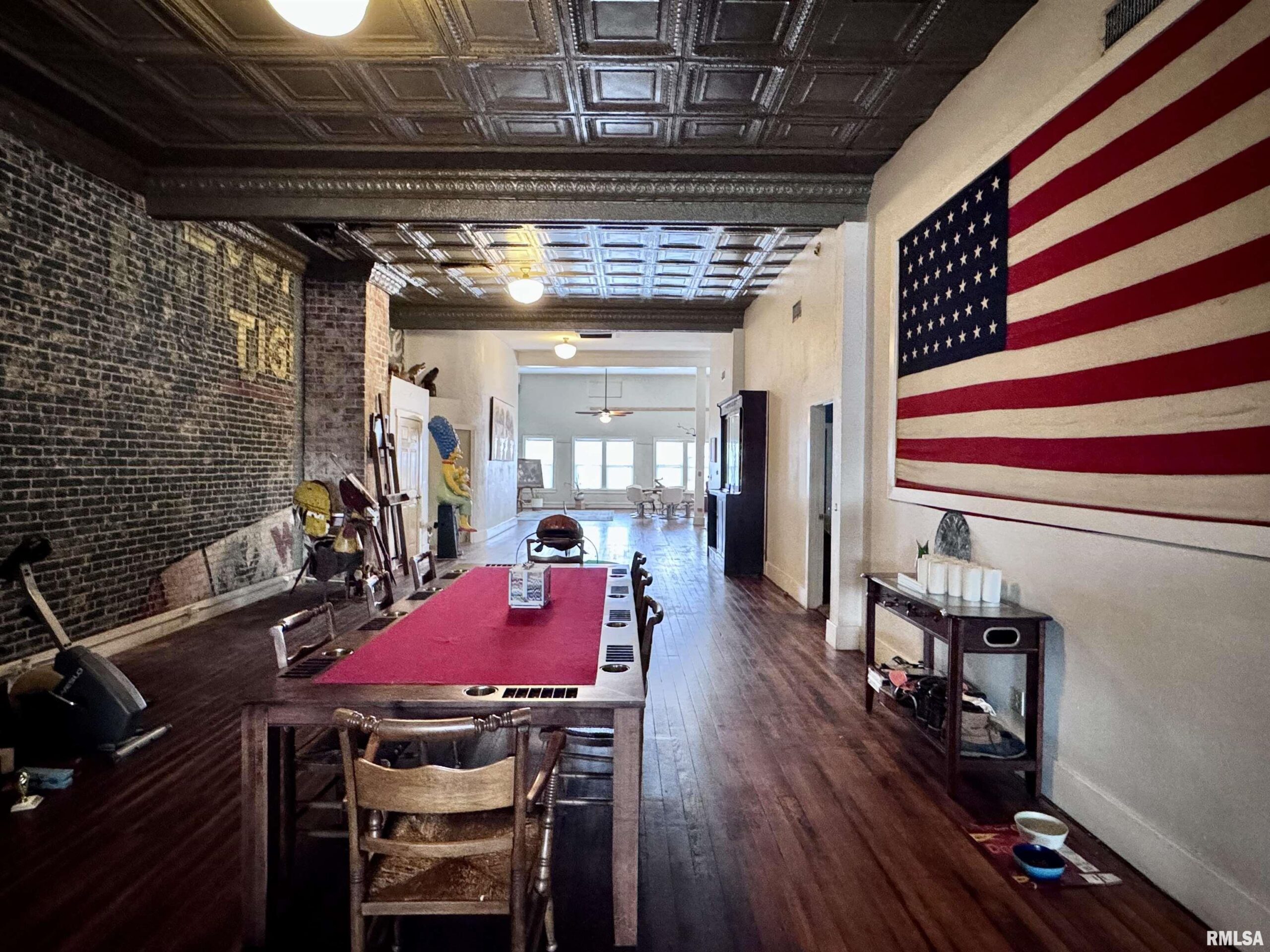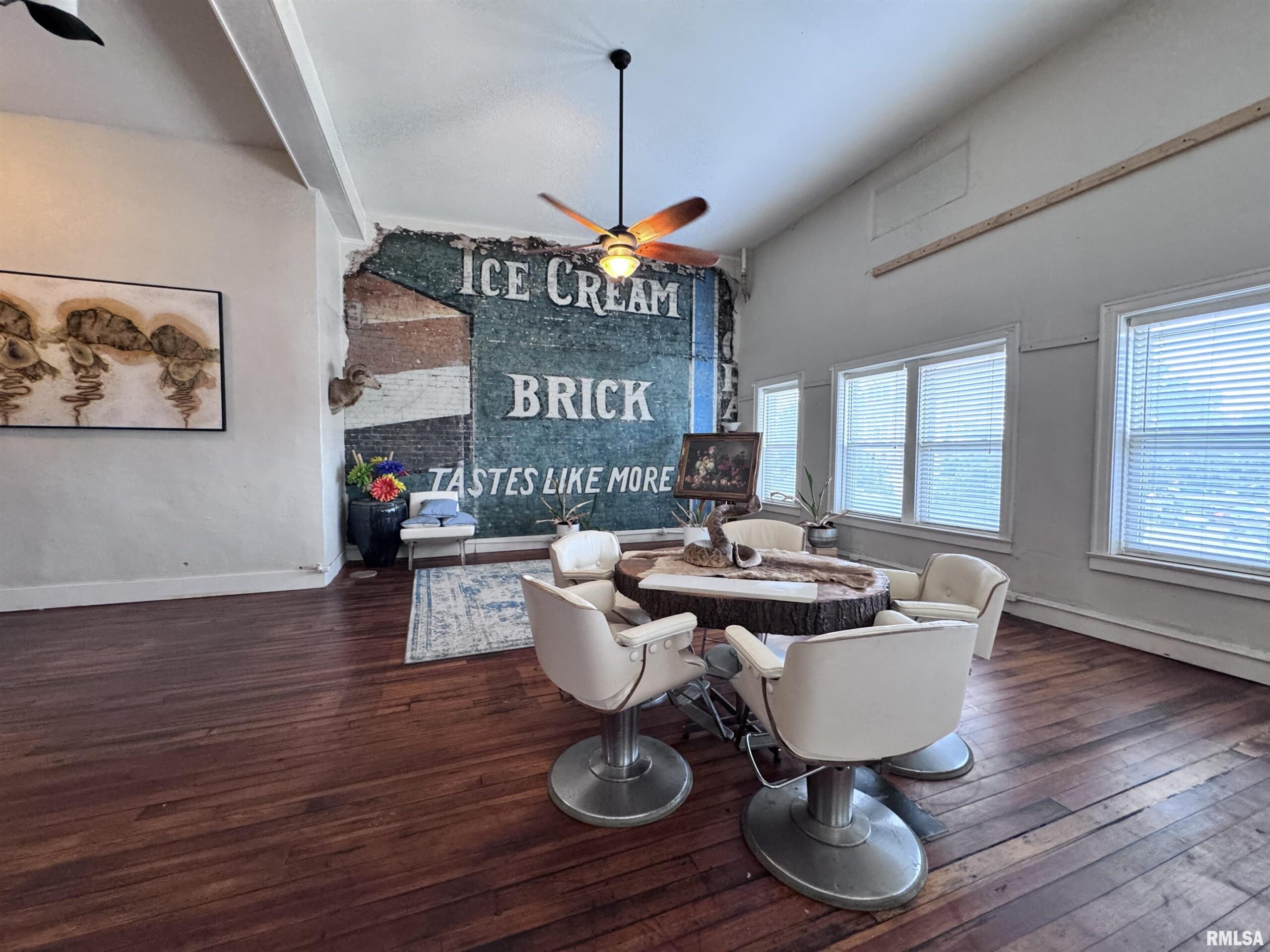 This commercial building, located on Macomb’s Historic Courthouse Square, has lots of space! The main level of this building has been used as a restaurant/bar in years past, with just over 4000 sq ft and two mezzanine levels for added space. The main level has potential for office expansion, retail, bar/gaming, or that restaurant business you have been dreaming of. The third level of the building offers a loft apartment with large open living areas, lots of windows with views of the downtown, tall ceilings, original paint advertising on the brick walls, three bedrooms, and two baths. This space also has just over 4000 sq ft, a great space for entertaining family, friends, or private parties.