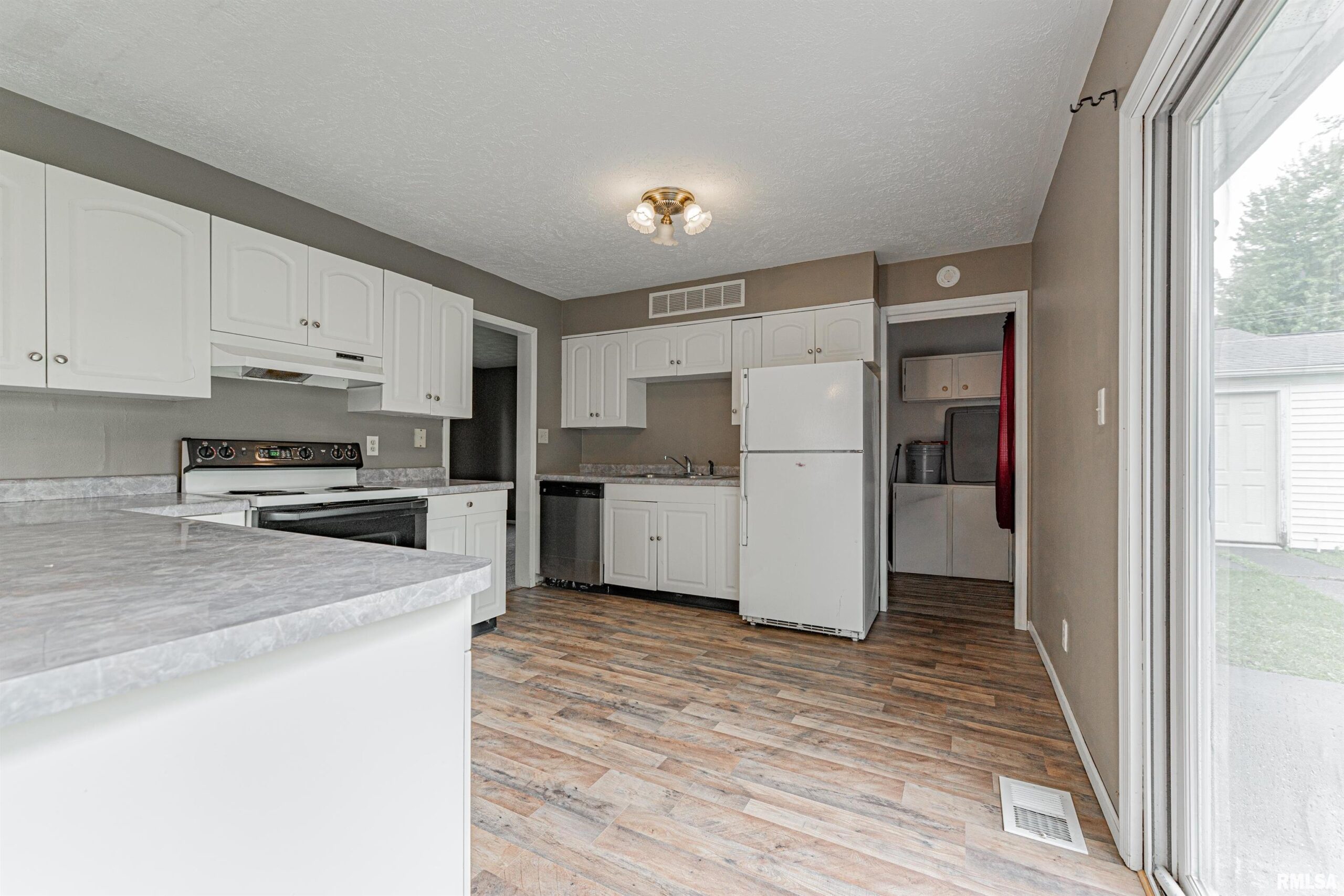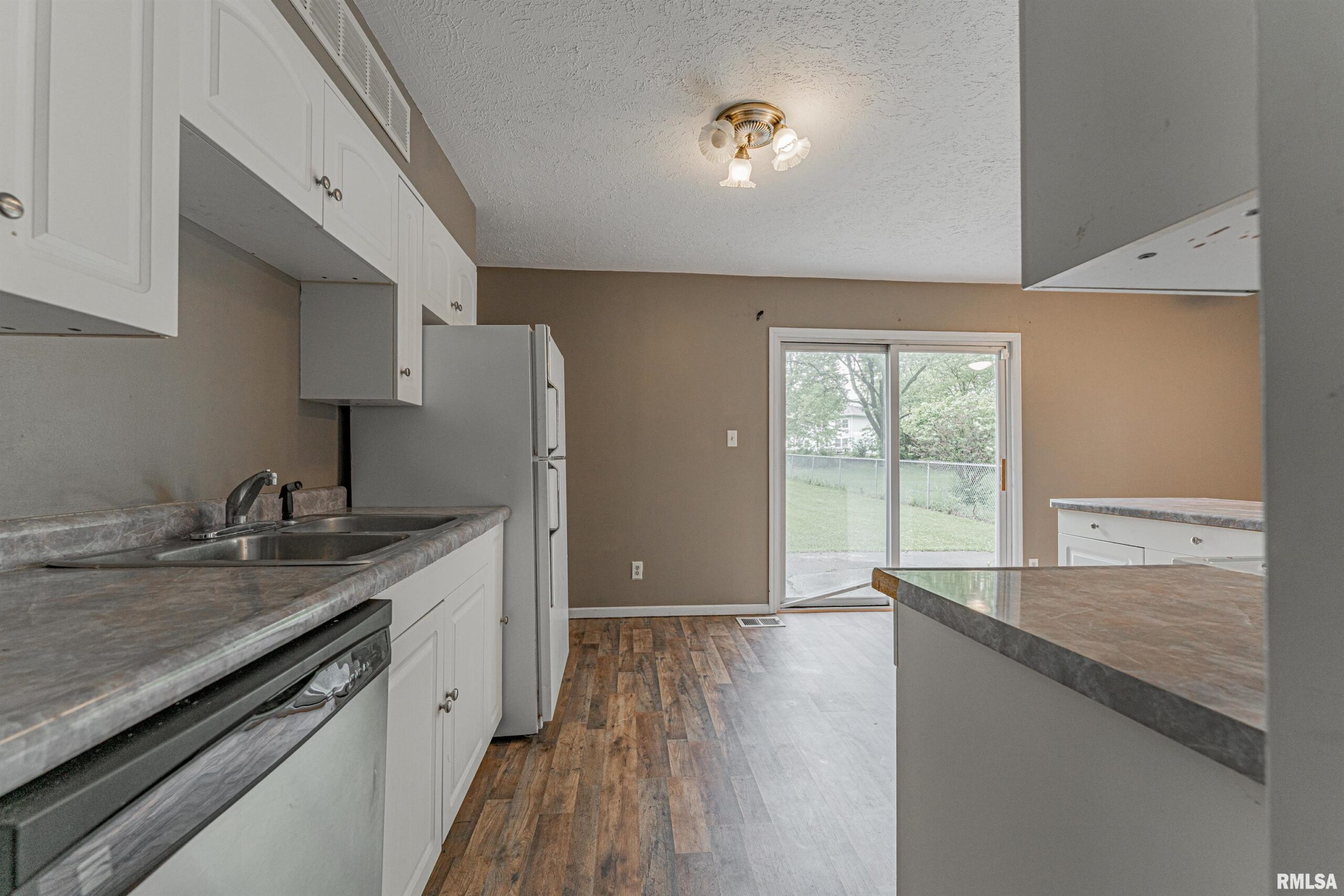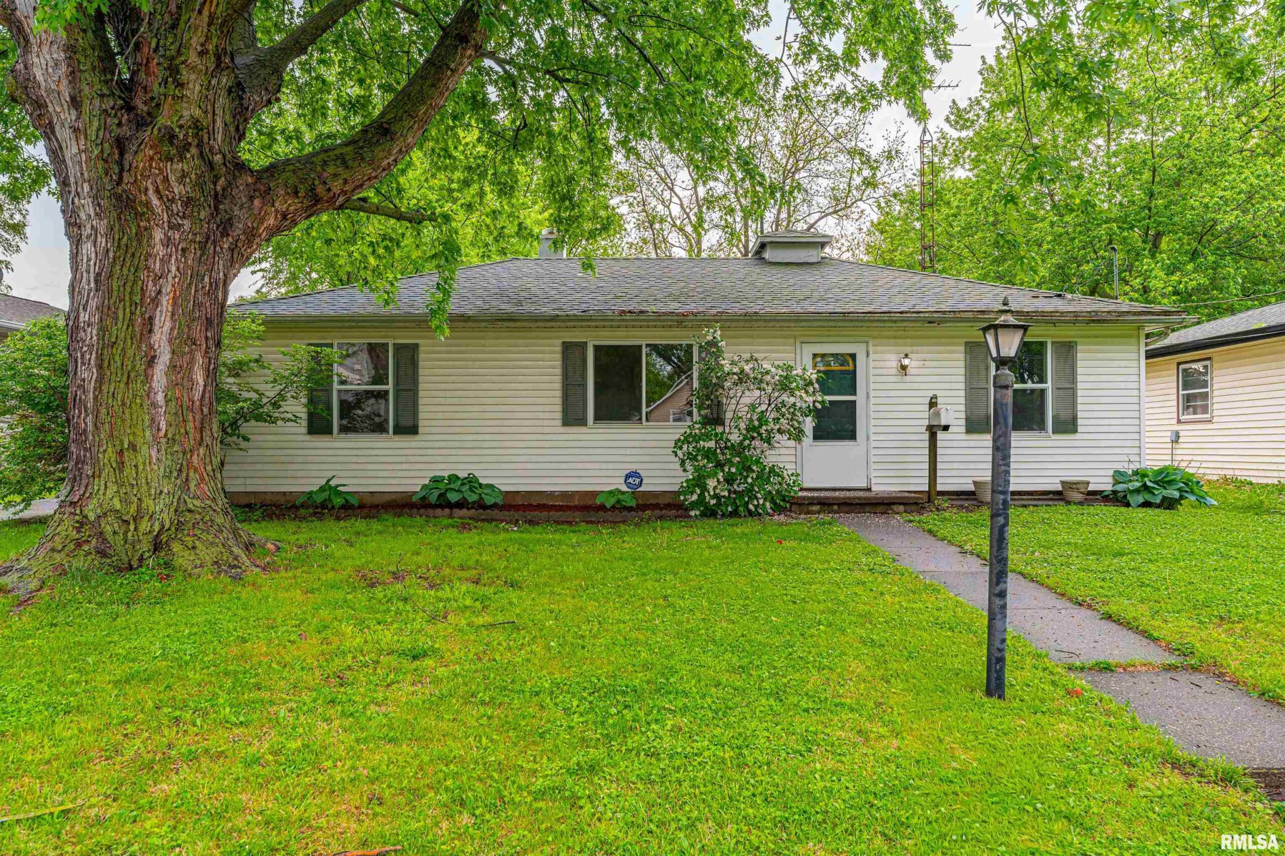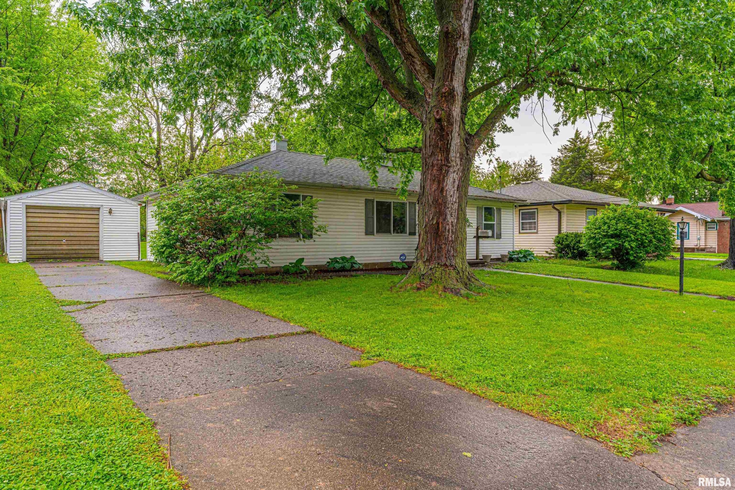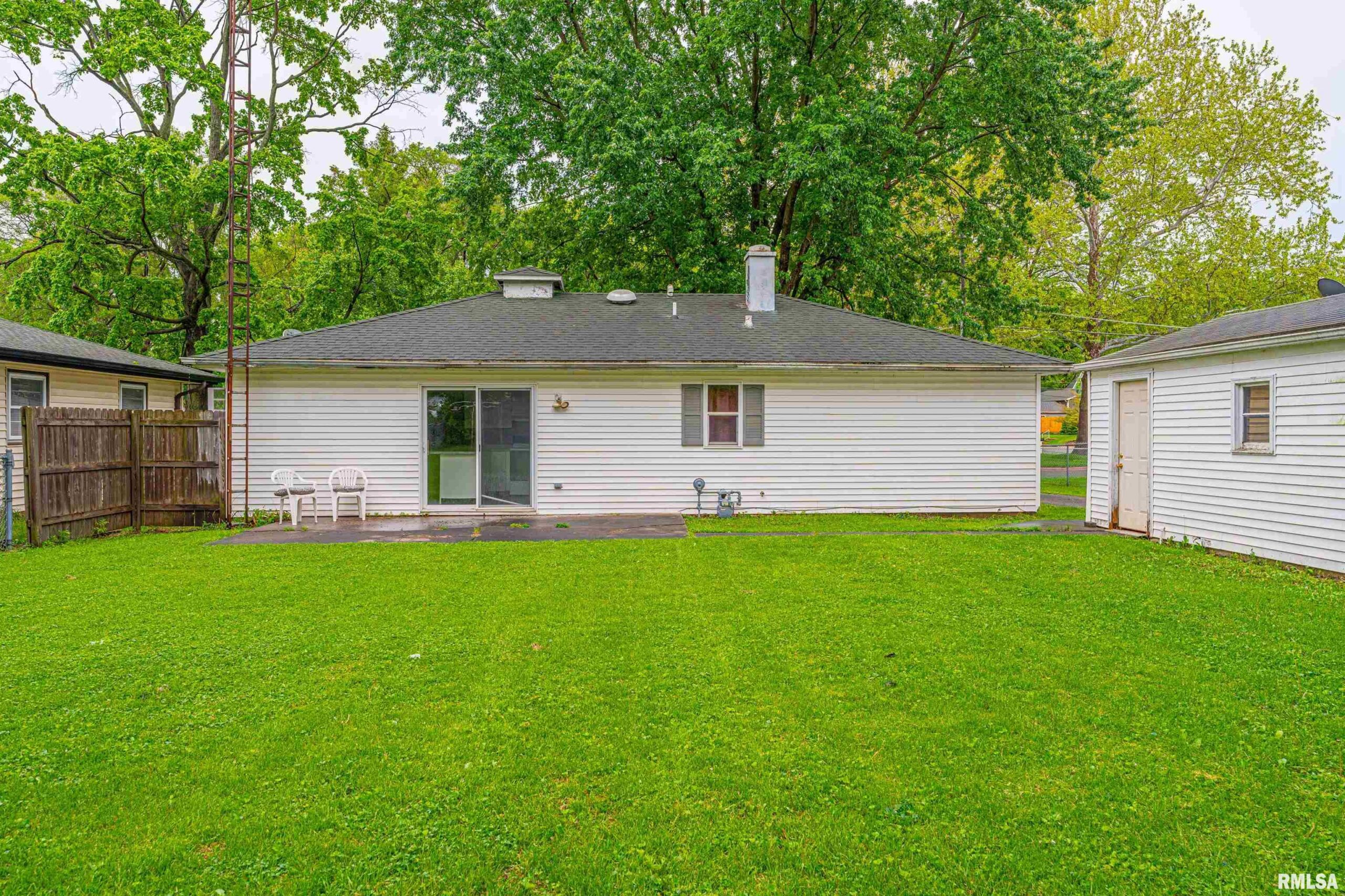 Undeniably practical conveniently situated 3-bedroom vinyl sided ranch style home situated on a large mostly fenced 65X168 lot! The interior offers a front facing living room, equipped kitchen/dining concept with a breakfast bar, rear exterior access point, and an adjacent laundry/mechanical room, full hall bath, and three comfortably sized bedrooms (one bedroom situated on one side of home -- the other two situated on opposite side of home). Property also features vinyl replacement windows, fresh floor coverings and paint, rear concrete patio area, in addition to a detached one car garage. Cute and turnkey move-in ready, this residential dwelling awaits new ownership!