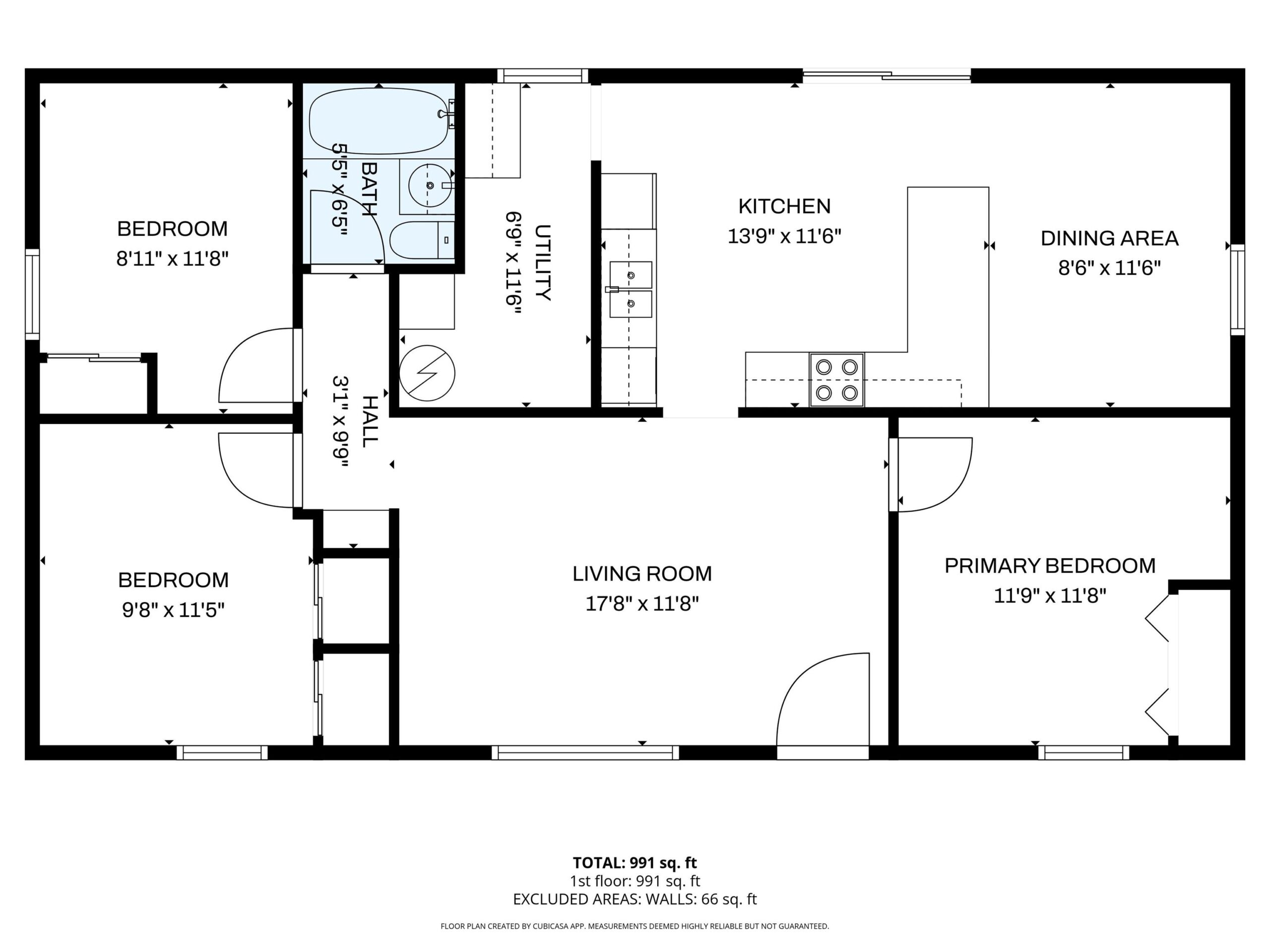 - Area: 991 sq ft