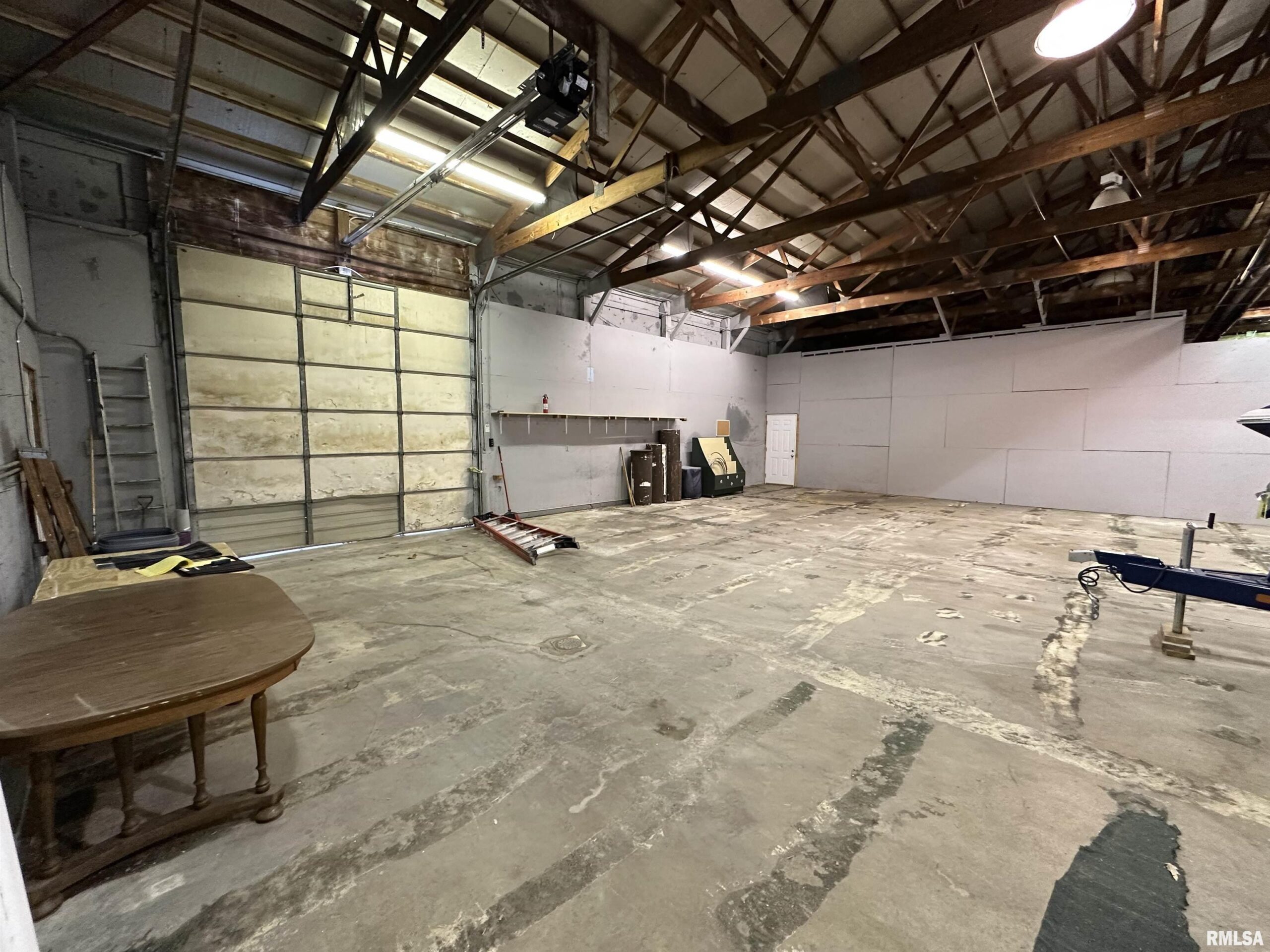 This open warehouse space features a 60’ L x 50’ W clear-span layout with a 12’ x 12’ drive-in overhead door and approximately 14’ of clear height to the bottom of the wood trusses. The space includes a floor drain, making it ideal for vehicle or boat storage. Tenants are responsible for their own electrical service and have access to shared common-area restrooms. The site is located near the intersection of E. Walnut Street and N. Main Street, just east of the railroad tracks. It is situated in a busy commercial area with nearby medical facilities, community banks, and a variety of retail, restaurant, and service businesses.