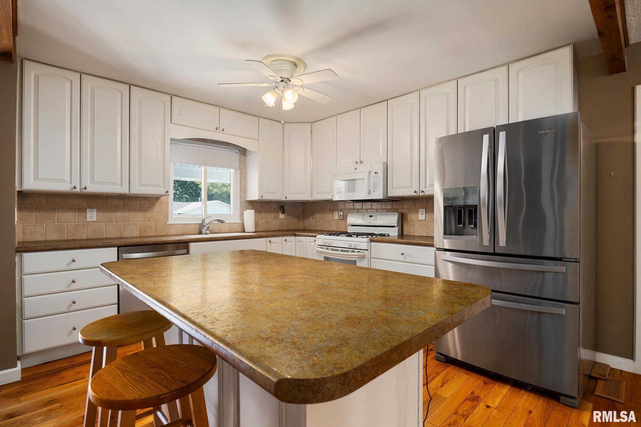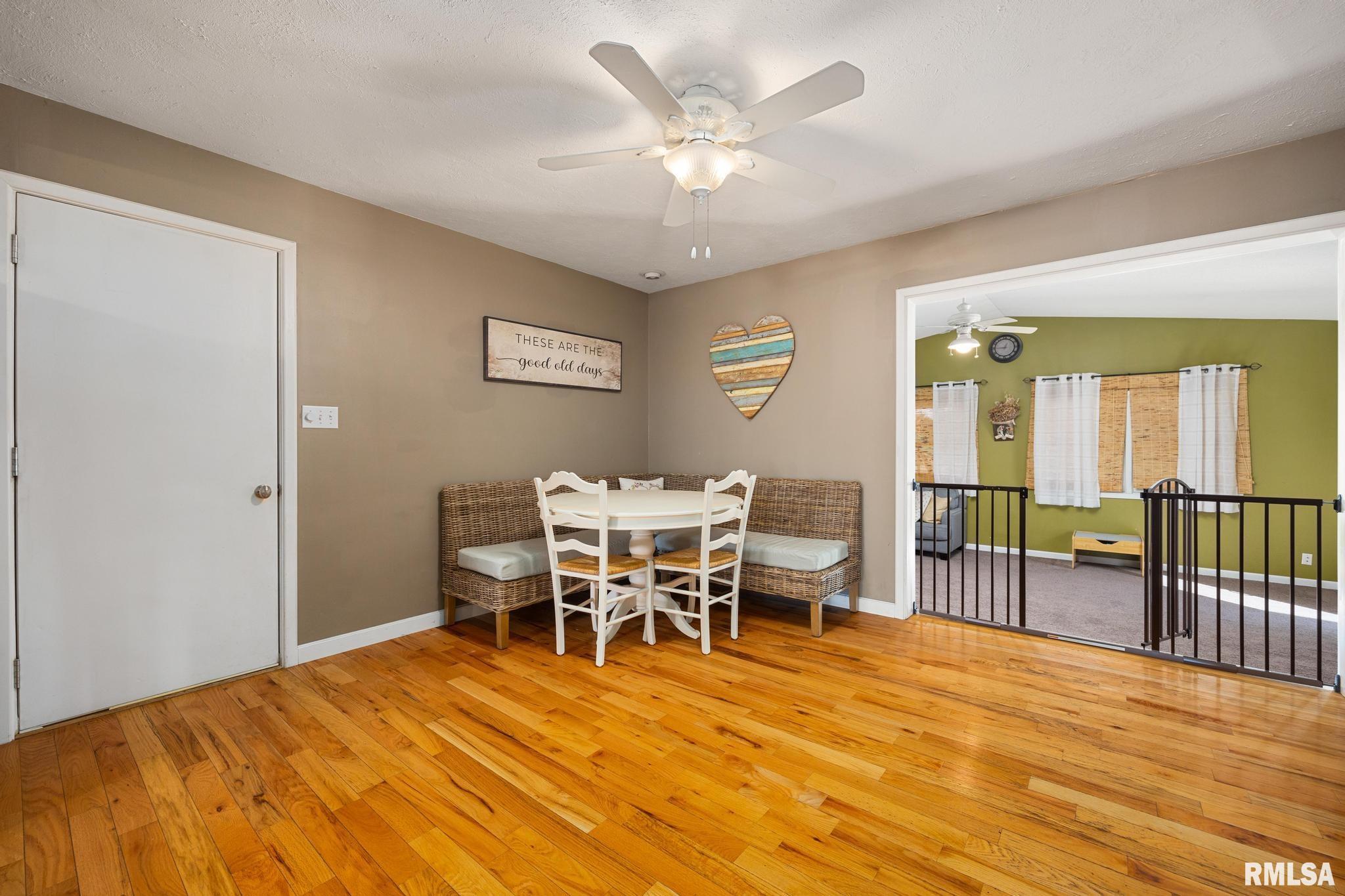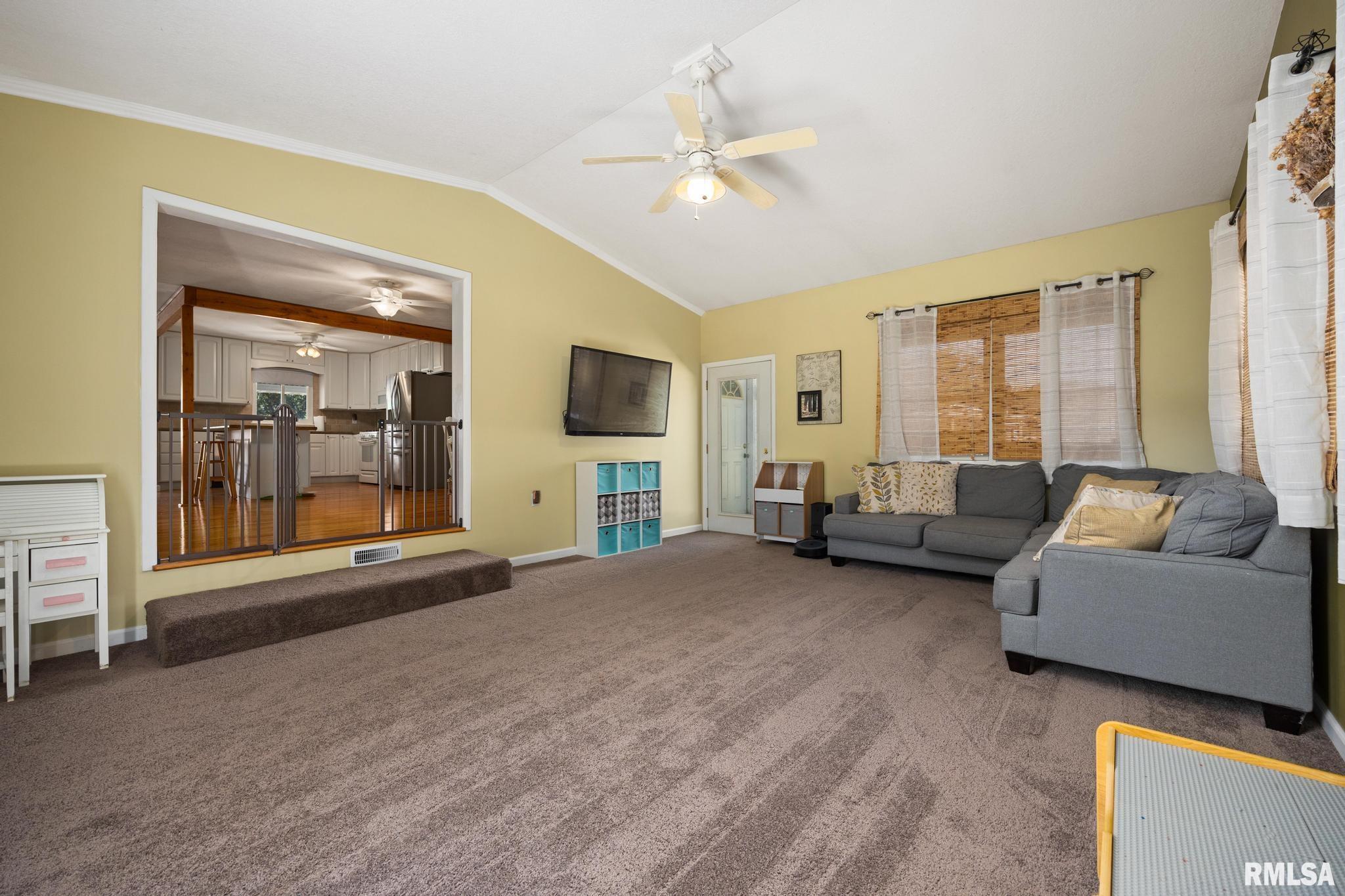 Beautiful Ranch in the Heart of Peoria! This well-maintained home offers 3 Bedrooms (Possible 4th), 2.5 baths, and a bright, open-concept kitchen with a breakfast-bar island, perfect for cooking and gathering. A spacious vaulted-ceiling family room addition at the back of the home features sliding doors that lead to a patio and fenced backyard with a playground—ideal for both relaxing and entertaining. Recent updates bring peace of mind and modern style: basement flooring, dewatering system, sump pump, water heater (2020), garbage disposal, water softener, remodeled baths, stylish shiplap accents, new front porch, and more. The thoughtful layout, updates, and move-in-ready finishes make this ranch a true gem in Peoria! Dunlap School District.