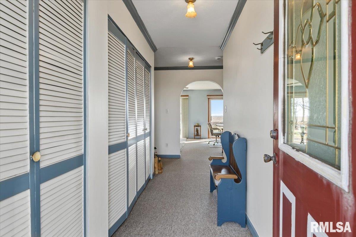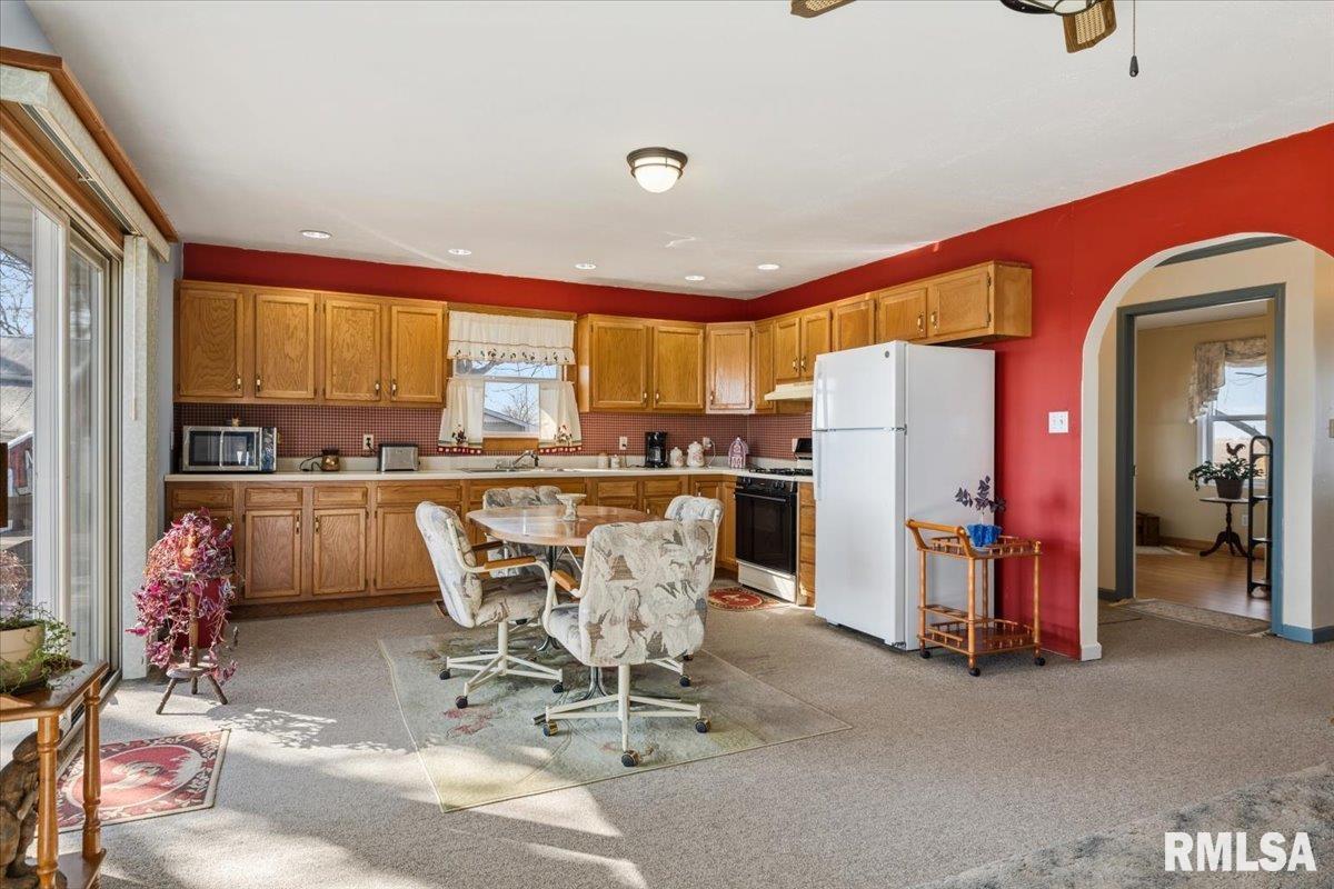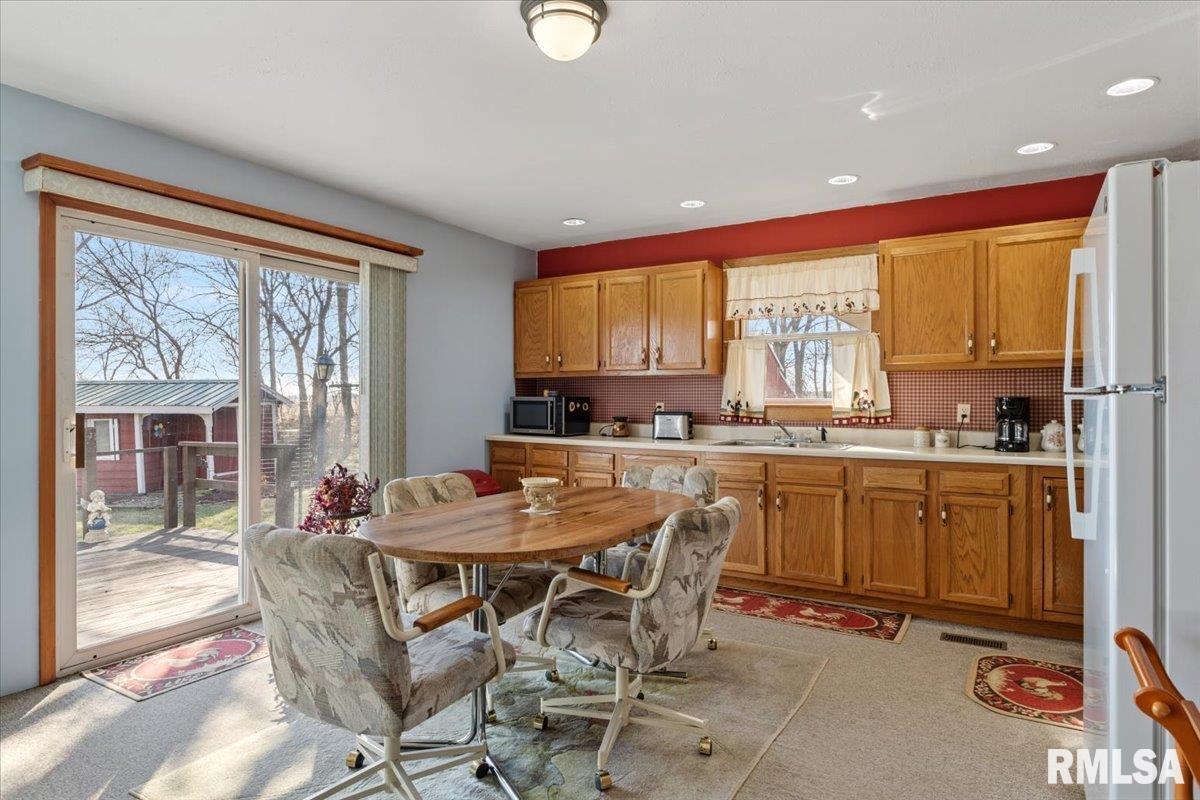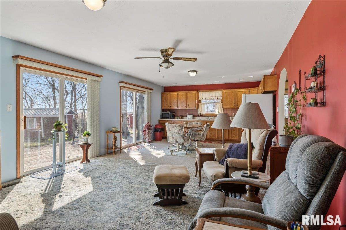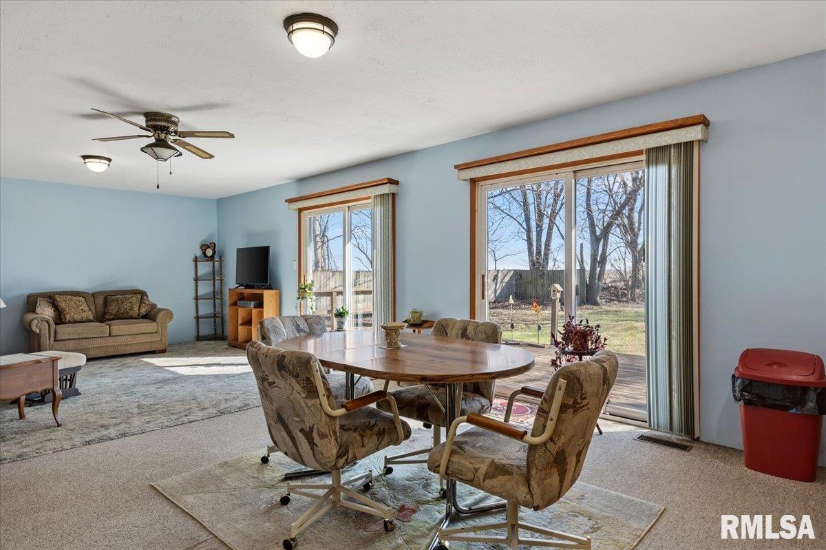 Sitting on 2.1 acres across 2 parcels, this rural homestead offers space, charm & endless potential in a prime location between Greenview & Springfield. Find a delightful 3BR ranch with over 1,400 sq ft of living space in an overly practical layout that's been clearly cared for with pride. A spacious living room welcomes you inside where charming arched doorways create character and flow seamlessly into the eat-in kitchen. Dual sliding doors step out to the deck, extending everyday living & entertaining space outdoors while overlooking gorgeous countryside views. 3 generous bedrooms are served by a full bathroom offering a lovely built-in vanity area. Major mechanical upgrades include a furnace new in 2024, A/C replaced in 2022, plus the added comfort of a water softener & whole-home generator leave room for you to show off your own style in any cosmetic improvements deemed necessary. Outside, the rest of this property shines behind a cute circle drive and attractive rural setting complemented by multiple outbuildings. This includes a huge barn (sold as-is), storage shed & an impressive 1,200 sq ft propane-heated garage that offers a fantastic recr area with potential use for hobbies, workshop space or storage. With scenic surroundings in every direction and plenty of room to grow, this Menard County property delivers country living with sound mechanicals & the convenience of close proximity to nearby communities.