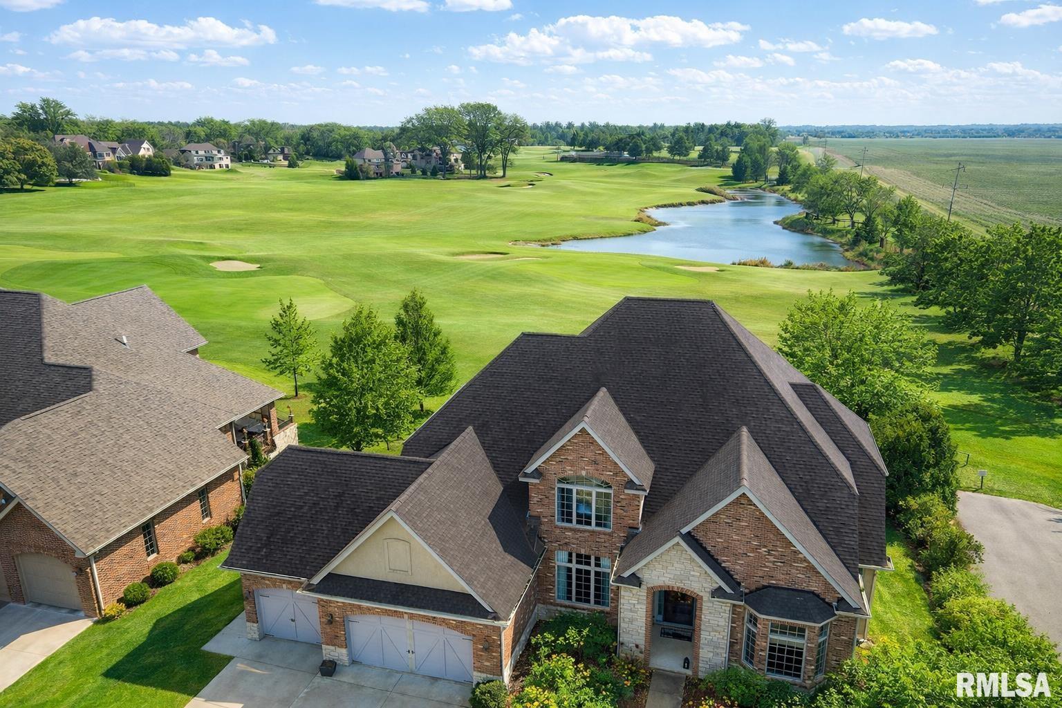 Coming Soon-March 13! Tucked within an exclusive gated enclave, this remarkable French Country estate offers rare privacy and sweeping golf course views that feel like your own personal fairway. Designed to impress yet crafted for comfortable living, this 4-bedroom masterpiece blends timeless architecture with refined detail. A soaring two-story south facing great room showcases a breathtaking 16-foot wall of windows, filling the home with natural light and framing picturesque surroundings. The chef’s kitchen is both elegant and functional, perfect for entertaining or everyday enjoyment. The main-level primary suite is a serene retreat, complete with a sitting area and a spa-inspired bath designed for relaxation. Upstairs, three spacious bedroom suites provide comfort and privacy for family or guests, as well as access to full baths for all three bedrooms.Throughout the home, you’ll find artisan columns, graceful arched openings, and carefully curated finishes that elevate every space. With the additional wood flooring that has been added, every bedroom has beautiful wood floors, as well as the majority of the finished basement. The beautifully finished lower level offers abundant south-facing daylight windows, a generous family room, recreation area, full bath, custom bar, and an impressive home theater with stadium seating and included equipment—ideal for unforgettable movie nights. A truly exceptional property where luxury, leisure, and lifestyle come together seamlessly.