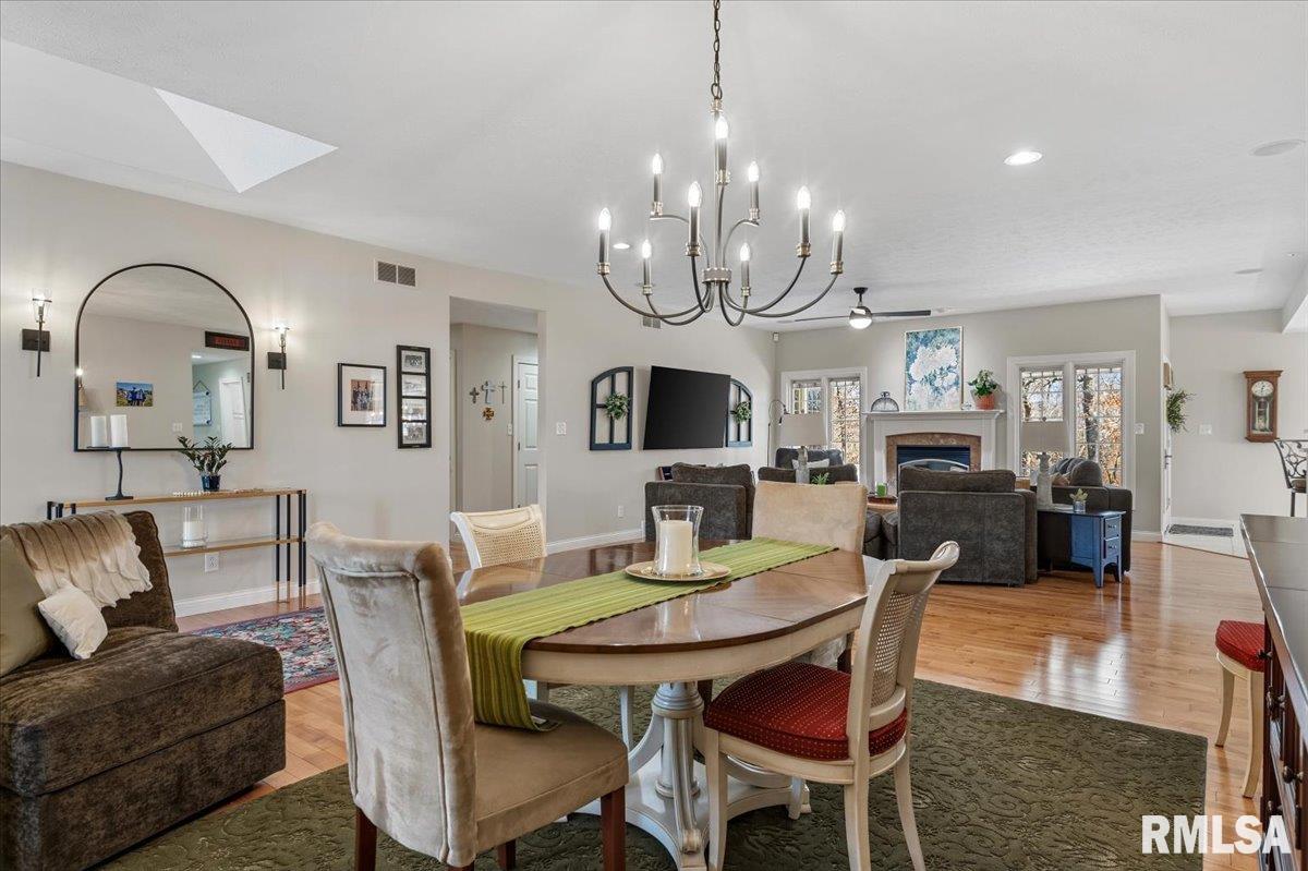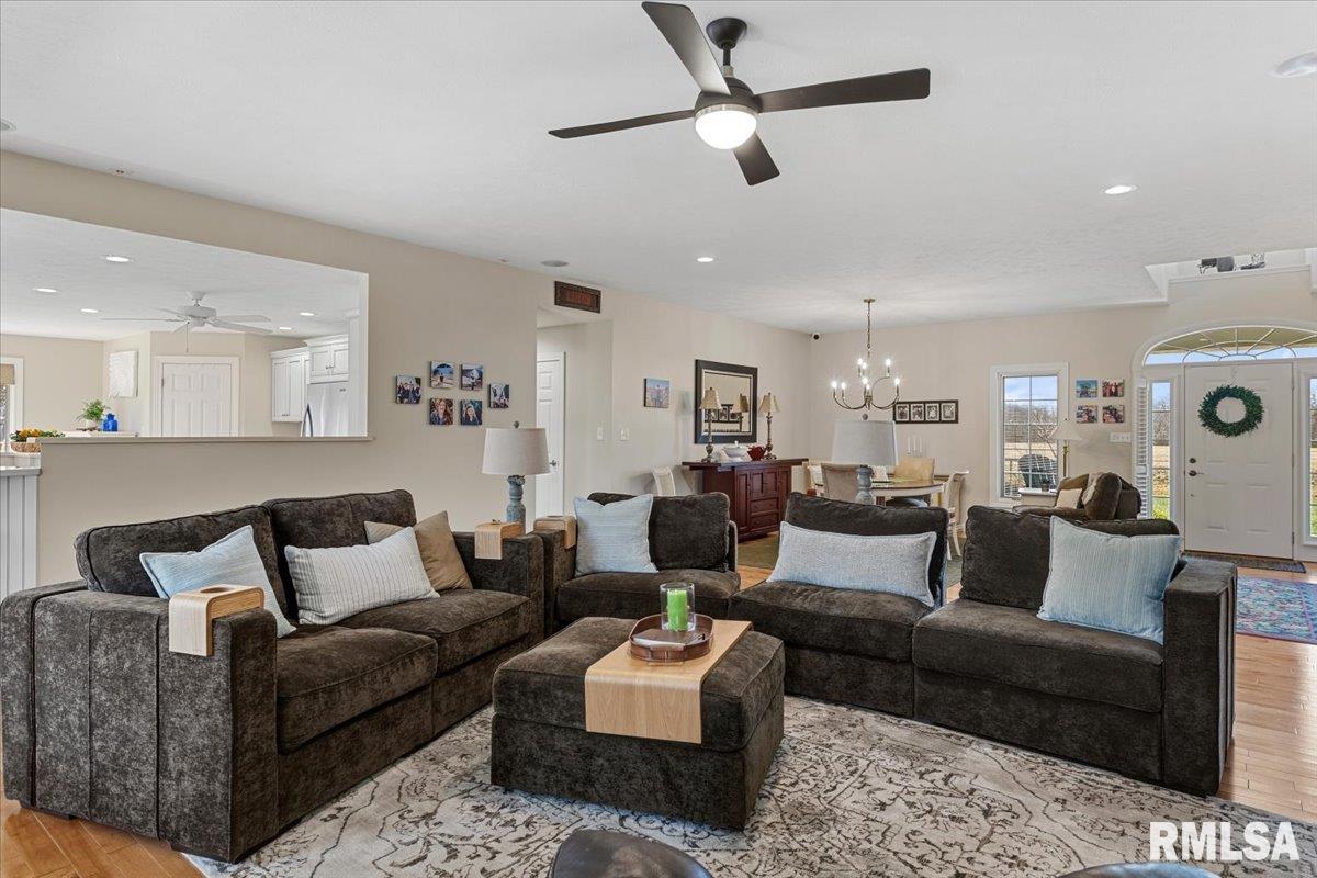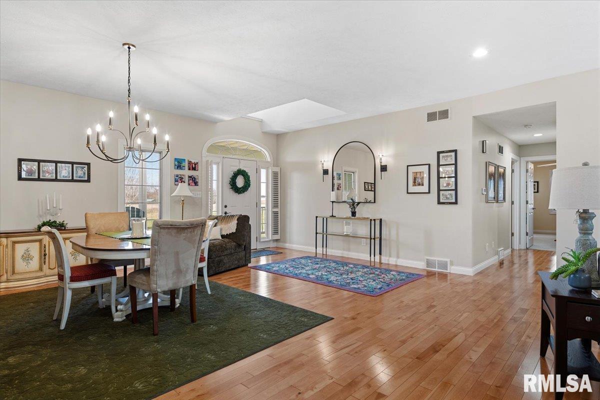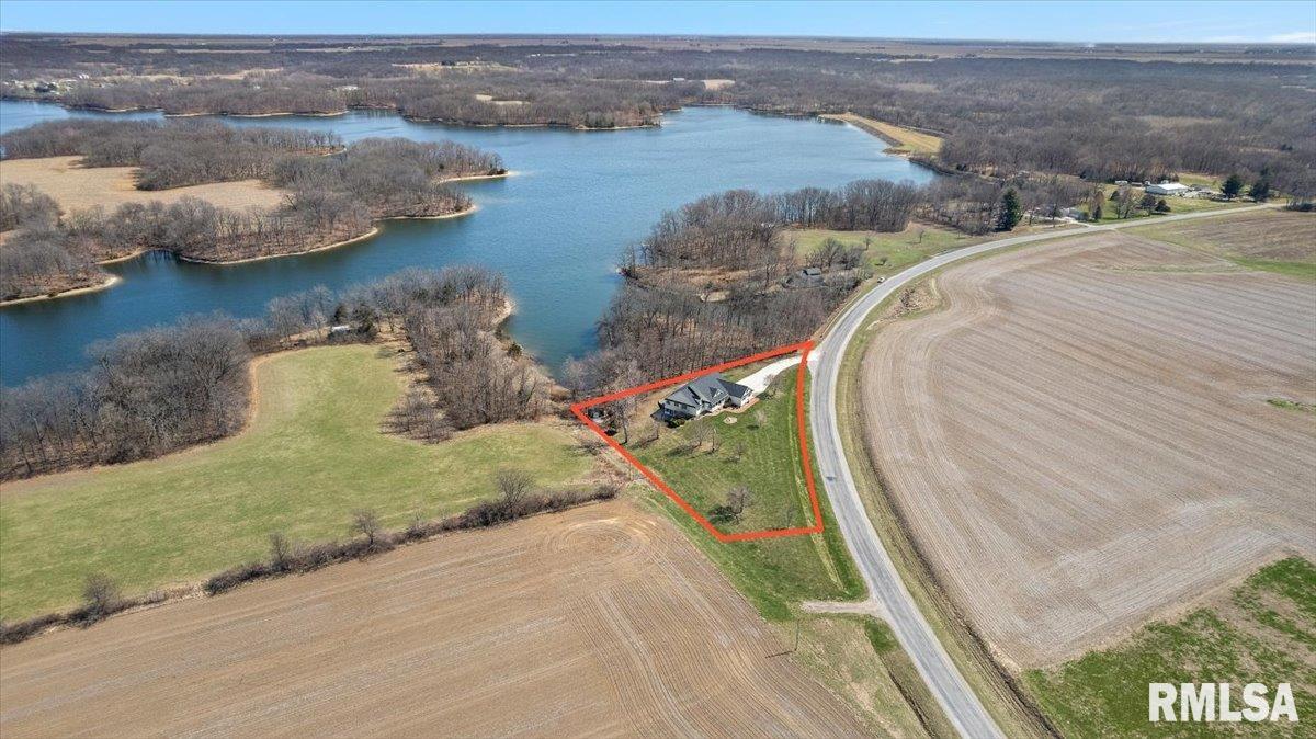 This incredible 1 owner home on 1.62 acres of wooded landscape backs right up to Otter Lake of Macoupin County. Nestled in a rural setting of supreme privacy this fantastic walk-out ranch offers a layout that shines in functionality, pristine care & future potential. Inside, find a bright open floor plan, naturally lit beneath a foyer window & all throughout the main level where hardwood, tall ceilings & loads of big, Pella windows set a scene of pure elegance. Formal living & dining rooms flow seamlessly under striking Marx light fixtures & neutral interior color schemes freshly painted over the last year. An ultra-modern kitchen is filled floor to ceiling w/bright white cabinetry & centered around a massive breakfast bar, w/convenient 1/2 bath nearby. Find high end stainless appliances like a dual wall oven + a SS dishwasher brand new this yr. Contemporary vibes in a master suite include newer countertops & dual vanity while BRs 2&3 share a modern Jack & Jill style bath leaving all 3BR's w/ensuite bathrooms. A walkout LL offers endless possibility for hobbies & future finish, PLUS a full, spacious bathroom is easily accessed from the backyard. Major updates & perks include a 2023 new roof, Geothermal system new this yr, water heater new 2020 PLUS reverse osmosis, gas generator hookup, whole home filtration & central vac systems. Stunning water views, scenic surroundings & short commutes to Springfield & Carlinville create this homestead in Palmyra that's truly 1 of a kind!