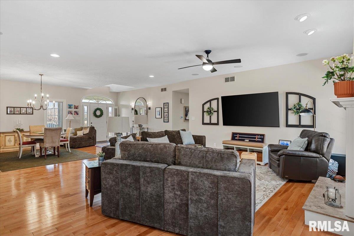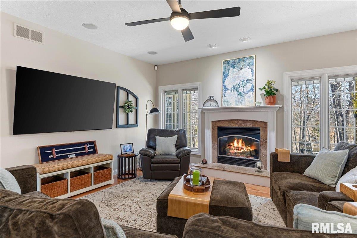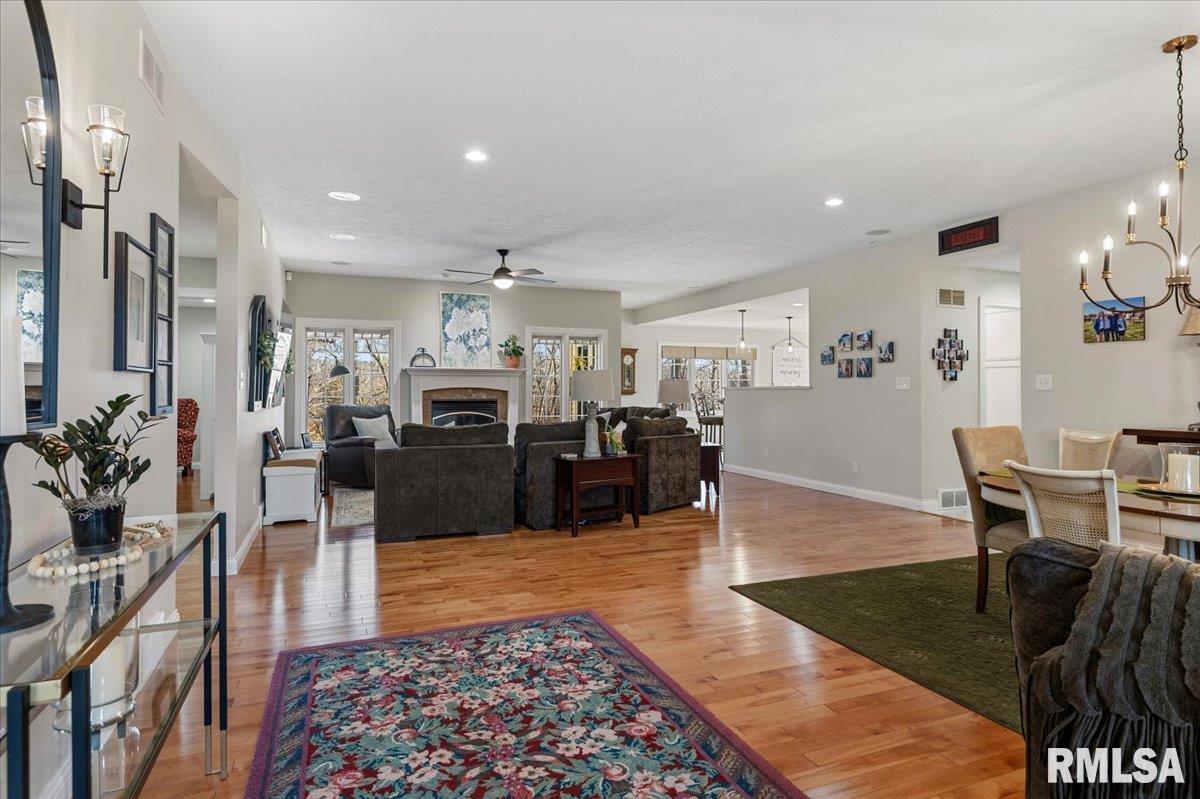 This incredible 1 owner home on 1.62 acres of wooded landscape backs right up to Otter Lake of Macoupin County. Nestled in a rural setting of supreme privacy this fantastic walk-out ranch offers a layout that shines in functionality, pristine care & future potential. Inside, find a bright open floor plan, naturally lit beneath a foyer window & all throughout the main level where hardwood, tall ceilings & loads of big, Pella windows set a scene of pure elegance. Formal living & dining rooms flow seamlessly under striking Marx light fixtures & neutral interior color schemes freshly painted over the last year. An ultra-modern kitchen is filled floor to ceiling w/bright white cabinetry & centered around a massive breakfast bar, w/convenient 1/2 bath nearby. Find high end stainless appliances like a dual wall oven + a SS dishwasher brand new this yr. Contemporary vibes in a master suite include newer countertops & dual vanity while BRs 2&3 share a modern Jack & Jill style bath leaving all 3BR's w/ensuite bathrooms. A walkout LL offers endless possibility for hobbies & future finish, PLUS a full, spacious bathroom is easily accessed from the backyard. Major updates & perks include a 2023 new roof, Geothermal system new this yr, water heater new 2020 PLUS reverse osmosis, gas generator hookup, whole home filtration & central vac systems. Stunning water views, scenic surroundings & short commutes to Springfield & Carlinville create this homestead in Palmyra that's truly 1 of a kind!