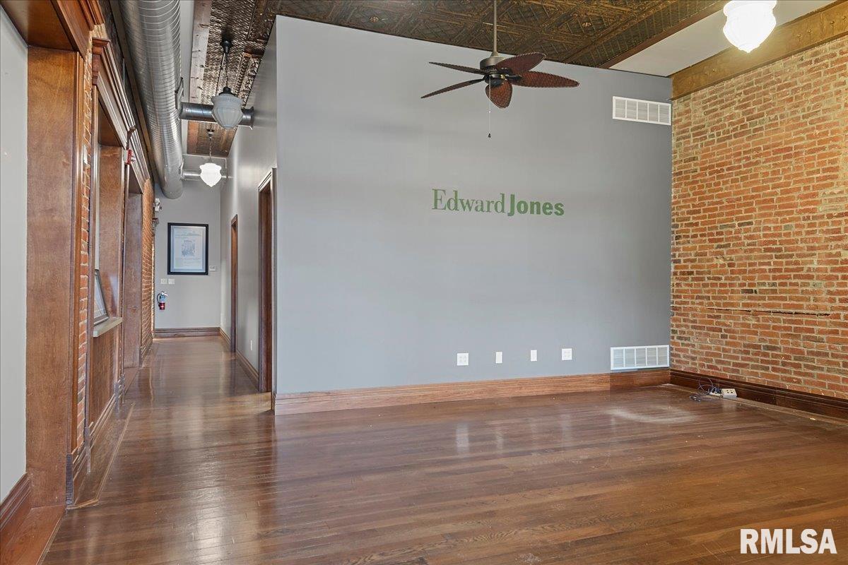 Versatile space at the historic Buck’s Building in Downtown Springfield. Remodeled in 2015, the current layout consists of a reception area, an executive office, a private office, a break room, access to a 3-compartment sink, handwashing sink, and mop sink, a mechanical, equipment and supply room, and 2 ADA-compliant restrooms. It would be perfect for office, storefront, small bakery or café, or many other retail uses. The lower-level space is available, but not included in the quoted price or SqFt.