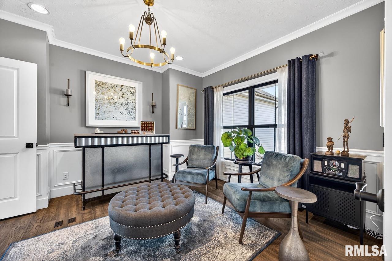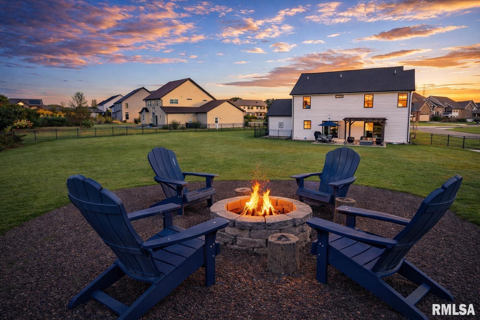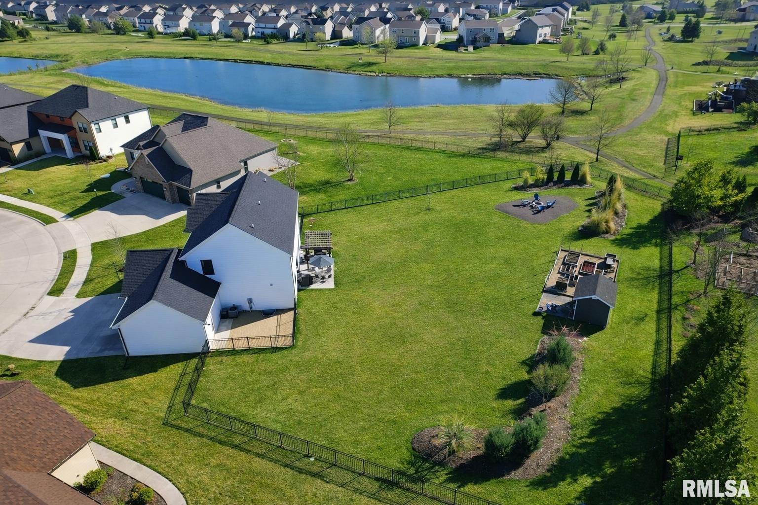 Welcome to this exceptional custom home on a premium .61-acre lot in Dunlap’s sought-after Stone Gate Subdivision. Designed for both comfort and style, the open-concept main level features a light-filled great room with a stunning shiplap and tile gas fireplace, custom built-ins, and French doors leading to the backyard. The informal dining area flows into a beautifully appointed kitchen with an oversized quartz island, white shaker cabinetry, stainless steel appliances, tile backsplash, and a spacious walk-in pantry. A versatile main-floor flex room with French doors is perfect for an office, dining room, or retreat. The three-stall garage includes slat wall panels and a built-in pet wash station. Upstairs offers four bedrooms, a full bath with double vanity, and convenient laundry. The primary suite features vaulted ceilings, pond views, a large walk-in closet, and a luxurious bath with double vanity, custom tile shower, and built-in vanity. A secondary bedroom with French doors and sink adds flexibility. The finished basement includes 9’ ceilings, a rec room with wet bar, full bath, and fifth bedroom. Enjoy outdoor living with a stamped patio, pergola, gas fireplace, fenced yard, fire pit, garden beds, shed, and Monarch Waystation. Walking distance to the nearby park-complete with walking trails, 3 ponds and a playground, as well as the Rock Island Trail and the award winning Hickory Grove Elementary!