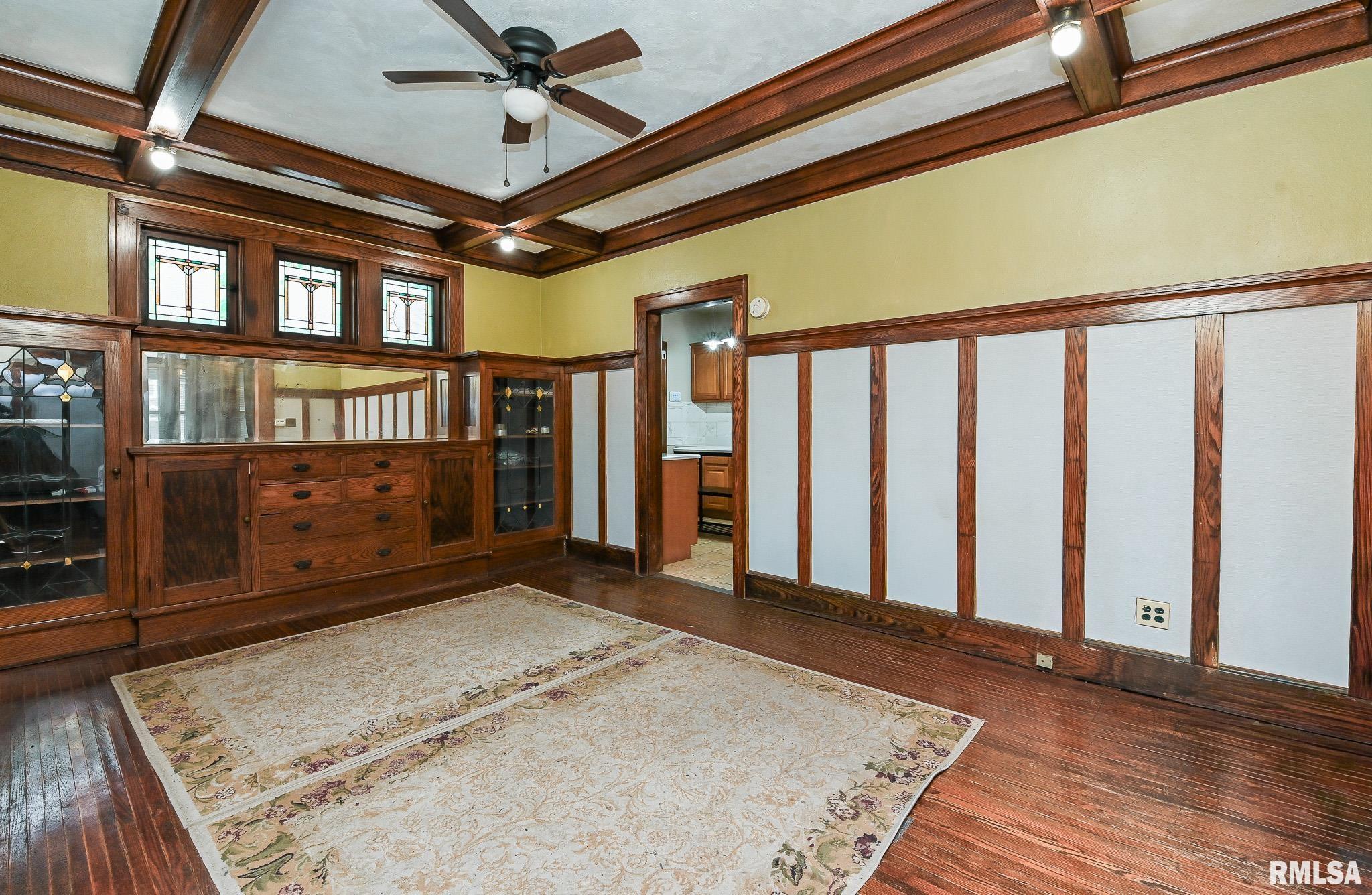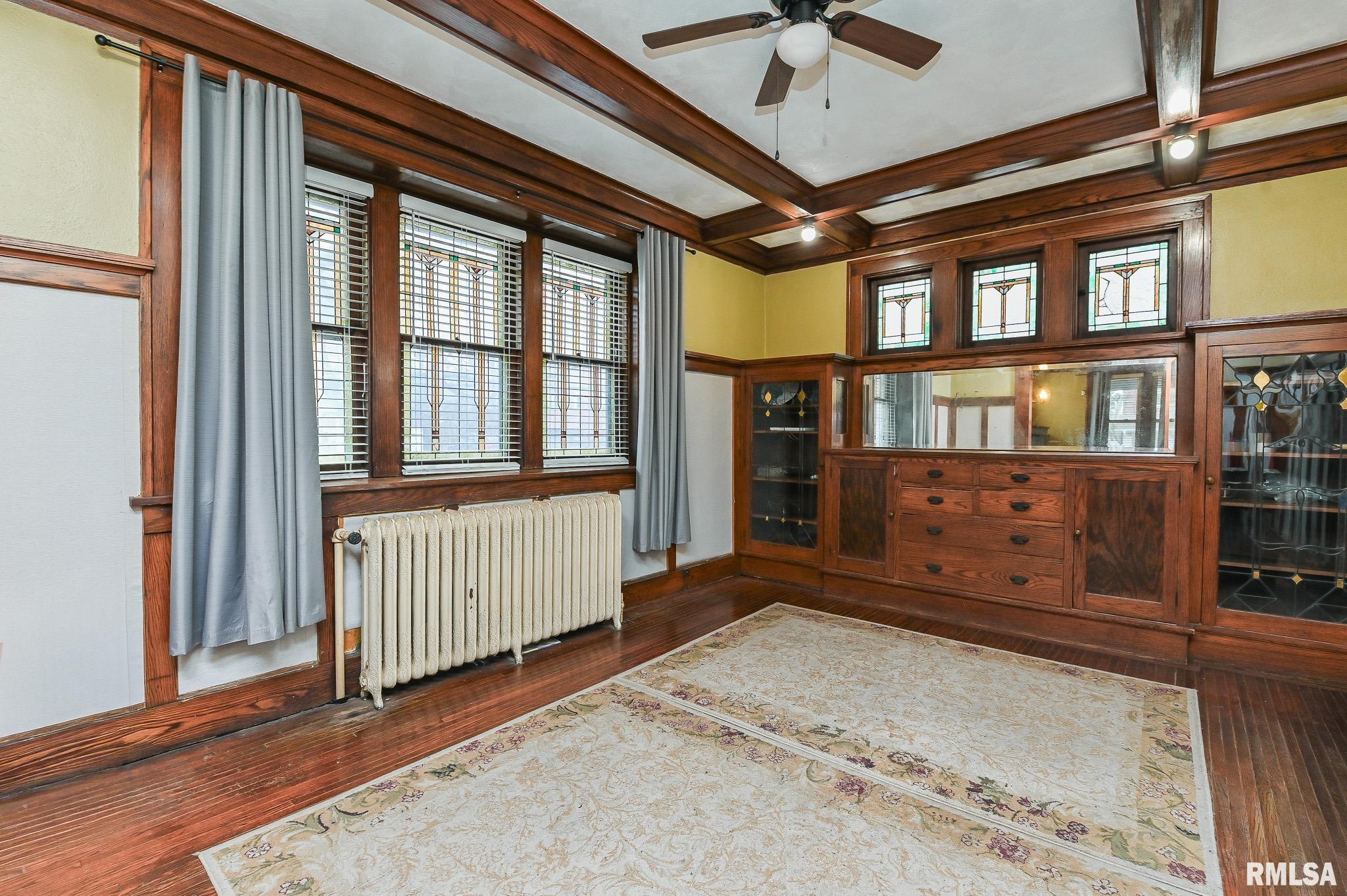 Spacious 3-bedroom home (with potential for a 4th bedroom) offering 1.5 baths and over 1,700 sq. ft. of character-filled living space. This charming two-story features custom stained-glass windows, hardwood built-ins in the living and dining rooms, and stunning wood beam ceilings in the dining area. Beautiful hardwood flooring runs throughout the home. Major updates include PEX plumbing and a new boiler system (2020). Upstairs you’ll find three generously sized bedrooms, plus a den/sunroom and a full bath. Situated on a corner lot with a fully fenced backyard and a 2-stall detached garage. Additional updates include an updated kitchen with newer appliances (washer & dryer included), newer roof, basement dewatering system, and backup sump pump. Contact your Realtor to schedule a private showing.