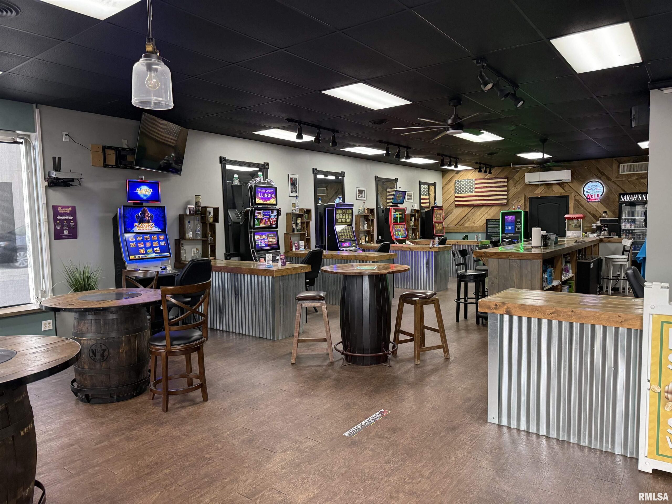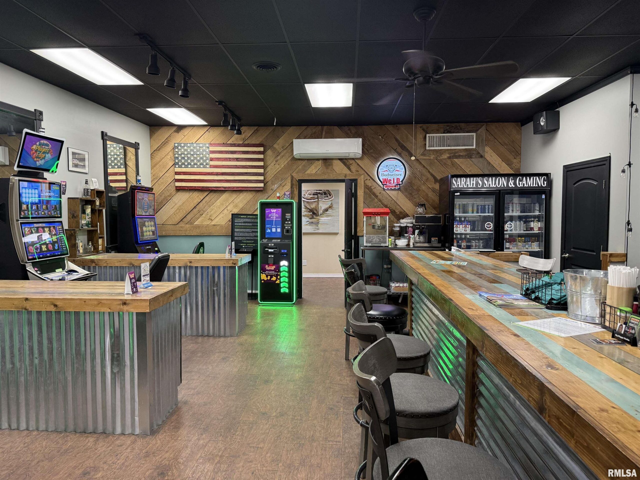 Very unique investment opportunity!!! This one- of -a- kind property is split down the center, featuring a fully operational hair salon on one side and a bar with a gaming parlor on the other. Ideal for an owner-operator looking for dual income potential in a single location. This versatile layout offers multiple income streams and endless potential for business. The salon includes seven styling stations and three shampoo bowls, offering a turnkey setup for continued use. The bar/gaming parlor features an open-concept layout with a great local following and a quiet, inviting atmosphere