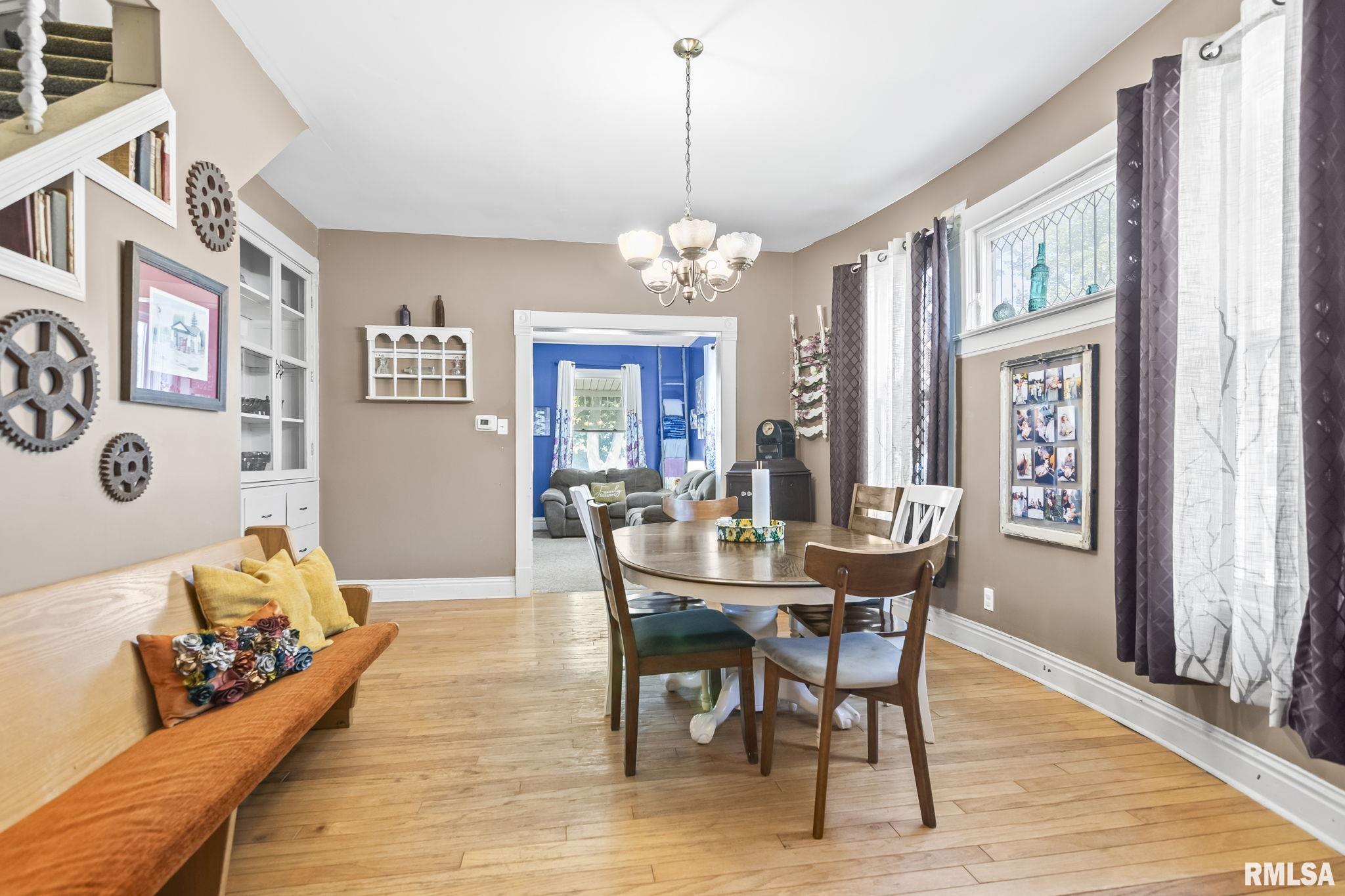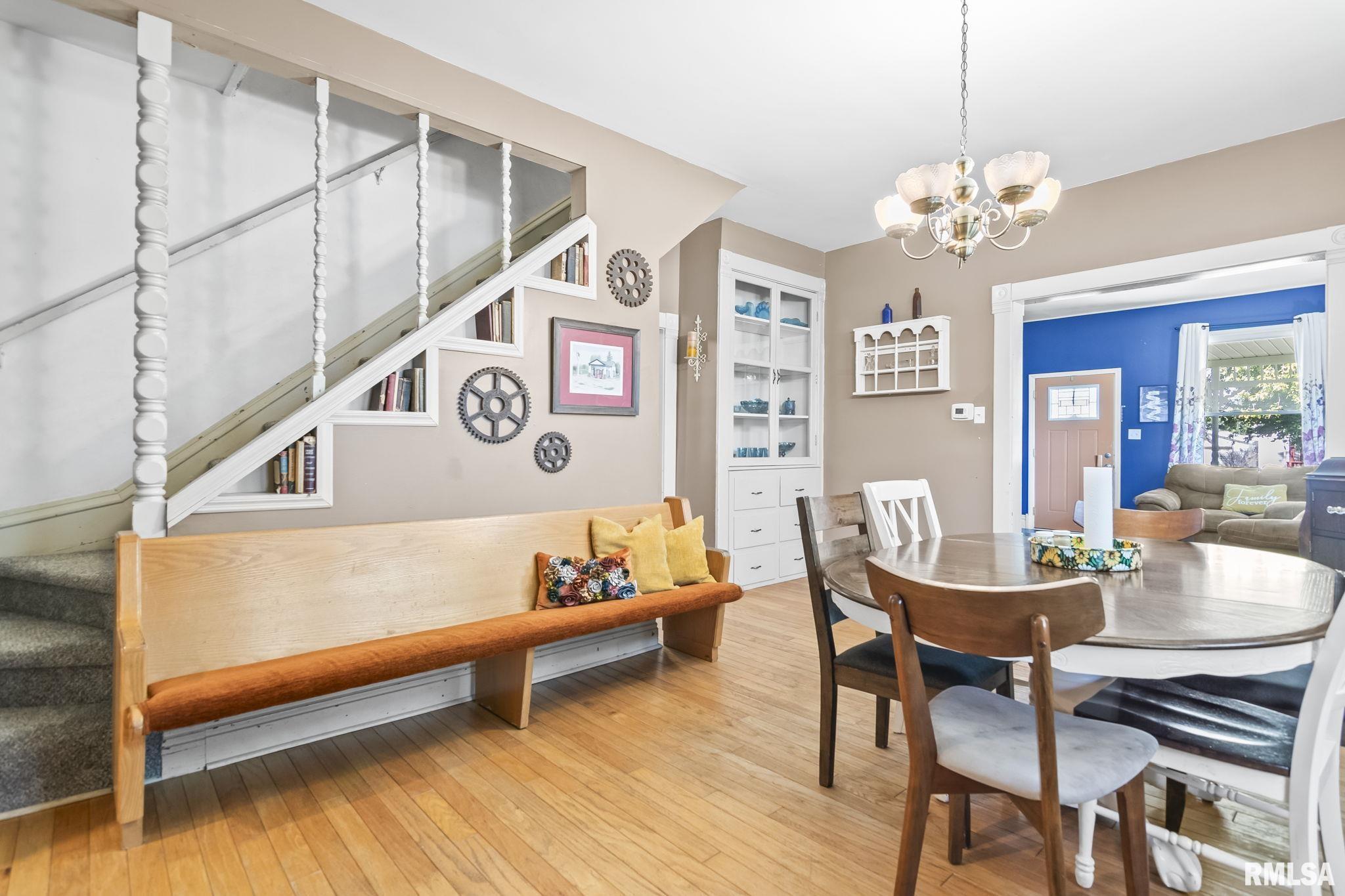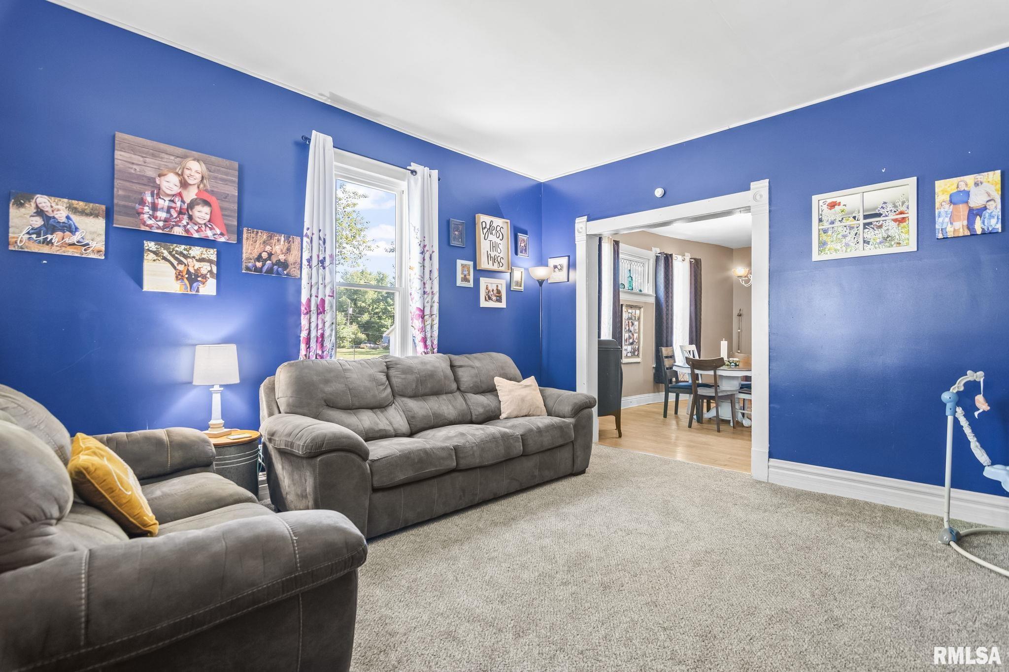 Welcome to this charming 2-story home situated on a generous .4-acre lot, offering both space and character in a convenient layout. New carpet put in early 2025, providing a fresh start for the next owner. Most windows have been replaced (all but two), and the roof was replaced around 2016. Step onto the covered front porch—ideal for relaxing mornings or evening gatherings. The property includes a detached 1-car garage and an unfinished basement, accessible from inside the home or via exterior cellar doors, offering excellent storage or future finishing potential. Inside, you'll find a large kitchen with ample cabinetry & counterspace, perfect for meal prep or holiday baking. Adjacent to the kitchen is a formal dining room with a built-in hutch, adding charm and additional storage. A full bathroom is conveniently located off the kitchen, with an extra shower in the laundry area for added utility. The rear room addition provides flexible living space, suitable as a second family room or a main-floor primary bedroom. Upstairs, you'll find generously sized bedrooms, including a primary bedroom that features two spacious walk-in closets. An upstairs toilet adds nighttime convenience. This home has been pre-inspected, repairs made and is ready for your personal touch!