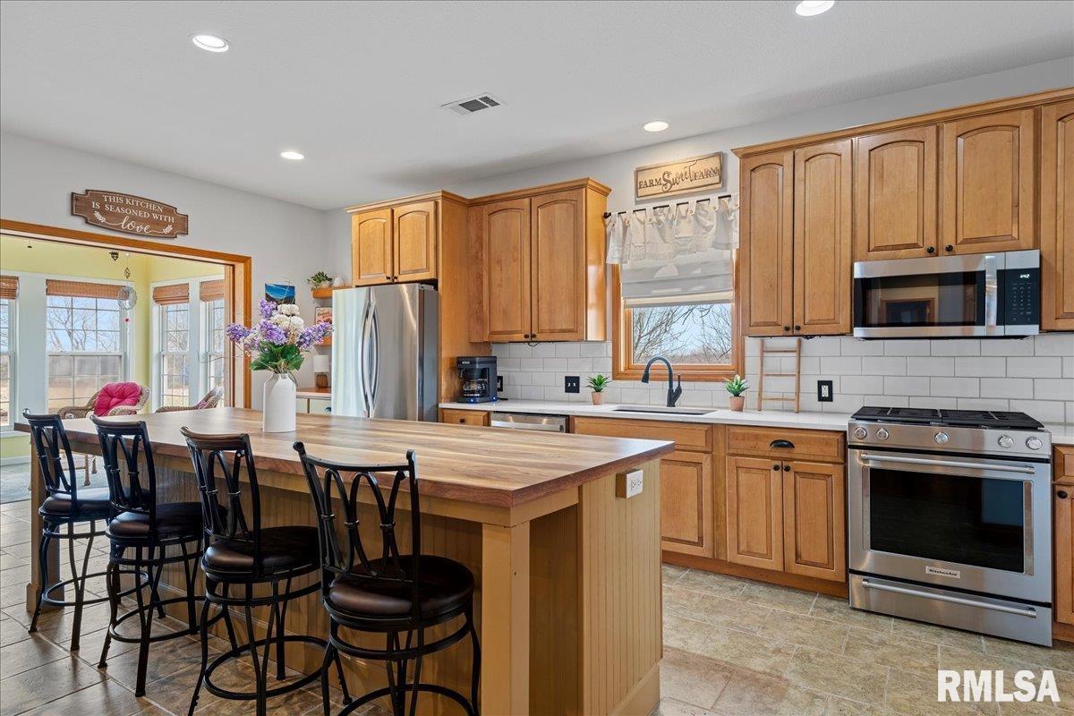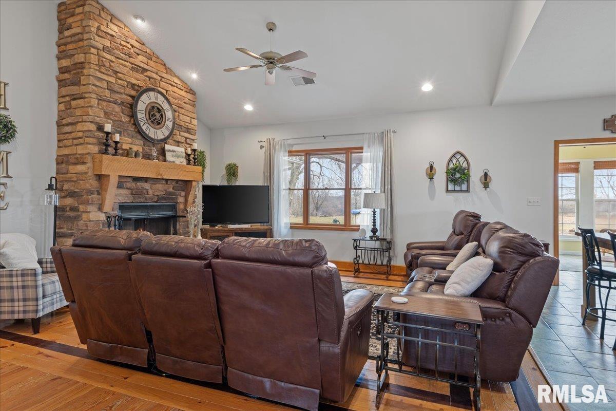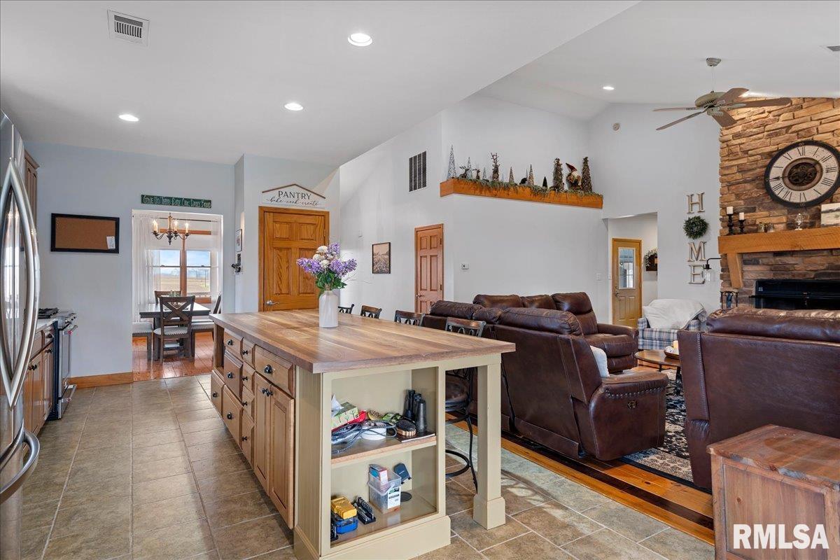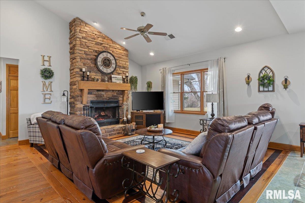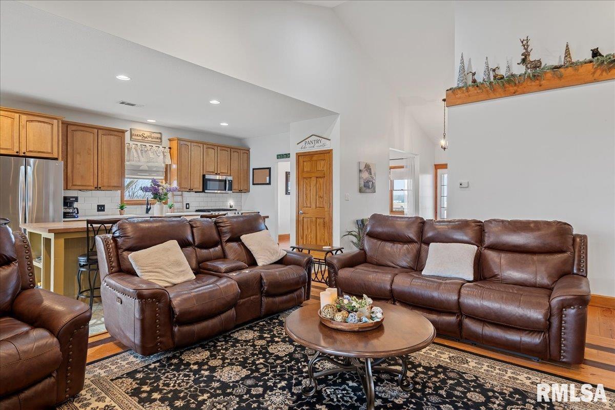 WOW! Rare opportunity to own a private 5.21-acre retreat just outside of town. This one-of-a-kind property offers peaceful country living with the convenience of nearby amenities. Surrounded by open countryside and abundant wildlife, you’ll enjoy incredible views of nature right from your own backyard. The home is designed for comfort and entertaining, featuring an open-concept layout with a spacious kitchen, updated countertops (2024), newer appliances (2023), and a large island that flows into the impressive living room with vaulted ceilings and beautiful hardwood floors throughout the main level. The main floor offers three generous bedrooms, including a private primary suite with jetted tub and walk-in closet with custom shelving. The finished basement adds exceptional space with tall ceilings, a gas fireplace, an additional bedroom, and full bathroom. A bright sunroom with skylights sits just off the kitchen, showcasing breathtaking views of the surrounding land and leading to a pergola—perfect for relaxing and enjoying the quiet setting. The acreage provides endless possibilities with room for hobbies, recreation, and privacy. A heated outbuilding with workshop, bathroom, and ample storage is ideal for projects and equipment. Major updates include furnace (2024), water heater (2023), AC (2022), roof (2023), and washer/dryer (2024). This rare property won’t last!