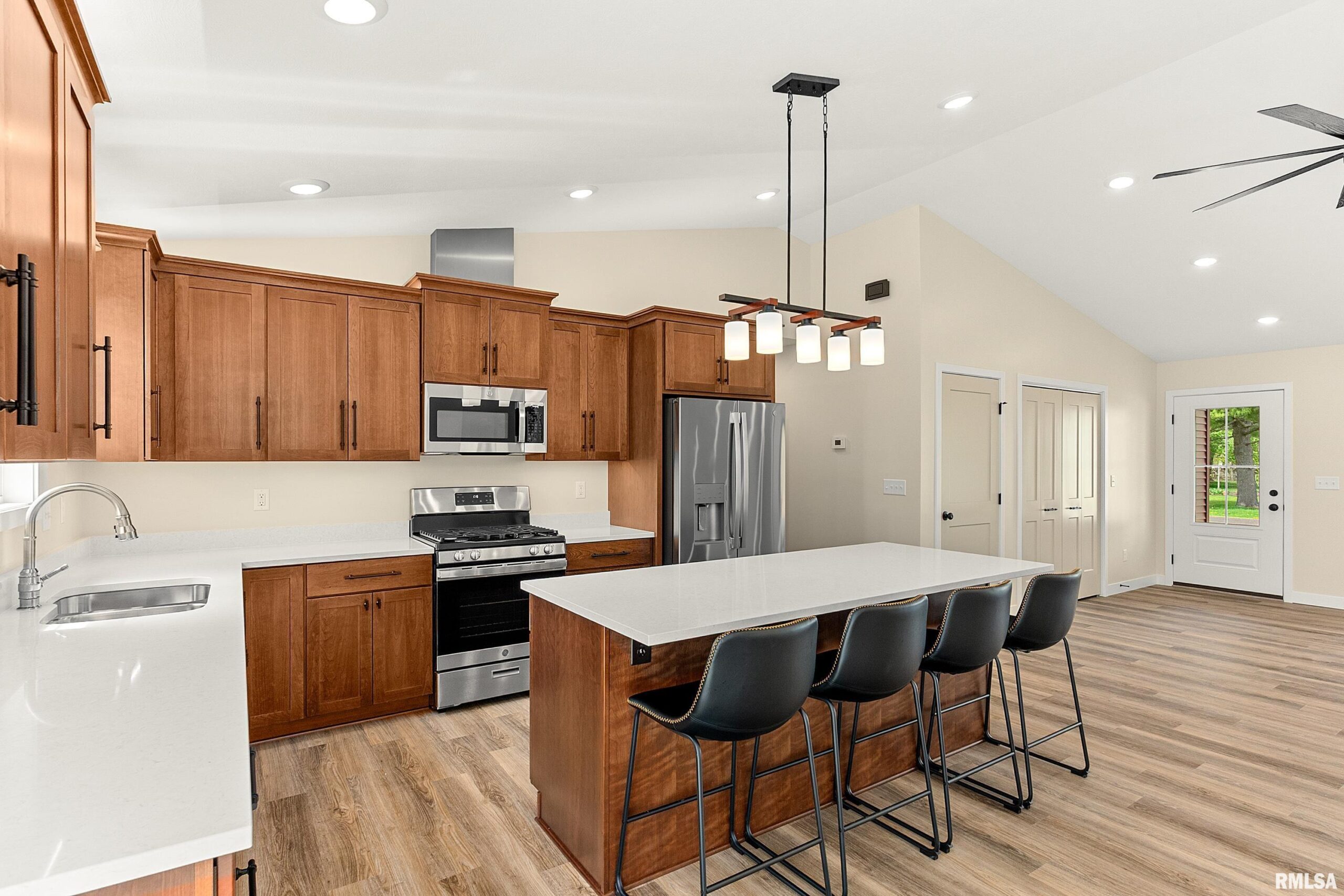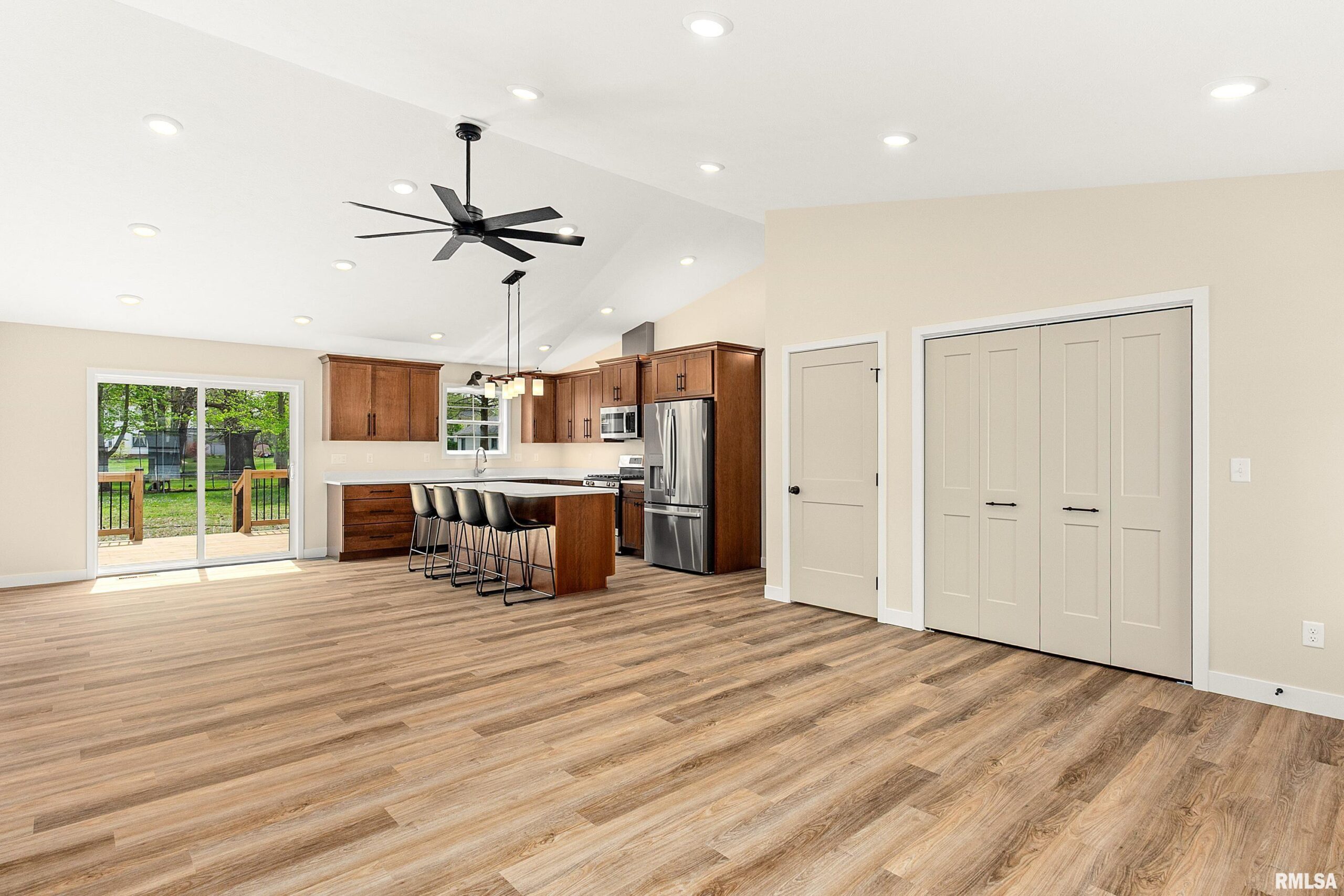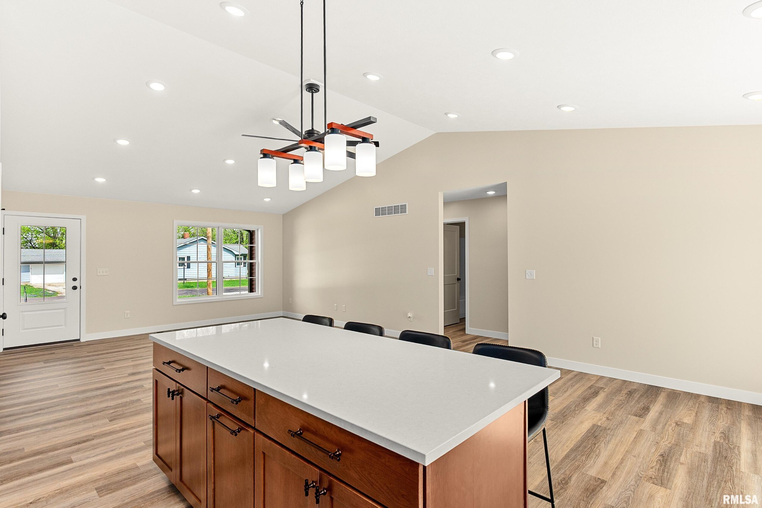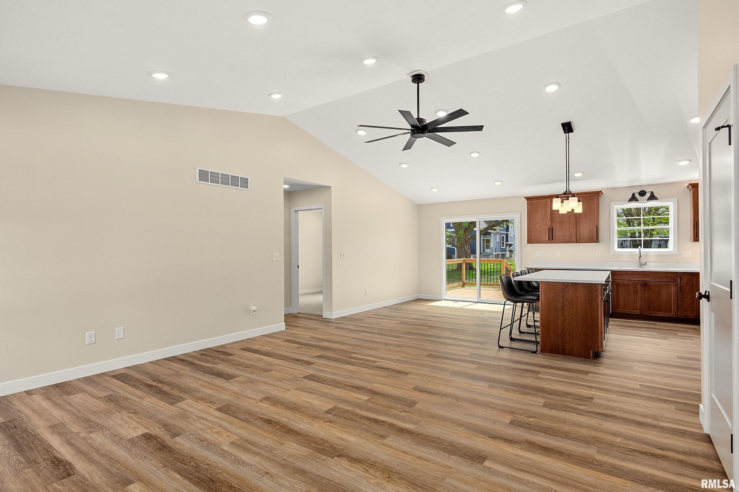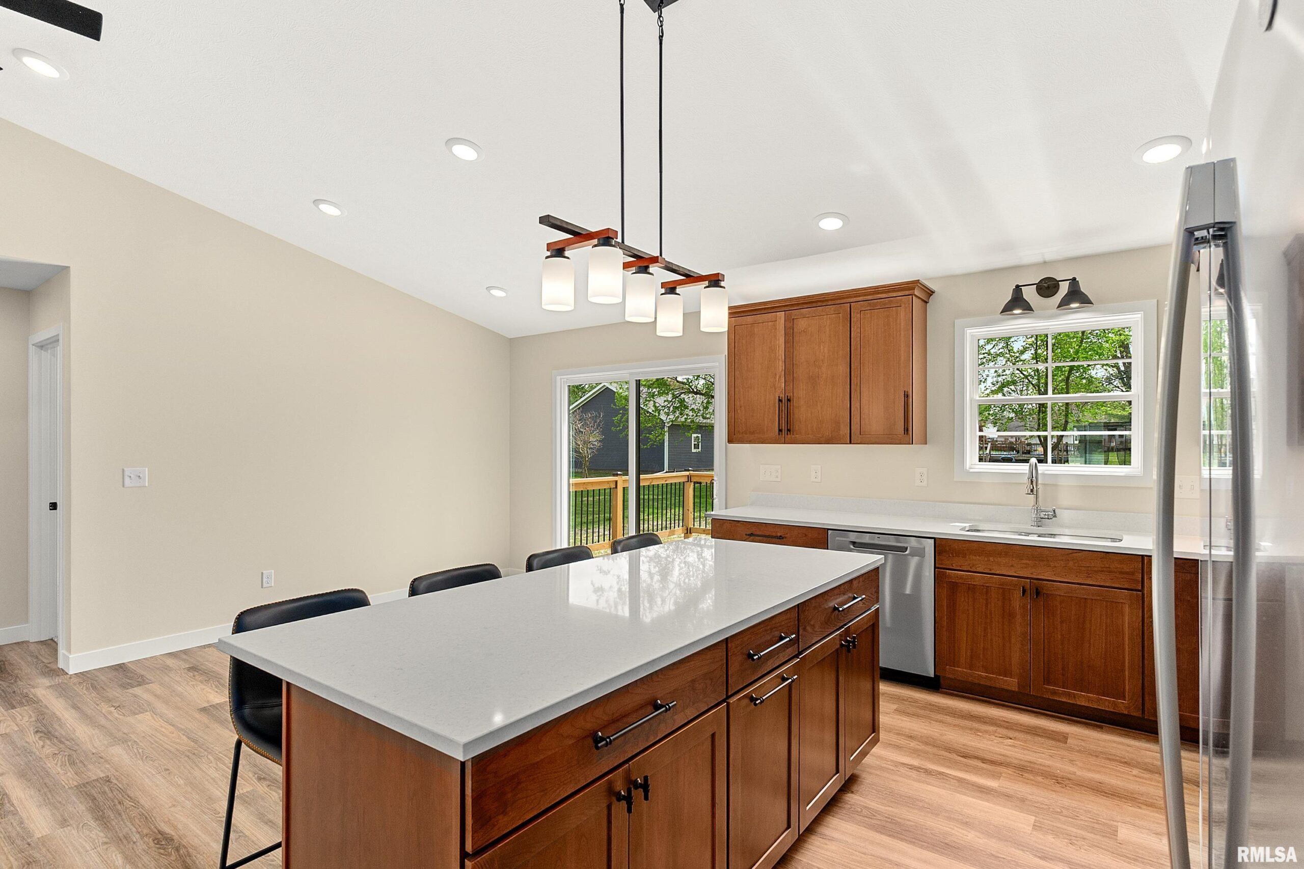 Coming Soon. Activation Date 4/21/26 or Sooner. Welcome to this beautifully crafted new construction home in El Paso, perfectly positioned within a well-established neighborhood surrounded by mature trees—offering a rare blend of modern design, efficiency, and timeless setting at an exceptional value. This thoughtfully designed modern traditional residence showcases quality craftsmanship and elevated finishes throughout, highlighted by matte black accents, clean architectural lines, and refined detailing. Designed for today’s lifestyle, the home features true main-floor living, a split bedroom design including a spacious primary suite with private ensuite bath, a second full bathroom, and convenient main-floor laundry—delivering both comfort and functionality. Built with efficiency in mind, the home includes an Energy Star-rated furnace, A/C, and water heater, paired with foam insulation for enhanced year-round performance, comfort, and cost savings. The staircase to the lower level features deeper, more comfortable steps. The unfinished basement presents opportunity, complete with egress window, rough-in plumbing for a future bathroom, and plumbed for a water softener—ideal for future expansion into a family room, additional living space, private in-law suite, or continued storage, fully tailored. Exterior highlights include a finished 2-car garage, expanded driveway and sidewalk and a deck with sleek black aluminum spindles—perfect for relaxing or entertaining.