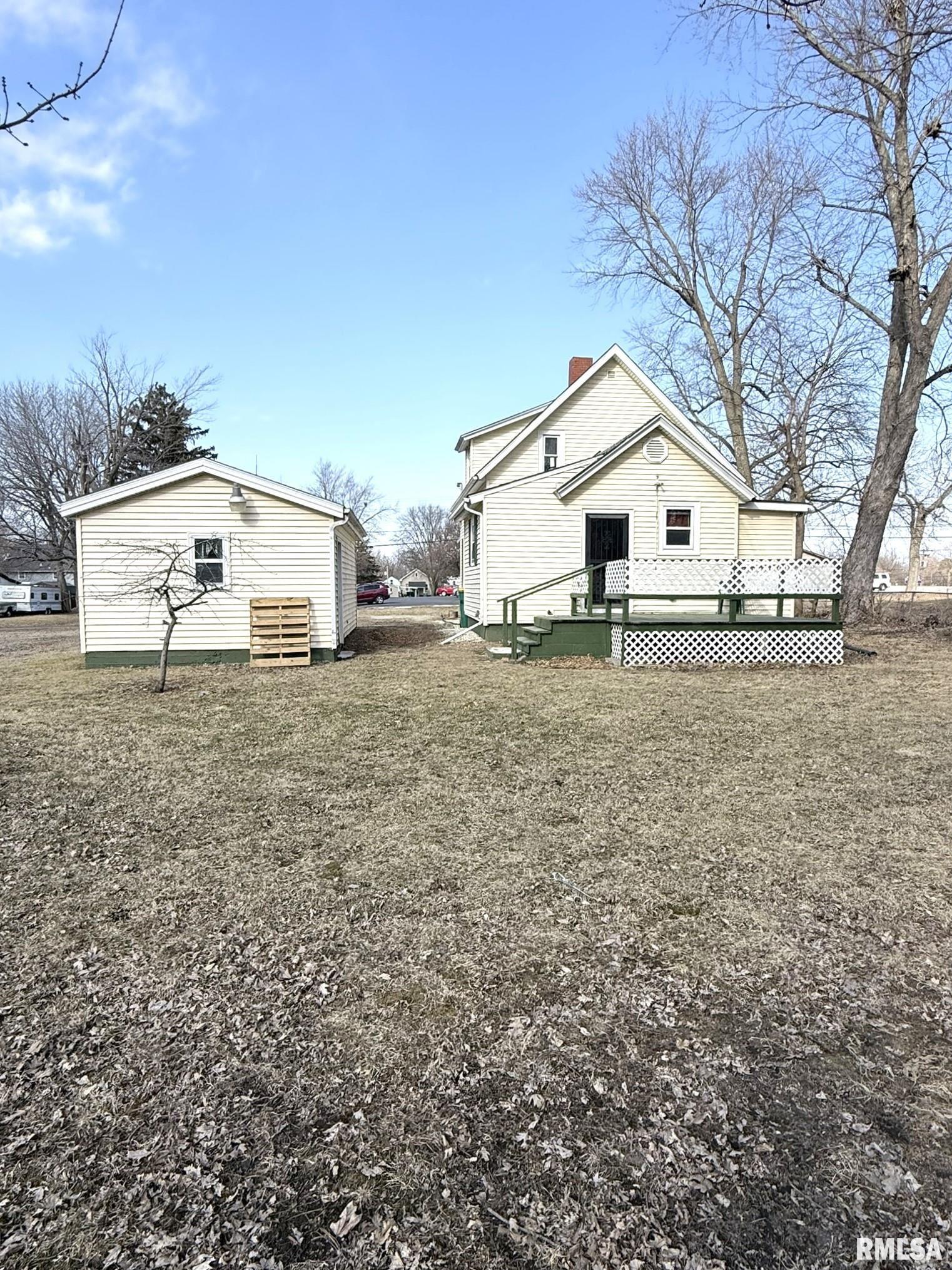 Affordable and full of potential, this 3 bedroom, 2.5 bath home offers a practical opportunity for first-time buyers or anyone looking for a budget-friendly move. Welcoming foyer greets you with detailed woodwork including bullseye corner blocks hinting at the home's original charm. The inviting living room provides a place to gather and relax while the formal dining room flows through an oversized doorway into the spacious eat-in kitchen with ample cabinetry. The main floor features a versatile bedroom and a full bathroom with walk-in shower for everyday convenience. Ascend the staircase to find two sizable bedrooms located on either side of an additional full bath. The usable basement offers a half bath, laundry hookups, and plenty of room for storage, hobbies, or even a workout area. Moving outdoors, the property impresses with an extra lot creating a sprawling yard to enjoy as the weather begins to warm. Spend evenings hanging out on the back deck or slow mornings on the covered front porch while the detached 1-car garage adds flexibility for parking or projects. Just a few blocks from Knox College, this home delivers a price point appealing to a variety of buyers! Home Buyer Grant Assistance Available - give us a call so we can connect you to local lenders to see if you may qualify!