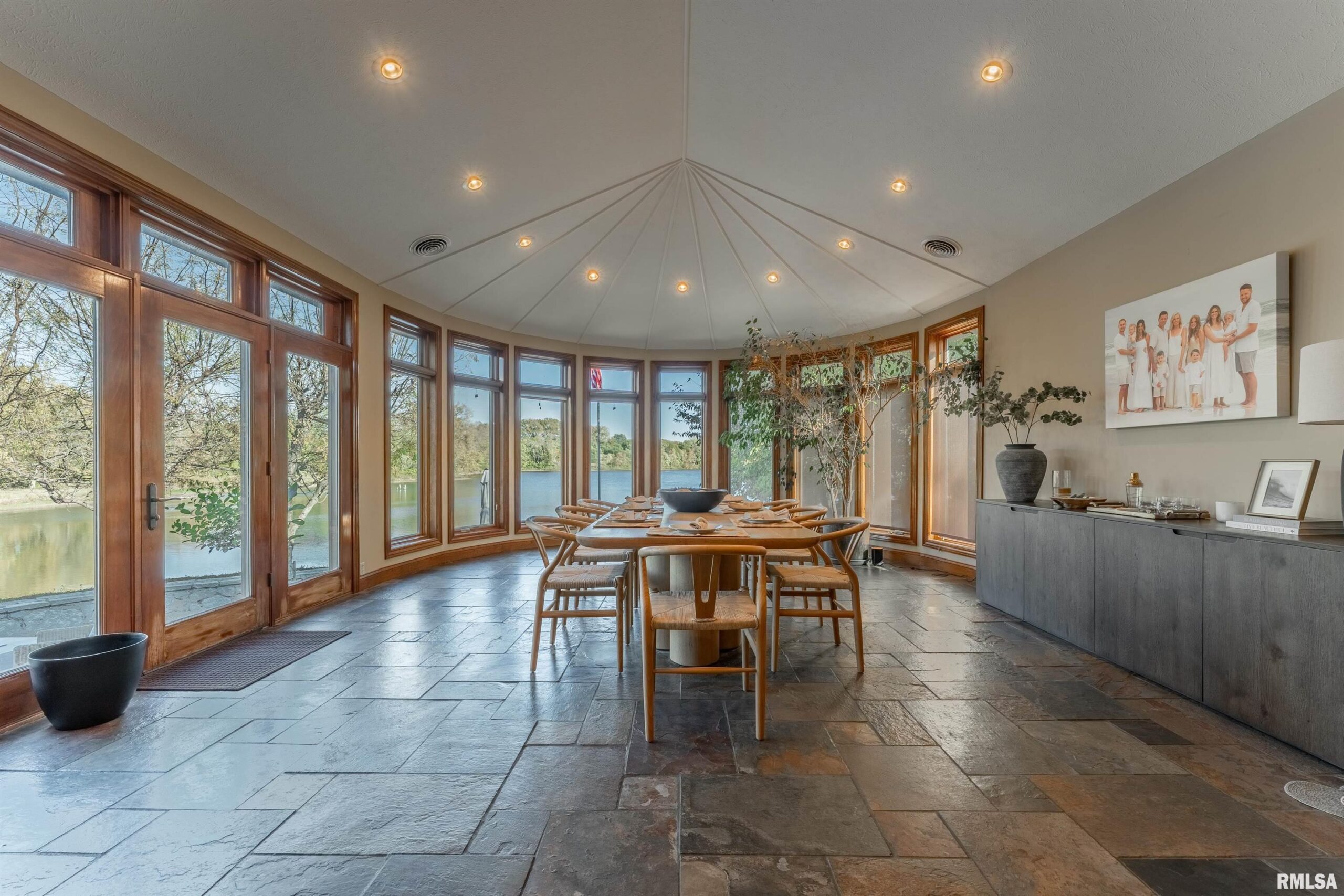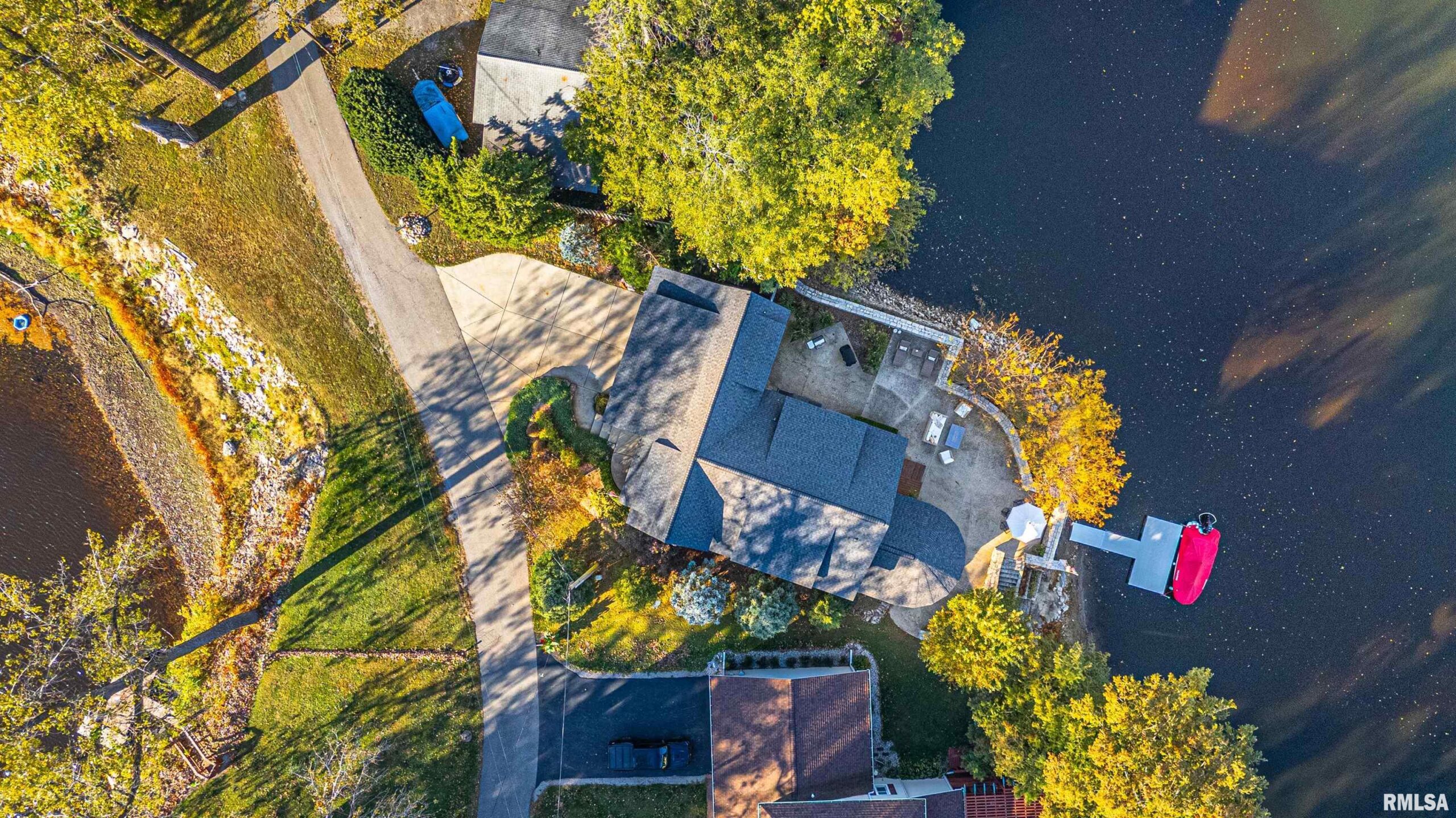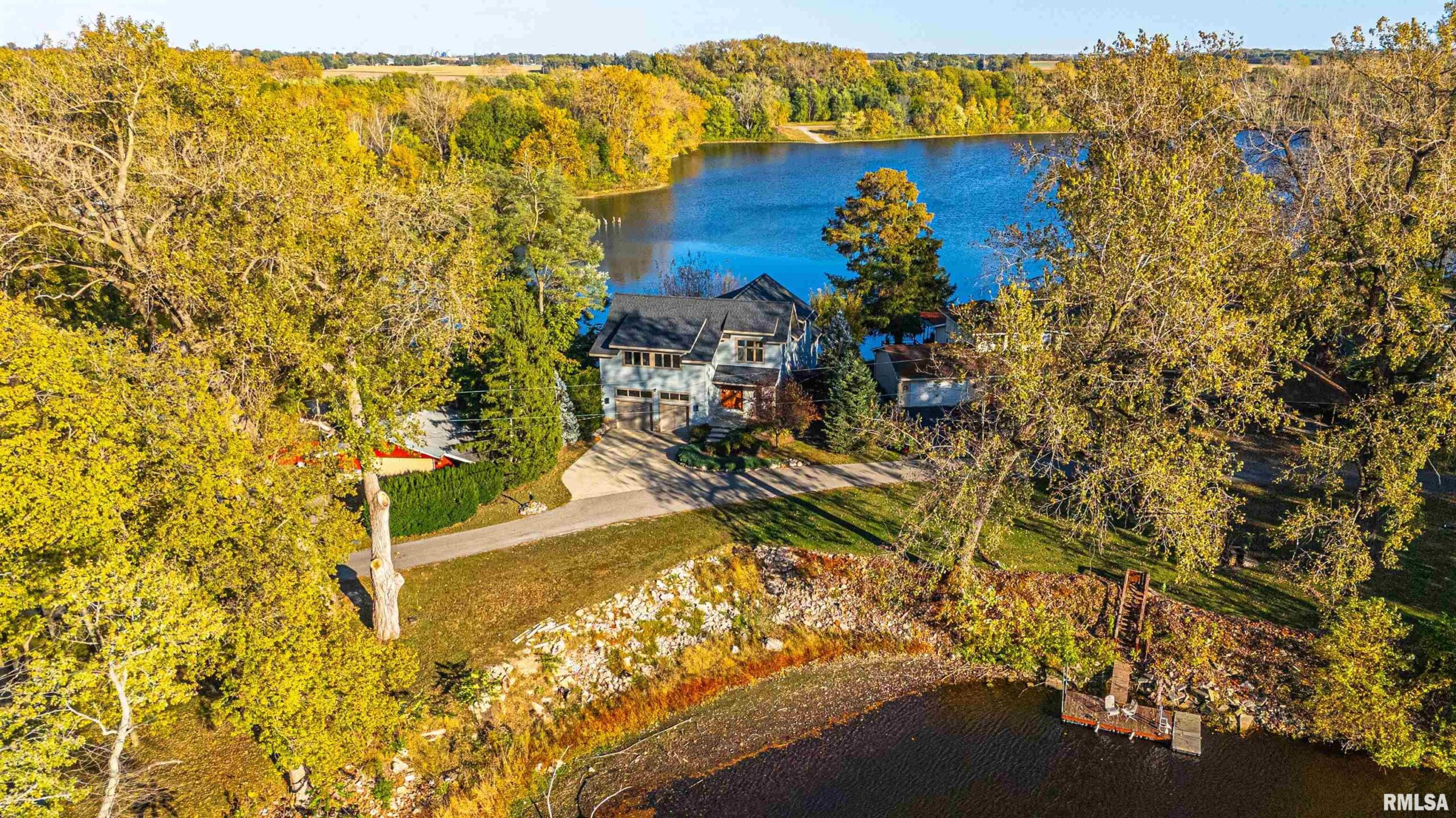 Custom two story cedar sided showplace home situated ON THE WATER at Lincoln Lakes! Enjoy the gorgeous 100-acre lake with boating, fishing, and a beach area -- as well as 200 acres of common ground -- like a year-round vacation AT HOME! This property boasts the best of the best -- HVAC replaced in 2017, NEW roof in 2023, Pella windows and doors! Step inside the main floor via the double door entry and expect to be impressed by the wide-open front to back open concept featuring gorgeous slate tile flooring. This floor is host to a gracious foyer, full hall bath with a walk-in shower, stunning top of the line kitchen with granite countertops, large adjacent walk-in pantry, and a massive island/breakfast bar area, gorgeous dining area, and an expansive bright and airy living room host to a central gas log fireplace as well as French doors that lead to the exterior. Travel upstairs via the open staircase and you will find a 20X12 den/office with soaring cathedral ceilings as well as two primary suites -- both with amazing floor space, double door entry points, cathedral ceilings with wood beams, and gorgeous private adjacent full baths (rear facing suite is raised four steps). Property also features a 2+ car attached heated (radiant heat) garage with overhead doors on both sides, expansive rear patio with AMAZING views, and all interior appliances to remain. New Subzero refrigerator and boat dock in 2025! City water/private septic system. WLB school district. Truly showstopping!