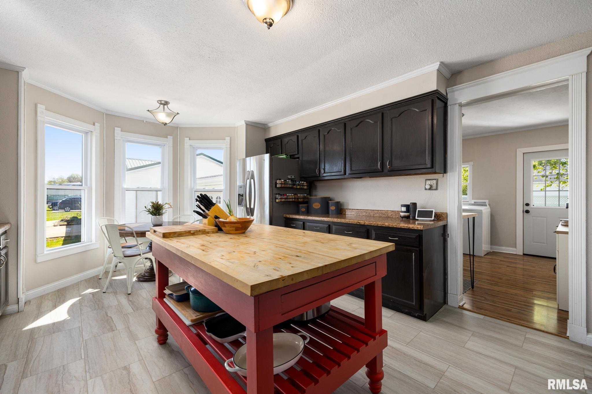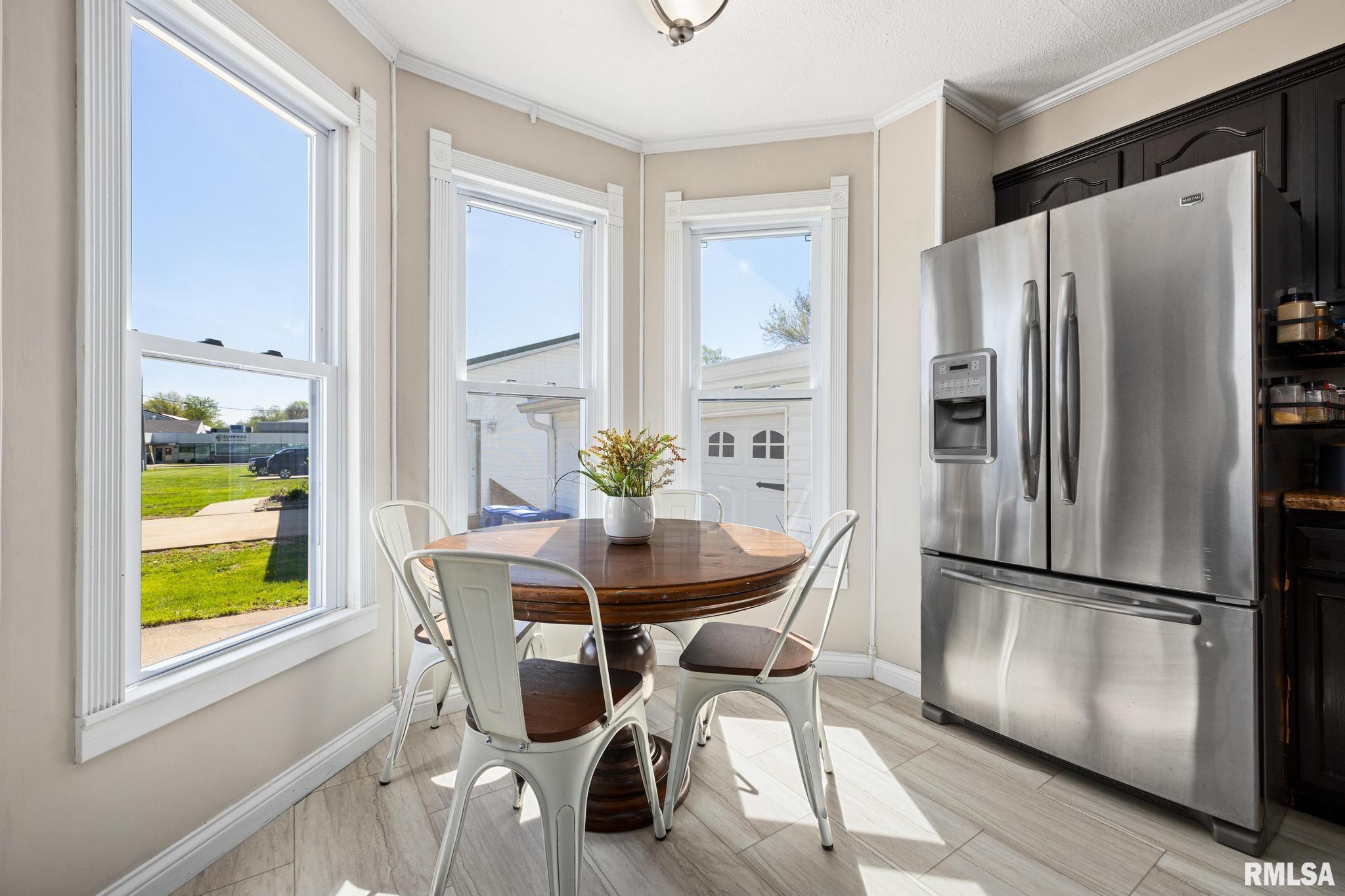 Adorable 3-bedroom, 1.5-bath home in Elmwood offering a functional layout and numerous updates throughout! The spacious kitchen features an island, pantry, new flooring, and fresh paint, with both an eat-in area and a separate dining room—perfect for everyday living and entertaining. The living room offers plenty of space to relax and gather. Convenient main floor laundry adds to the home’s practicality. Major updates include new windows, siding, and roof for peace of mind. Step outside to enjoy the large deck and newly fenced yard, ideal for outdoor living. Complete with a 1.5 car garage, this home is move-in ready and full of value!